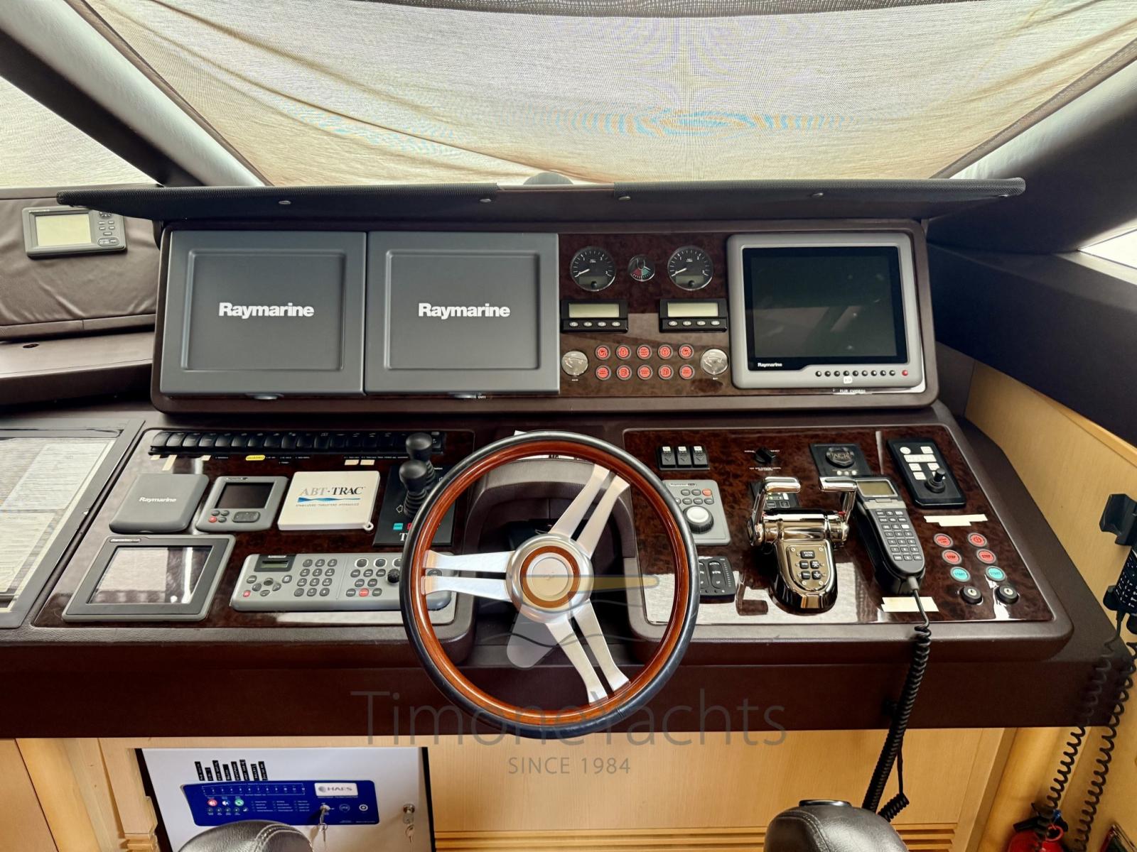 Alarme gaz, 2 Alarme moteur, Alarme de pompe de cale, Alternateur, Eau sous pression, Trim hydraulique (Hydraulic Bennett in Stainless steel), Batteries (All new 2021), Passavant en teck, Chargeur de batterie (Mastervolt Charmgemaster Plus), Douche de cockpit, Double barre à roue, Flaps hydrauliques, Grue de flybridge, Extincteur(s) fixe(s), Indicateurs de flaps, Lavage de chaine, Éclairage de courtoisie, 2 Spots sous-marins, Passerelle (elettroidraulica), Plateforme arrière (elettroidraulica), 5 Pompe de cale automatique, Pont en teck, Porte latérale, Porte latérale, Cockpit en teck, Prise de quai, Connexion eau sous pression à quai, Rollbar, Guindeau électrique, Echelle de bain, Stabilisateurs (ABT Trac Hydraulic Fins), table de cockpit, Corne, 2 Winch électrique arrière, Winch électrique avant.