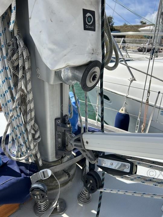 L'accastillage est de marque Selden. Les winches sont de marque Hutton pour les self tailing et Barlow ou Lewmar pour les autres. Le bateau dispose d'une boîte à dorades pour la ventilation. Le mat Sparcraft date de 2002, et le gréement dormant a été renouvelé en 2023. Il y a un enrouleur génois Selden Furlex, un étai largable avec pélican, et un halebas rigides Selden. Le stockage du tangon se fait le long du mât.