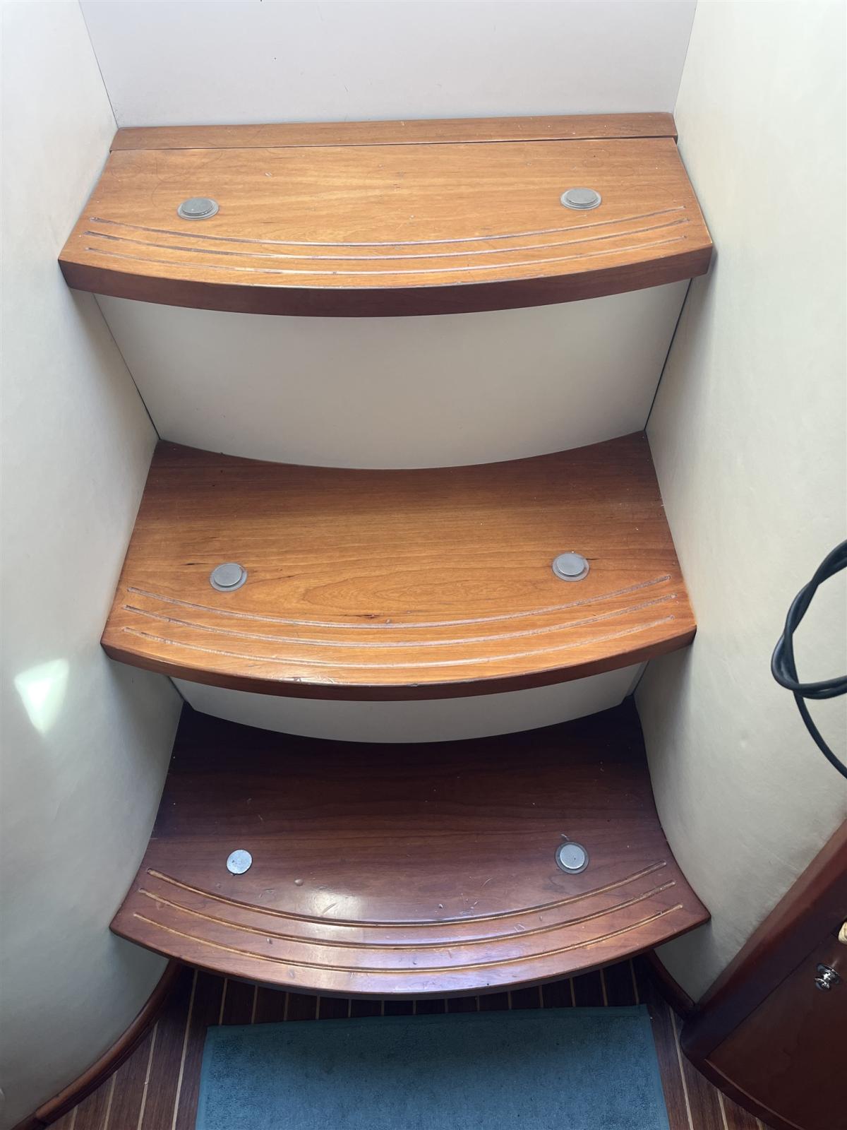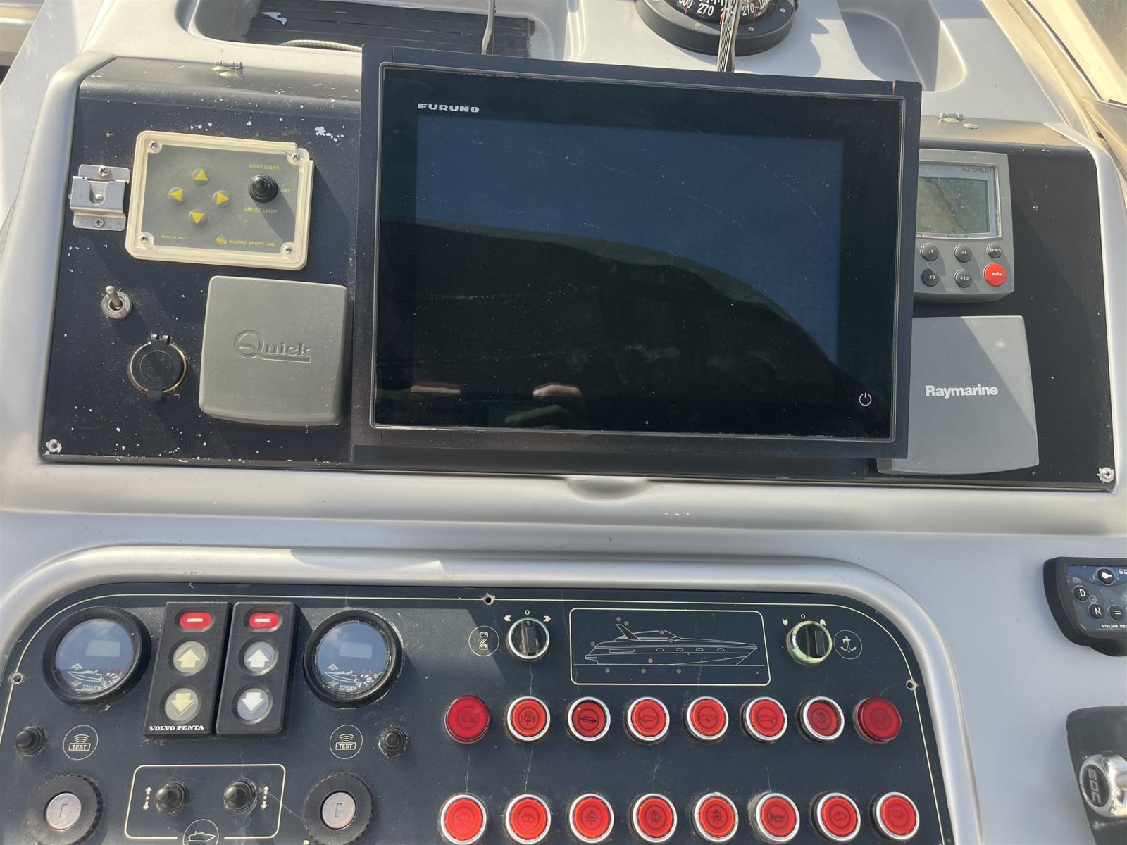 Alarme moteur, Alarme de pompe de cale, Ouverture du compartiment moteur électrique, Eau sous pression, 3 Batteries, Câble d’alimentation à quai, Douche de cockpit (calda e fredda), Phare de poursuite, Flaps hydrauliques, Éclairage de courtoisie, Spots sous-marins, Passerelle (idraulica), Plateforme arrière, Pompe de cale manuelle, Cockpit en teck, Prise de quai, Onduleur, Rollbar, Guindeau électrique, Echelle de bain, table de cockpit (a scomparsa elettrico), Table pliante de salon.