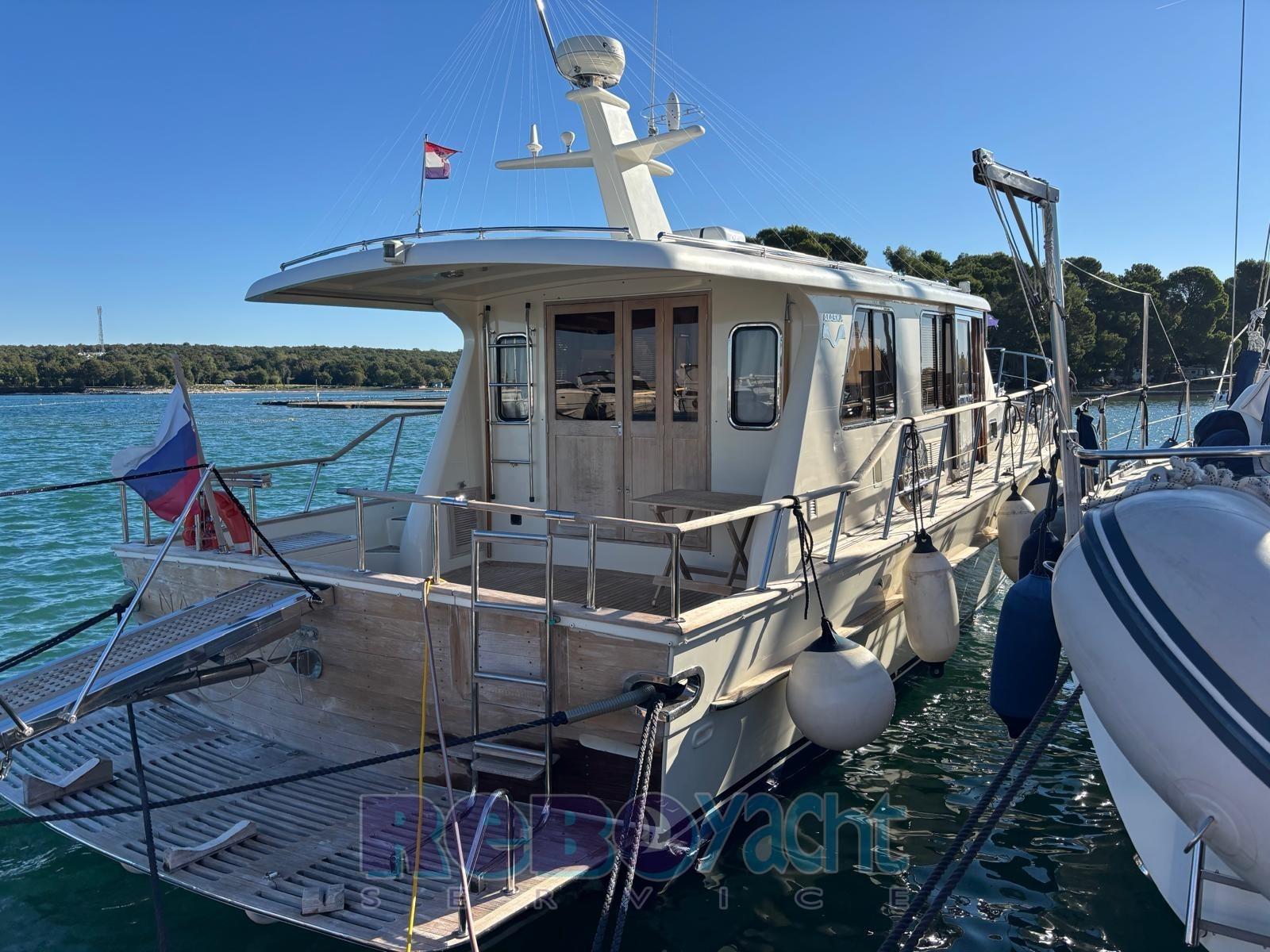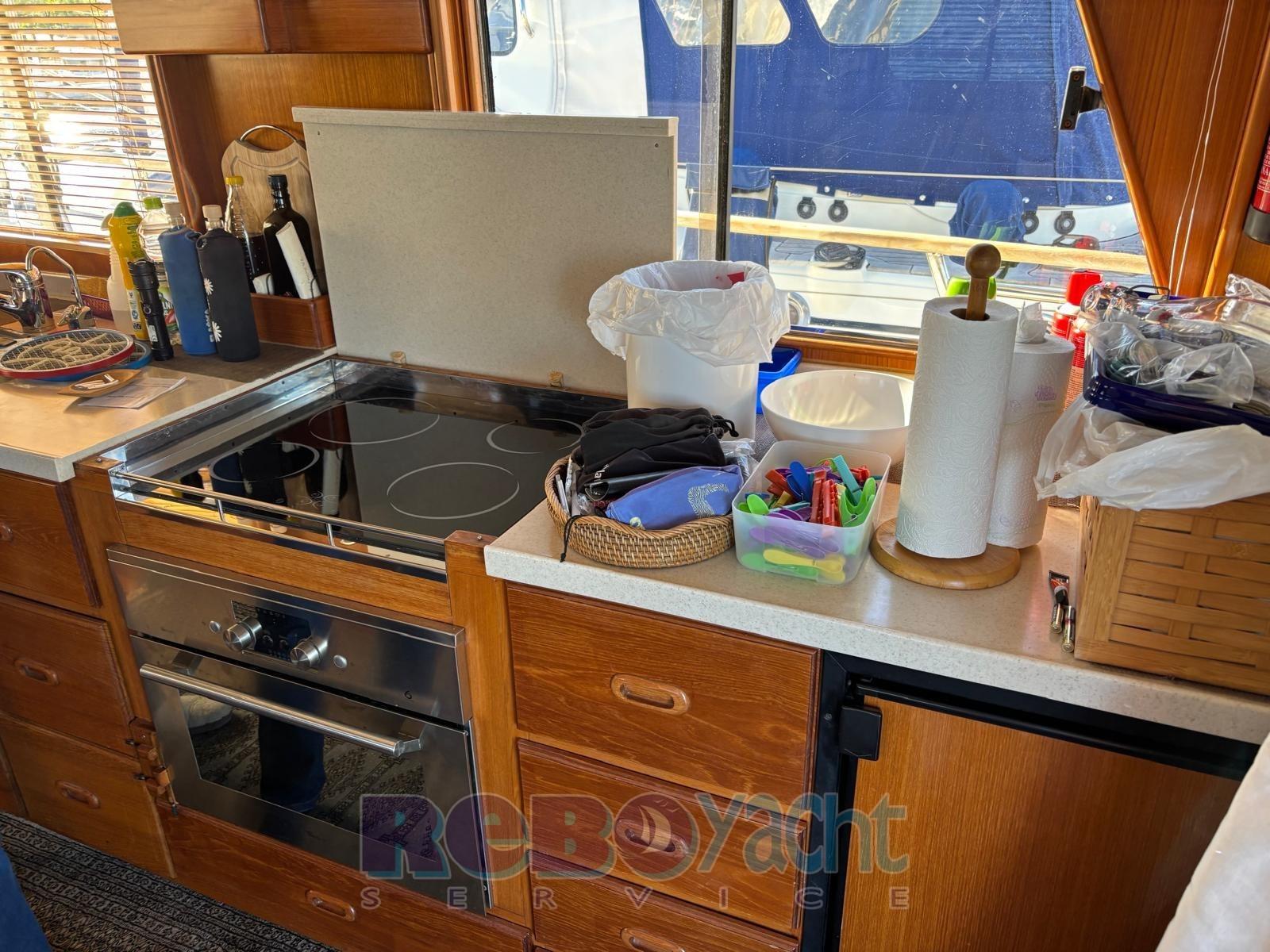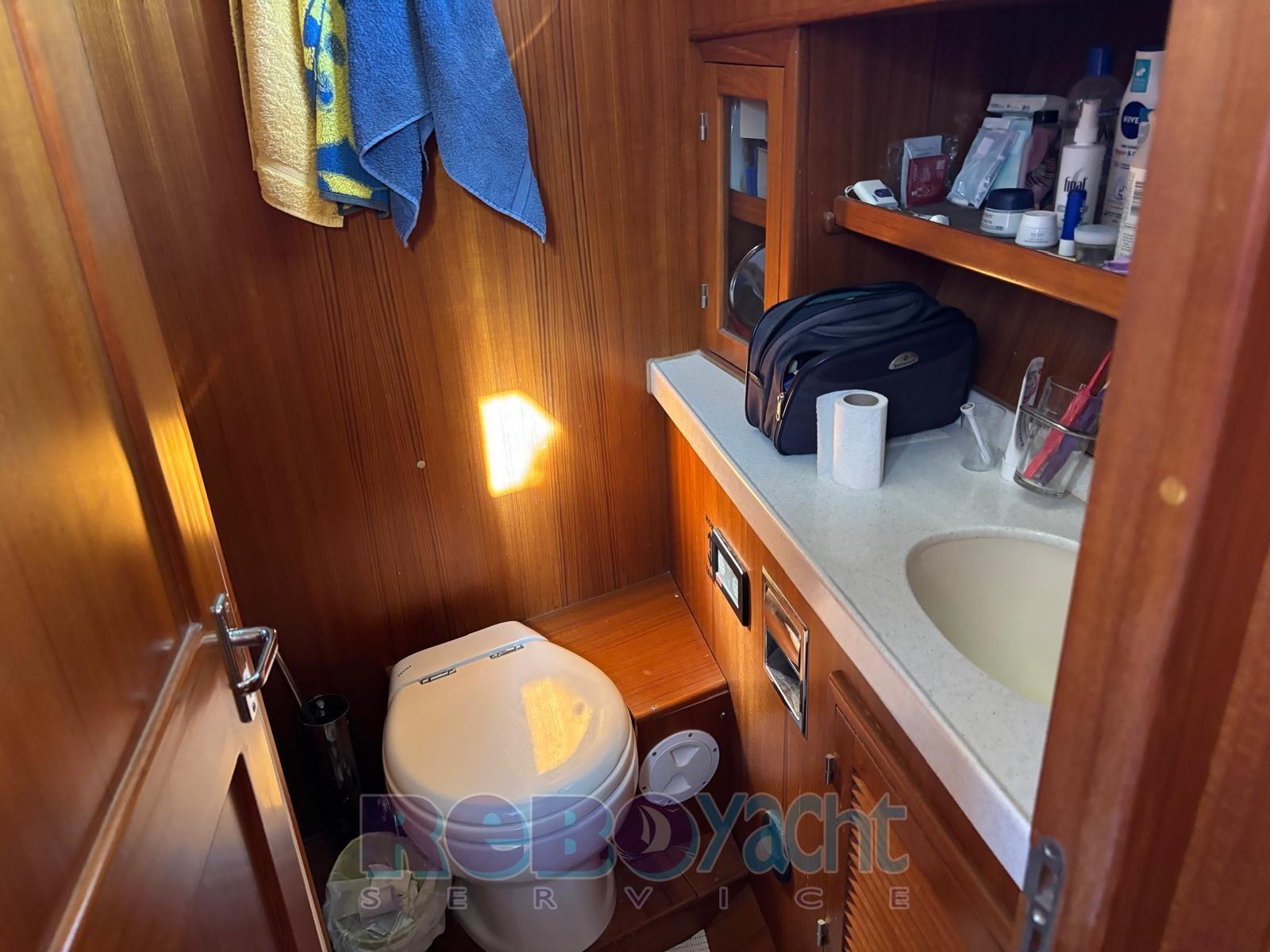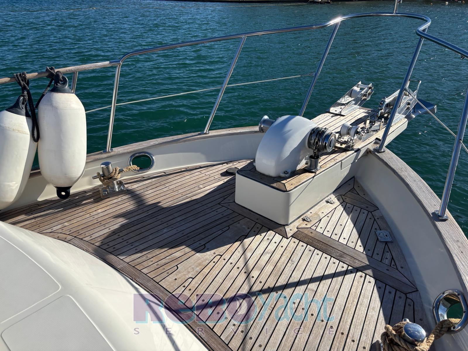 Eau sous pression, Douche de cockpit, Phare de poursuite, Flaps hydrauliques, Panneau solaire, Passerelle (idraulica), Plateforme arrière (acciaio e teak), Pont en teck, Porte latérale, Cockpit en teck, Prise de quai, Selles pour Annexe.