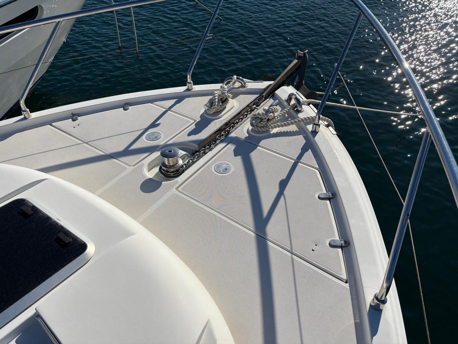 Alarme de pompe de cale, Eau sous pression, Câble d’alimentation à quai, Filière, Douche de cockpit, Double barre à roue, Extincteur(s) fixe(s), Indicateurs de flaps, Lavabo dans le cockpit, Défenses, Passerelle, Plateforme arrière, Pompe de cale automatique, Pompe de cale manuelle, Pompe à Eau de Mer, Cockpit en teck, Onduleur, Rollbar, Guindeau électrique, Echelle de bain, table de cockpit, Annexe, Winch électrique arrière, Winch électrique avant.