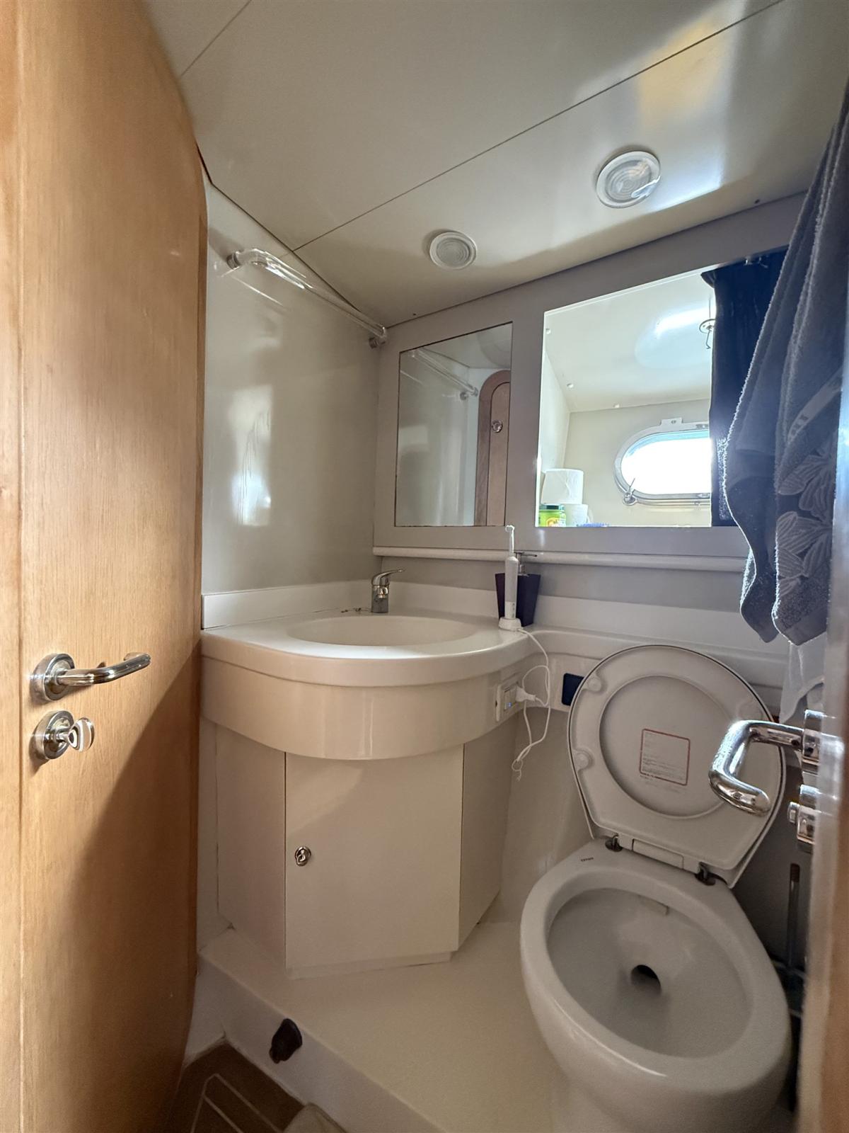 Alarme moteur, Alarme de pompe de cale, Eau sous pression, Câble d’alimentation à quai, Douche de cockpit, Flaps hydrauliques, Extincteur(s) fixe(s), Lavabo dans le cockpit, Éclairage de courtoisie, Spots sous-marins, Défenses, Passerelle, Pompe de cale automatique, Porte latérale, Prise de quai, Connexion eau sous pression à quai, Guindeau électrique, Echelle de bain, table de cockpit, Winch électrique avant.