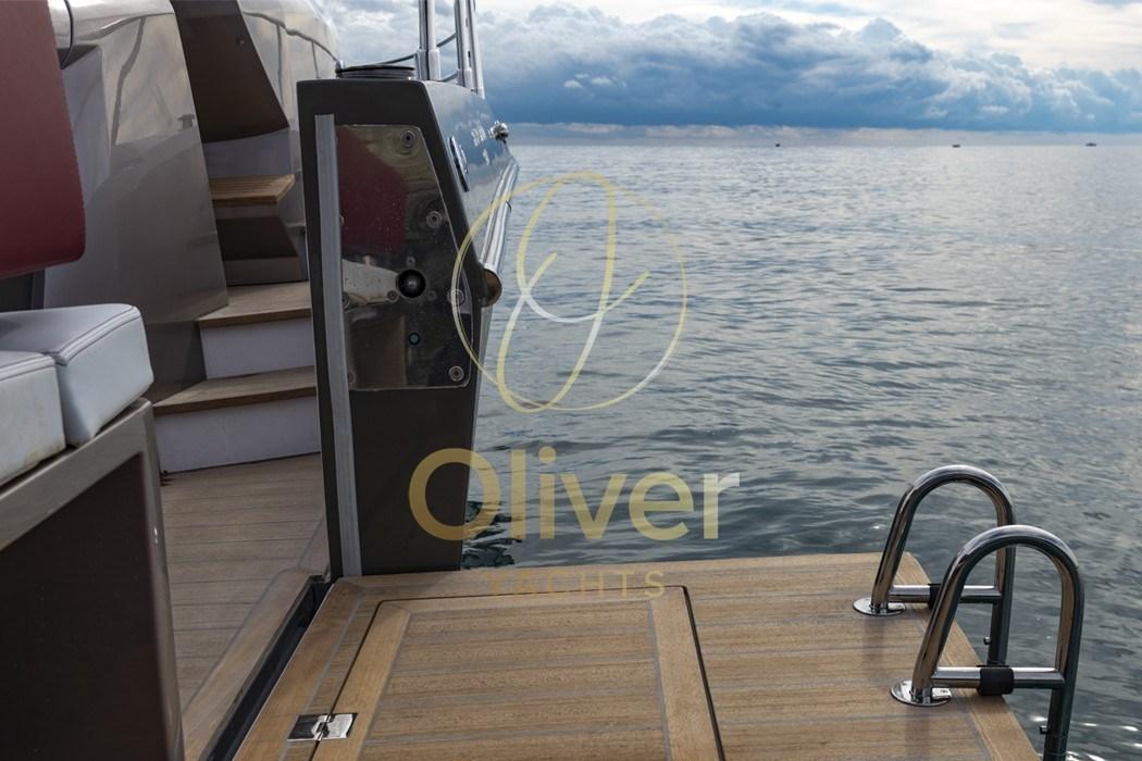 Alarme gaz, Alarme moteur, Alarme de pompe de cale, Alternateur, Aspiration des Eaux Usées depuis le Pont, Auto Dynamic Trim Interceptor, Eau sous pression, Trim hydraulique, Passavant en teck, Couleur spéciale, Filères, Douche de cockpit, Fixation de l’ancre, Flaps électriques, Extincteur(s) fixe(s), Lavage de chaine, Lavabo dans le cockpit, Éclairage de courtoisie, Spots sous-marins, Moniteur de batterie, Défenses, Passerelle, Plateforme arrière, Pompe de cale automatique, Pompe de cale manuelle, Pont en teck, Porte latérale, Cockpit en teck, Prise de quai, Connexion eau sous pression à quai, Guindeau électrique, Echelle de bain, table de cockpit, Corne.