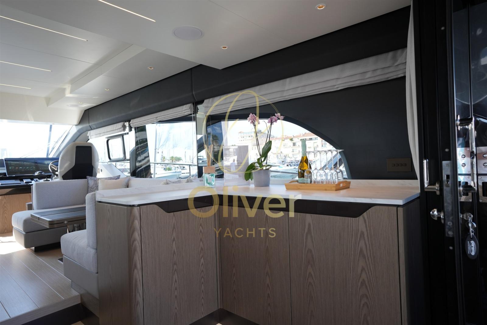 Propulsé par un double moteur Volvo Penta IPS 800 ou IPS 950 en option, le F60 atteint une vitesse de pointe de 30 nœuds et une croisière confortable de 24 nœuds, assurant efficacité, stabilité et plaisir de navigation sans compromis. La plate-forme arrière avec accès au garage pour les annexes ou les jet-skis jusqu’à 2,80 mètres, ainsi que les grands salons à l’avant, dans le cockpit et le flybridge, font de la vie à bord une expérience raffinée et relaxante.