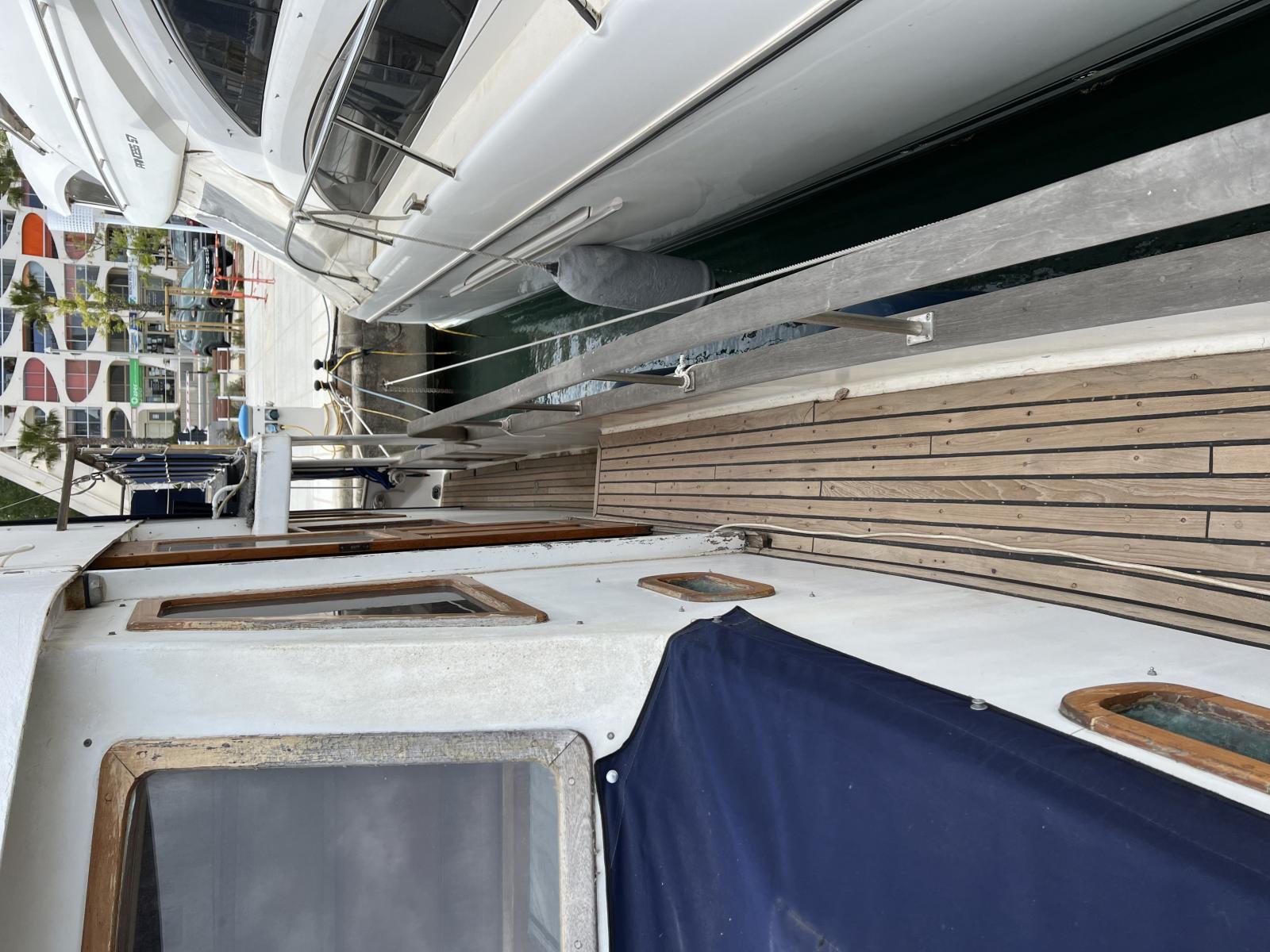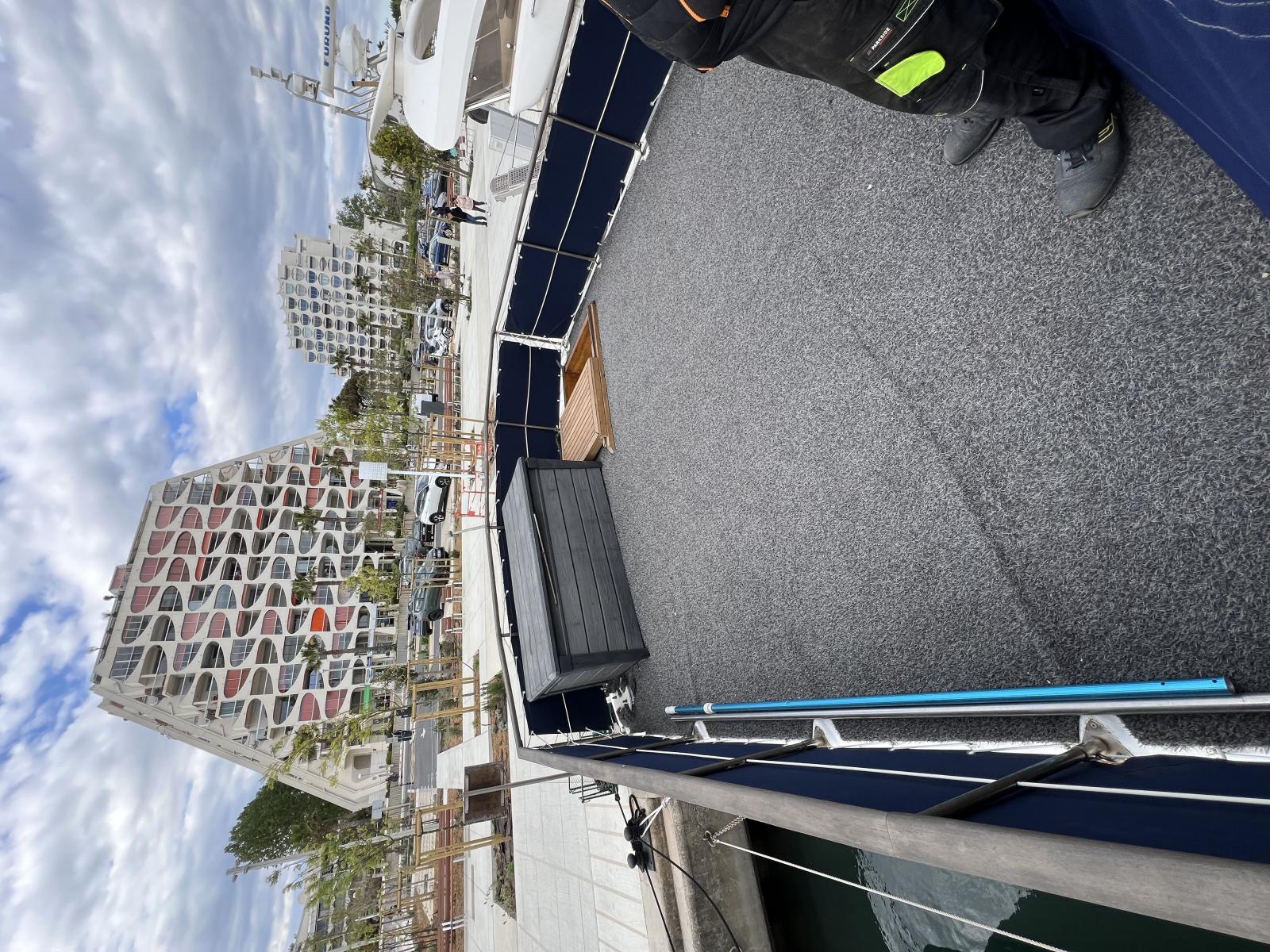 IL EST SITUÉ AU PORT DE LA GRANDE MOTTE AVEC UN PARKING AU PIED DU BATEAU.