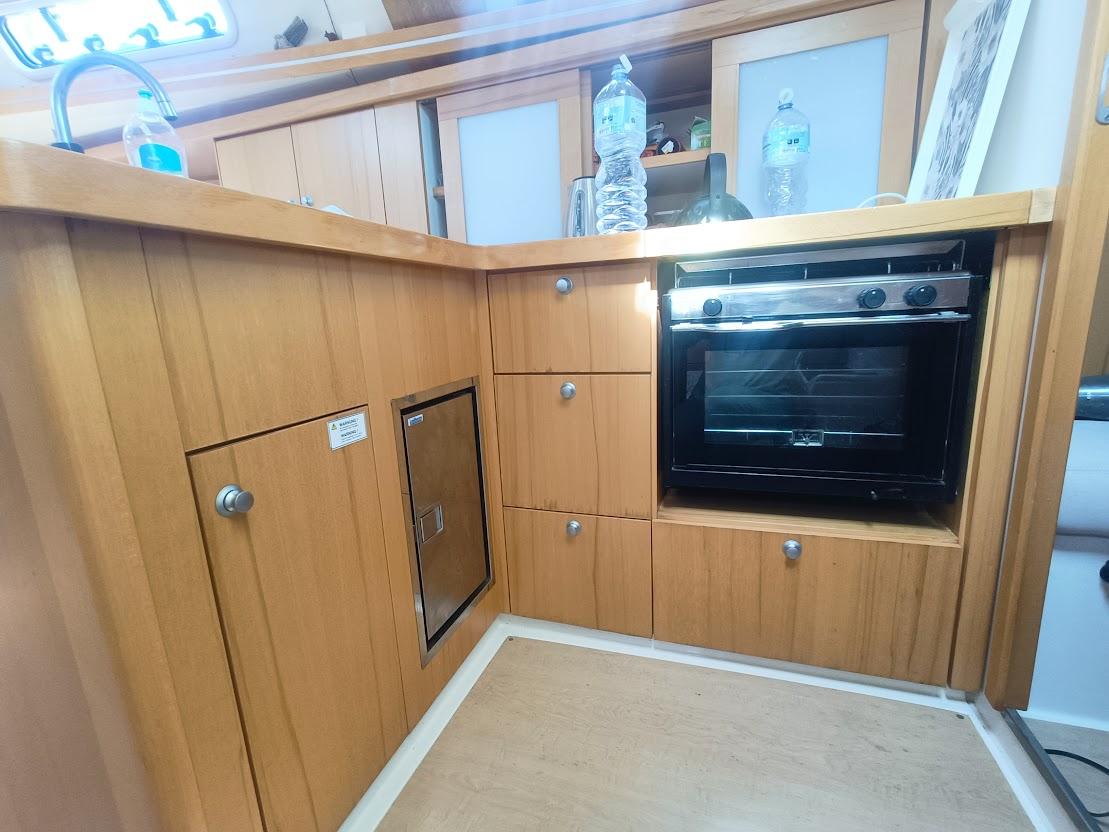 Son intérieur, composé de trois cabines et de deux salles de bain, est conçu pour allier luminosité et confort. Il dispose d'une cuisine en L avec réfrigérateur et petit congélateur.