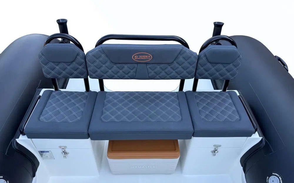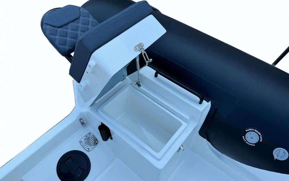 Direction hydraulique Seafirst, réservoir 100L avec jauge, bain de soleil, pompe de cale, siège bolster avec table picnic, feux de navigation, bande de protection étrave et pack audio Fusion. Confort et équipements haut de gamme pour vos sorties en mer.