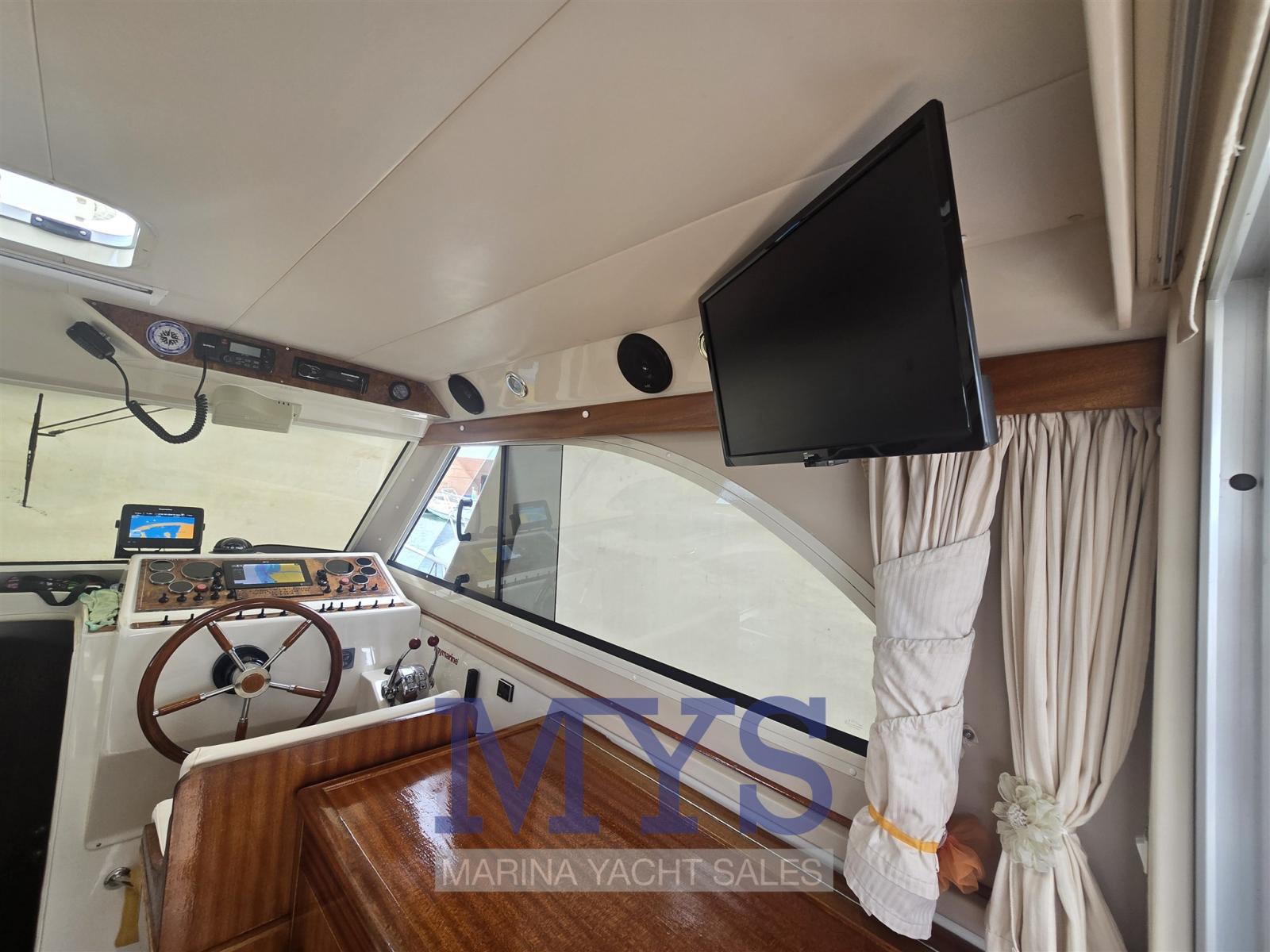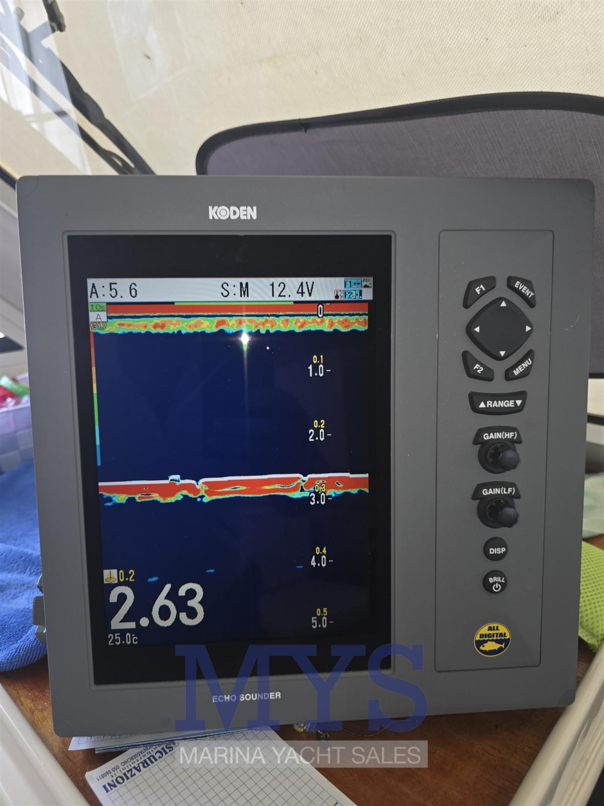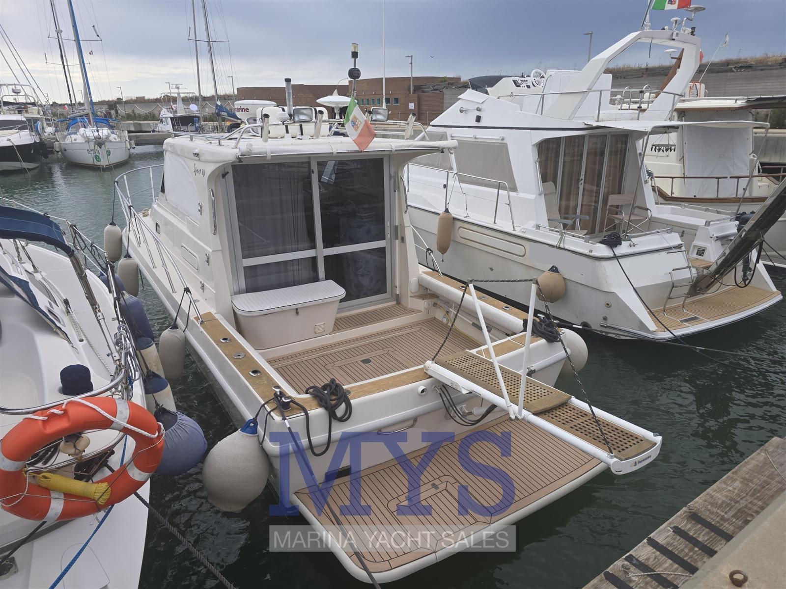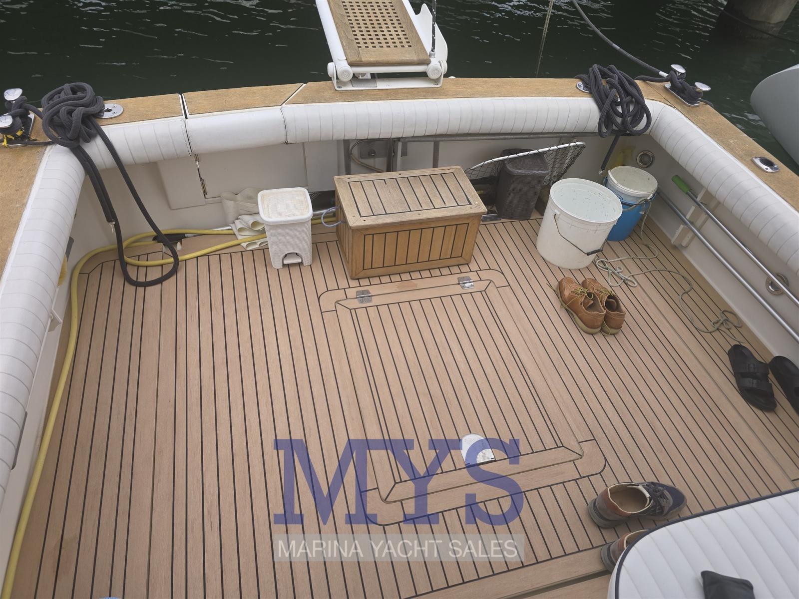 Alarme moteur, Alarme de pompe de cale, Eau sous pression, Douche de cockpit, Phares fixes arrière, Flaps hydrauliques, Plateforme arrière, Pompe de cale automatique, Porte latérale, Cockpit en teck, Guindeau électrique, Echelle de bain, Corne.