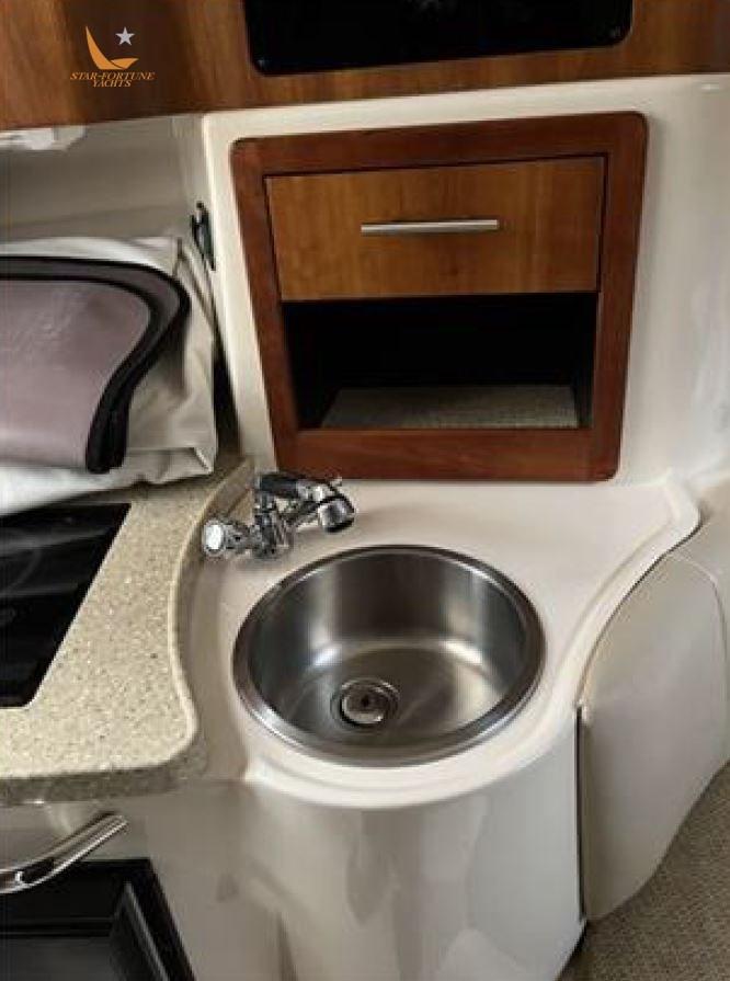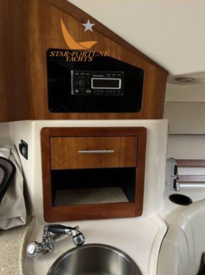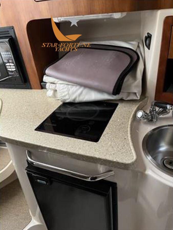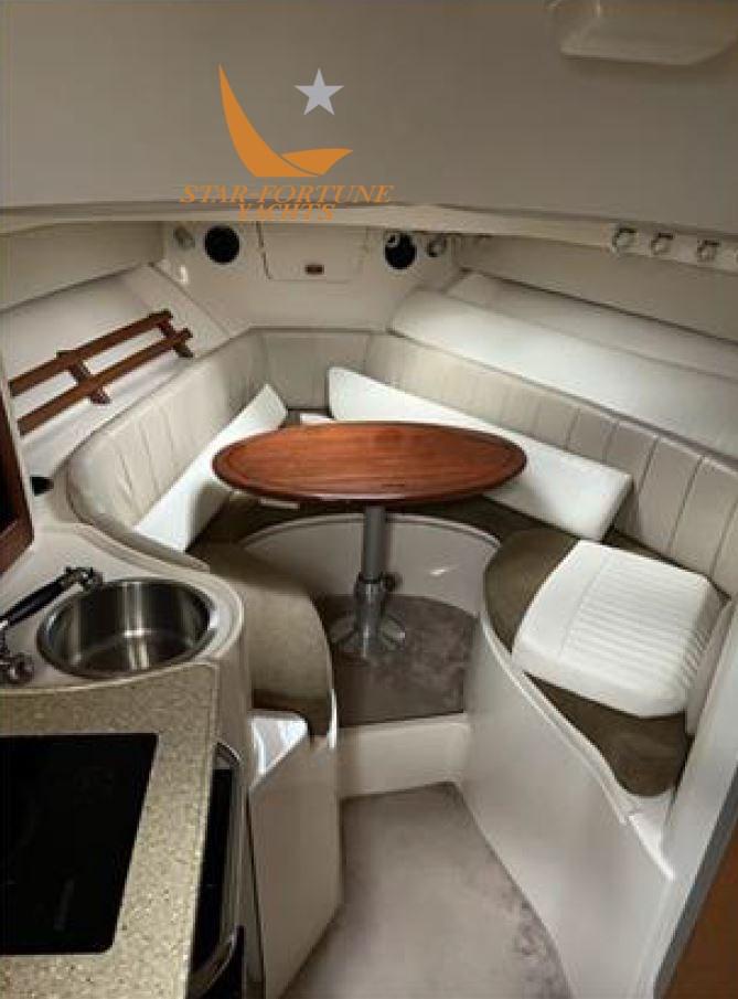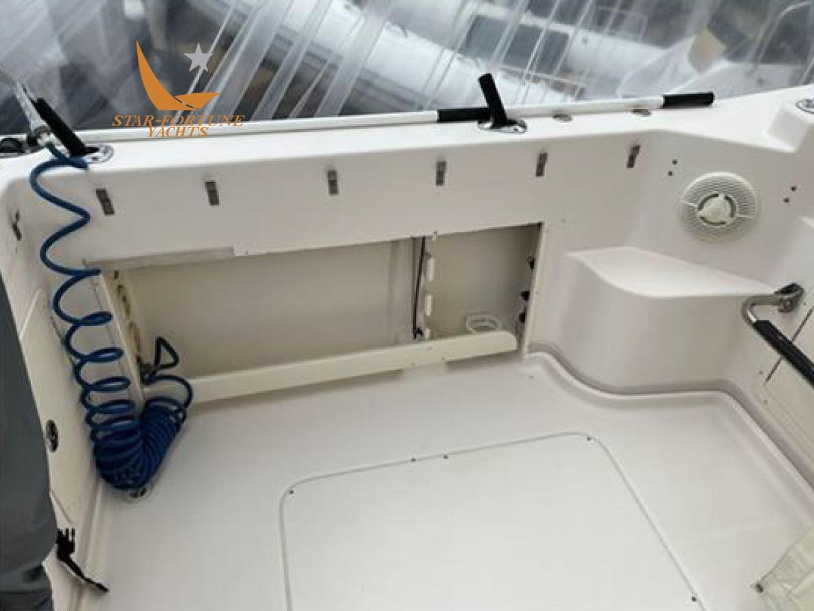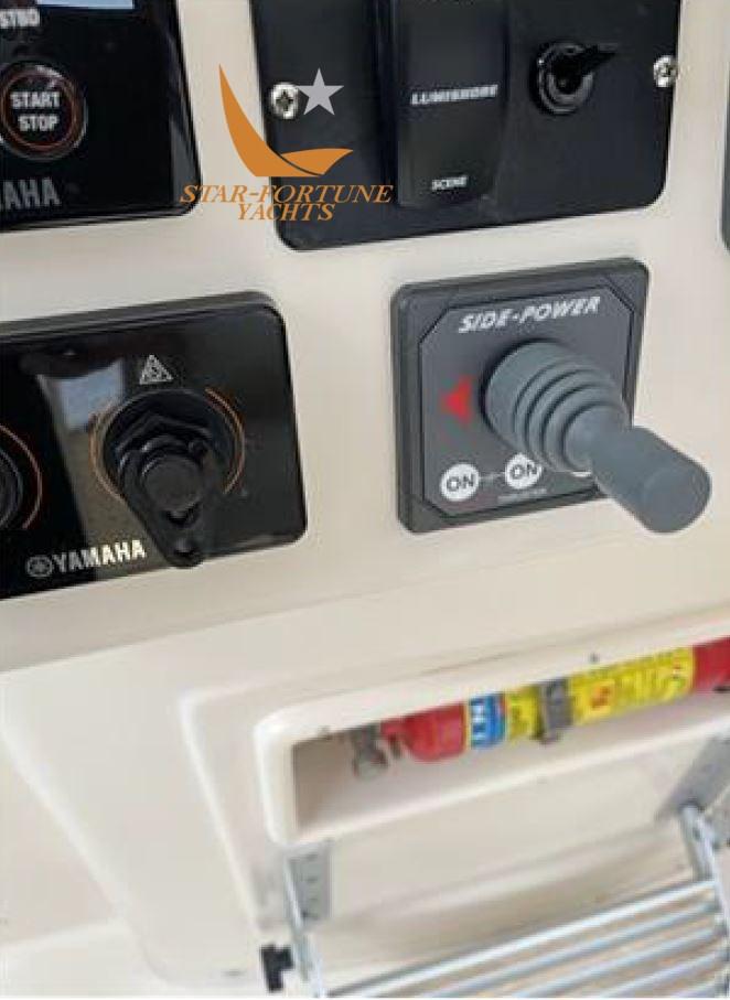 Alarme moteur, Eau sous pression, Douche de cockpit, Flaps hydrauliques, Plateforme arrière, Porte latérale, Prise de quai, Guindeau électrique, Echelle de bain, T-Top.