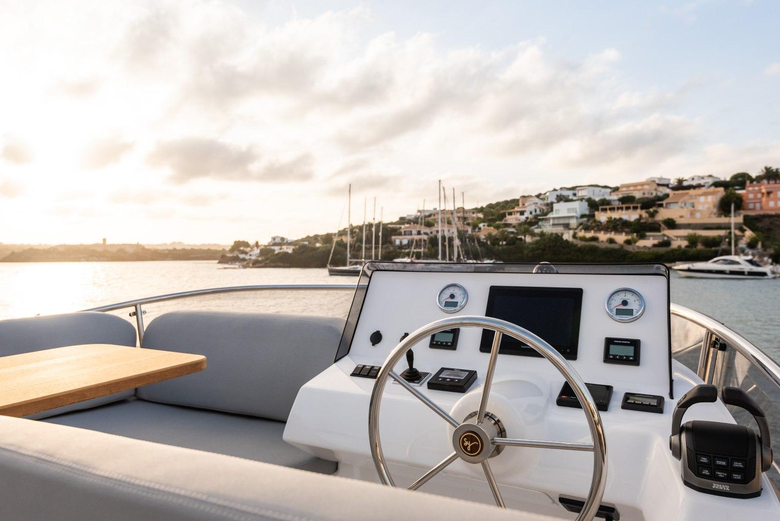 Le Sasga Menorquin 42 existe en version Hard Top ou Flybridge. C'est un yacht qui incarne le parfait équilibre entre tradition et modernité. Conçu pour les plaisanciers exigeants, il offre une expérience de navigation unique tout en garantissant un confort exceptionnel. Le Menorquin 42 se distingue par ses lignes élégantes et sa silhouette robuste. Inspiré par les traditionnels bateaux de pêche des Baléares, il allie esthétique classique et fonctionnalité moderne. La coque en polyester et les finitions en teck soulignent l’attention portée aux détails et à la qualité. L’intérieur du Menorquin 42 est un véritable havre de paix. Avec un agencement réfléchi, il peut accueillir jusqu’à six personnes. Le salon, lumineux et accueillant, est équipé d’une cuisine fonctionnelle et d’un coin repas. Les cabines, confortables et bien aménagées, garantissent une nuit paisible en mer. Équipé de moteurs puissants, le Menorquin 42 offre des performances maritimes remarquables. Sa conception assure une navigation stable et sécurisée, même dans des conditions de mer agitées. Les systèmes de navigation modernes intégrés garantissent une prise en main aisée et une expérience de pilotage agréable. Le Flybridge spacieux est un atout indéniable du Menorquin 42.