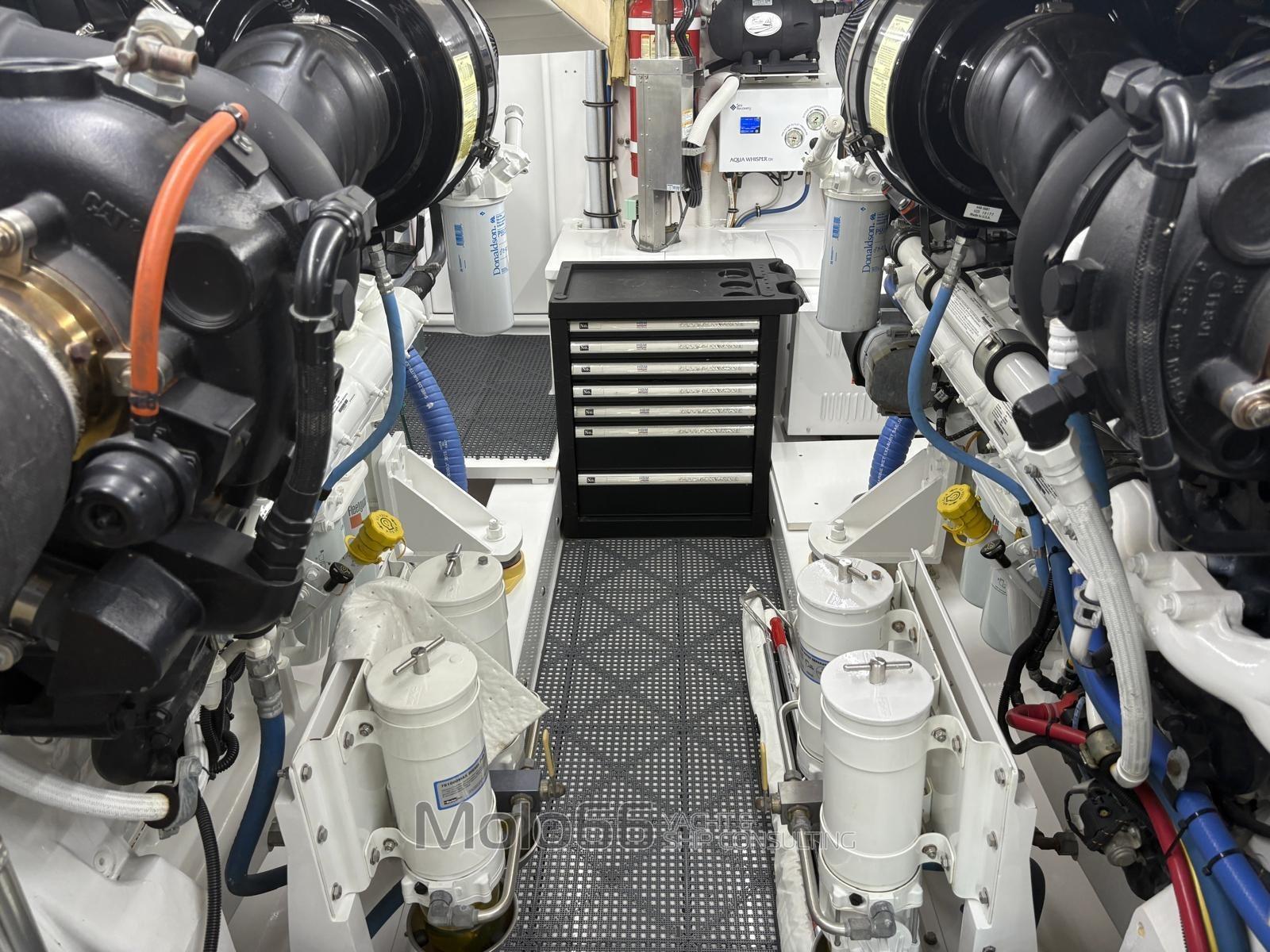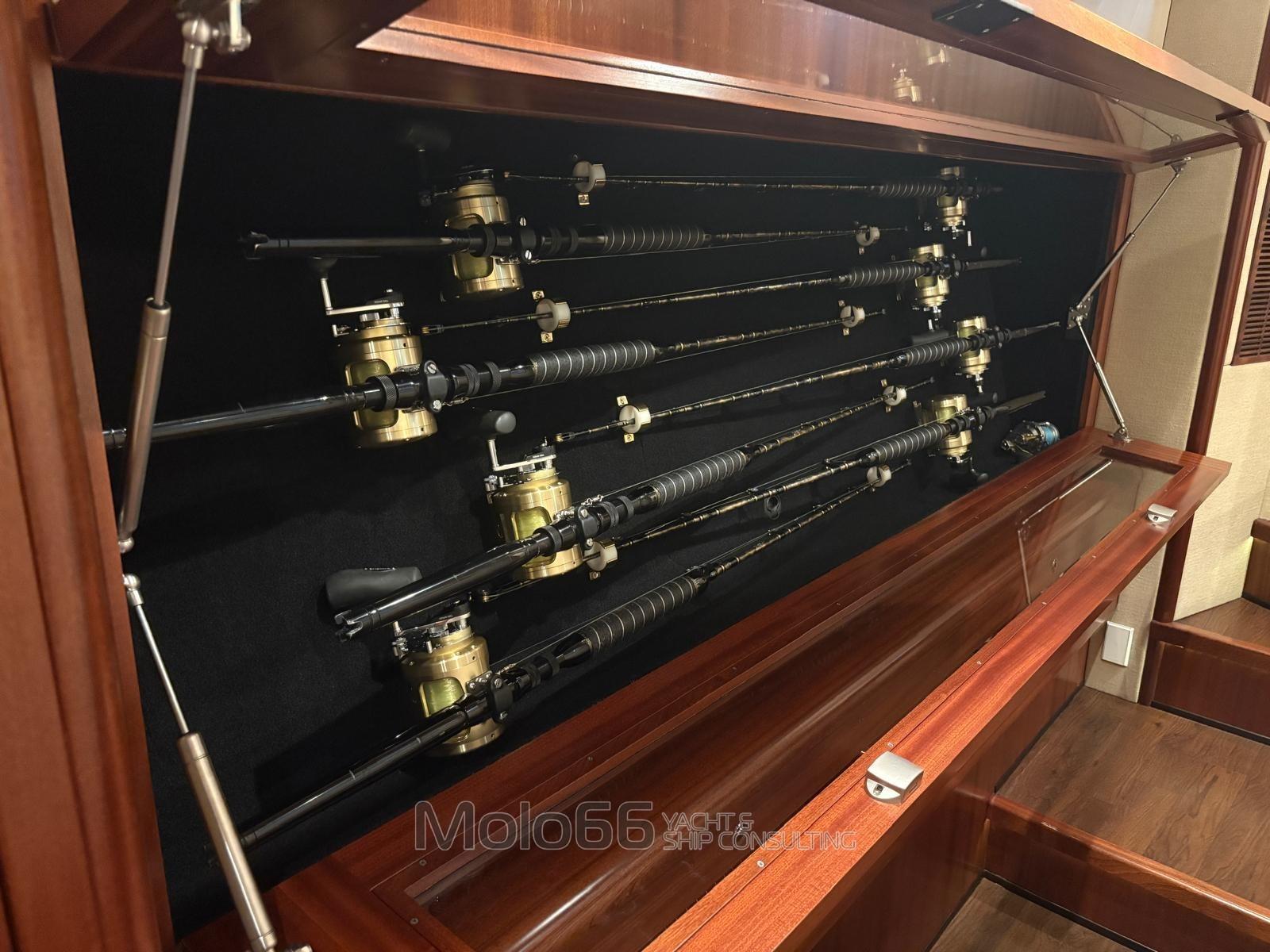 Alarme gaz, Alarme moteur, Alarme de pompe de cale, Alternateur, 2 Eau sous pression, Câble d’alimentation à quai, Couleur spéciale (Grey Perle), Douche de cockpit, Hélice de rechange, Phares fixes arrière, Phare de poursuite, Flaps hydrauliques, Bossoirs pour annexe (on deck 1500 lb Marquit), Hard top, Extincteur(s) fixe(s), Compresseur de plongée, Lavage de chaine, Lavabo dans le cockpit, Éclairage de courtoisie, Spots sous-marins, Moteur hors-bord pour annexe (Yamaha 40hp 4T), Passerelle, Pompe de cale automatique, Pompe de cale manuelle, Pompe de Lavage du Pont, Pompe à Eau de Mer, Porte latérale, Cockpit en teck, Prise de quai, Connexion eau sous pression à quai, Guindeau électrique, Echelle de bain, 2 Stabilisateurs (Seakeeper serie 9), Table pliante de salon, Annexe (Boston Whaler 13' Outrage), Corne, 2 Winch électrique arrière, Winch électrique avant.