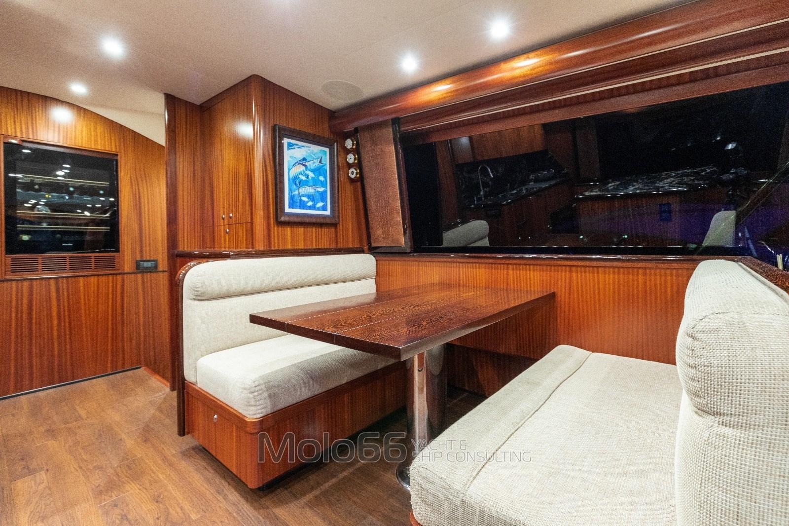 Eau Chaude, Ballon d'eau chaude, Coffre-fort, Air Conditionné, Gradateur de lumière, Dessalinisateur (Sea Recovery Aqua Wesper), Cuve à eaux noires, Indicateur du réservoir de carburant, Jauge de Réservoir d’Eau, Jauge de Réservoir d’Eaux Usées, Plancher intérieur en bois, Prises interieures 12v, Prises interieures 220v, Réservoir d'eau noire, 5 Caméra vidéo ((3 engines room) + Flir termo), 3 Toilettes électriques.