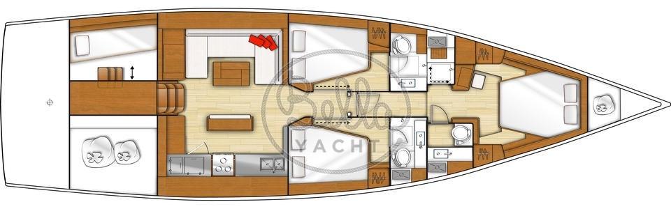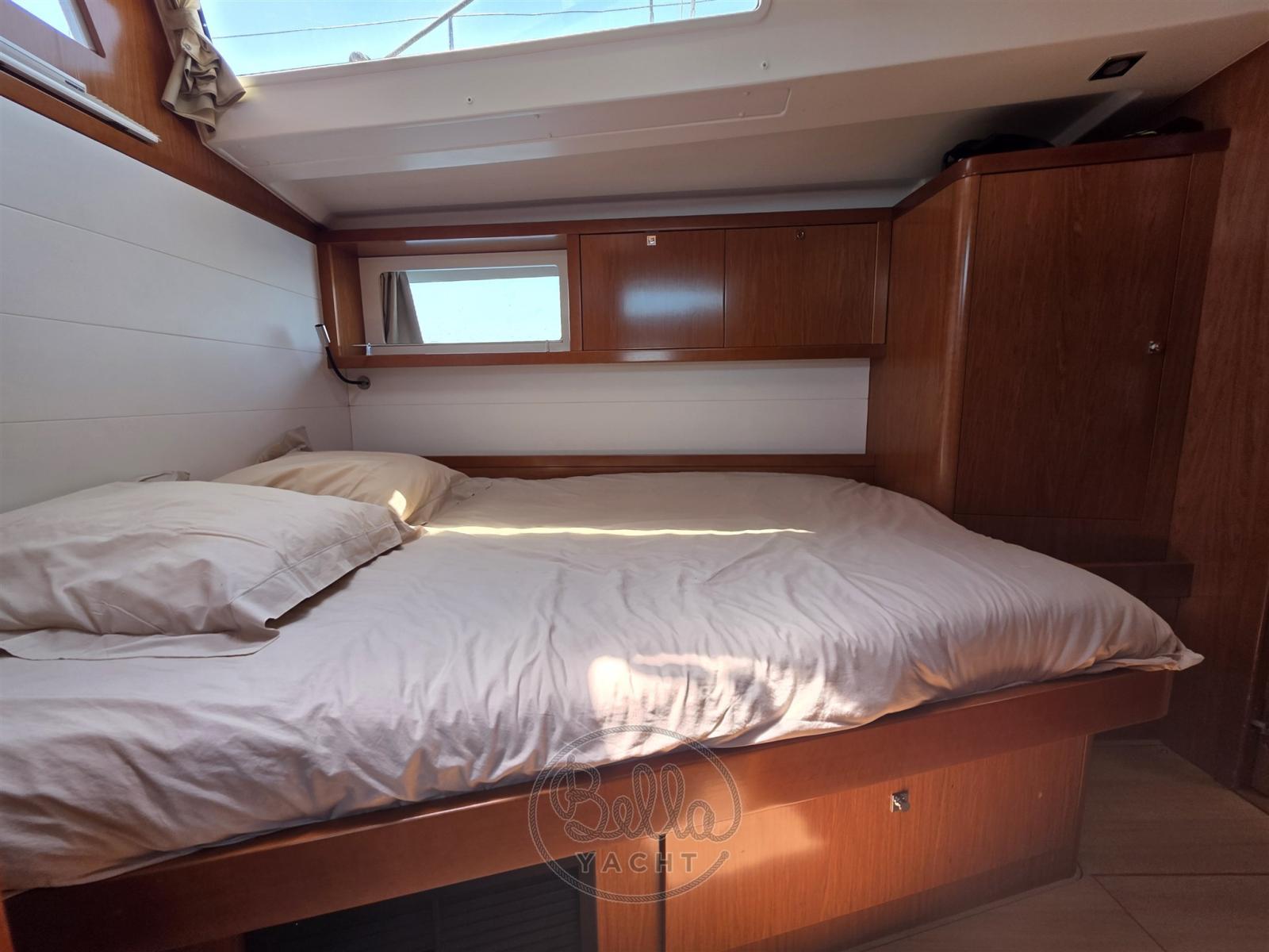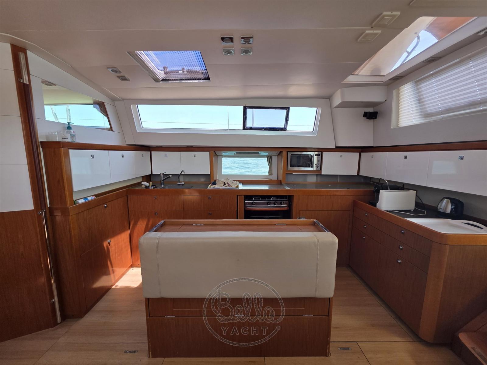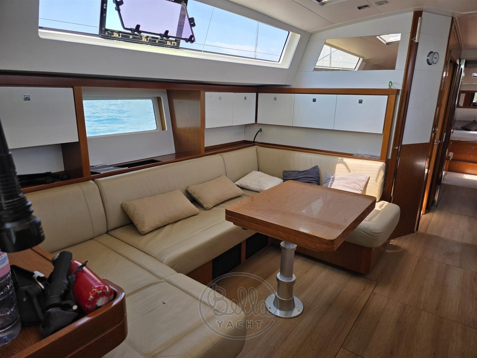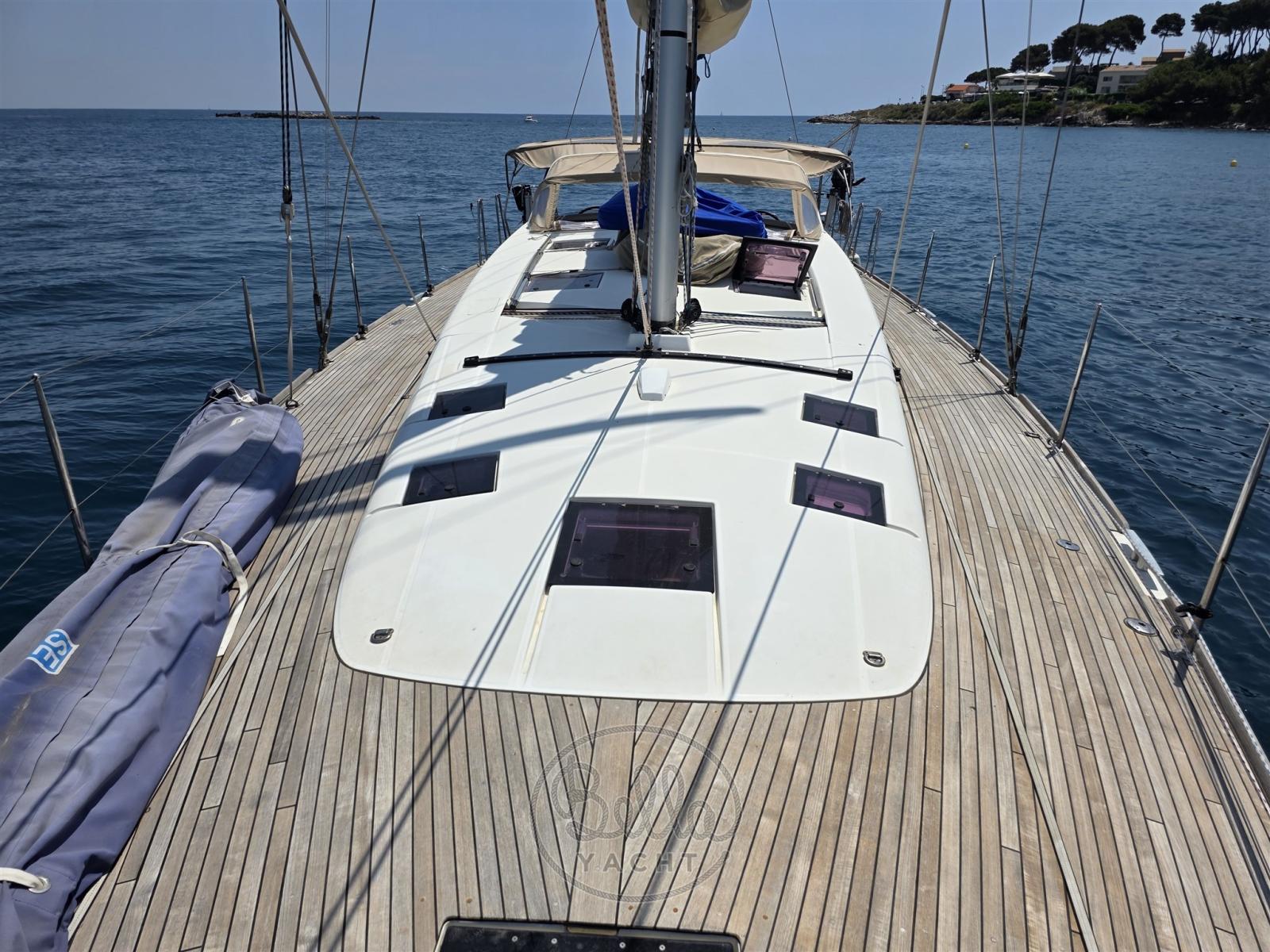 Alarme moteur, Eau sous pression, Passavant en teck, Douche de cockpit (calda e fredda), Double barre à roue, Moteur d'annexe, Cockpit en teck, Prise de quai, Rollbar, Guindeau électrique, Gréement monotoron, Echelle de bain, table de cockpit, Annexe, Filières avec sortie latèrale, Pont en teck, 4 Winch électrique.