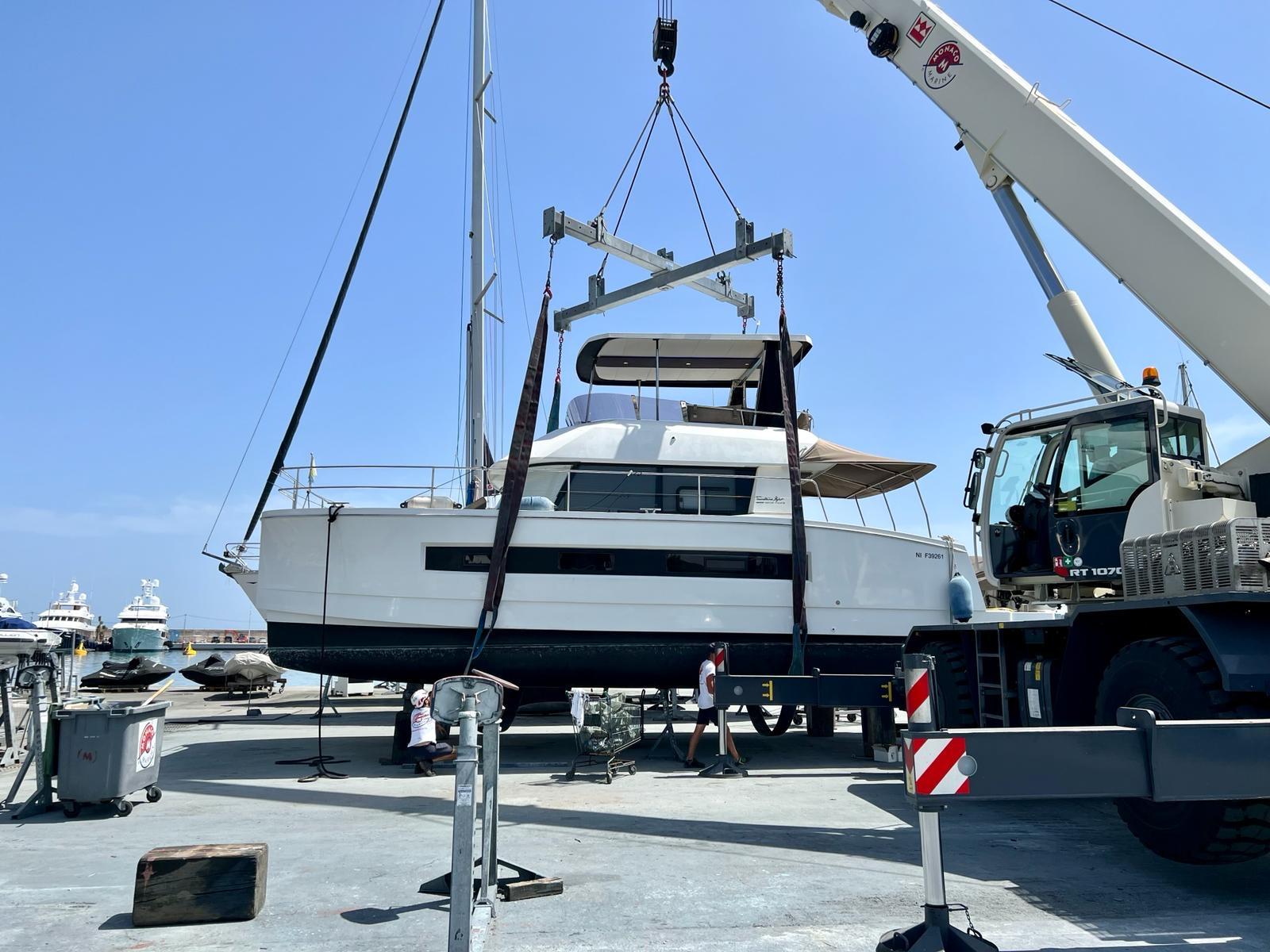 Ancre à pointe lestée SPADE, 50 ml de chaine, pack de batterie servitudes 2021, pompes de cale, Flexiteck sur cockpit et Plate -forme immergée hydraulique, douchette de cockpit EF / EC, échelle de bain, armement, survie révisée 2022 capacité carburante : 2 X 600 l, eau : 350 l, eau chaude 40 l