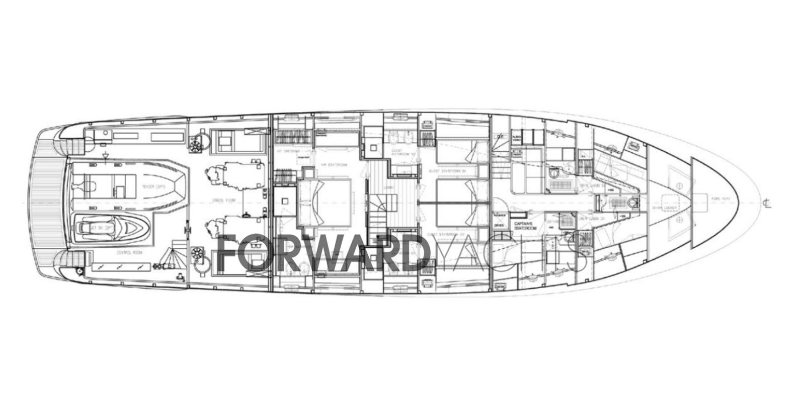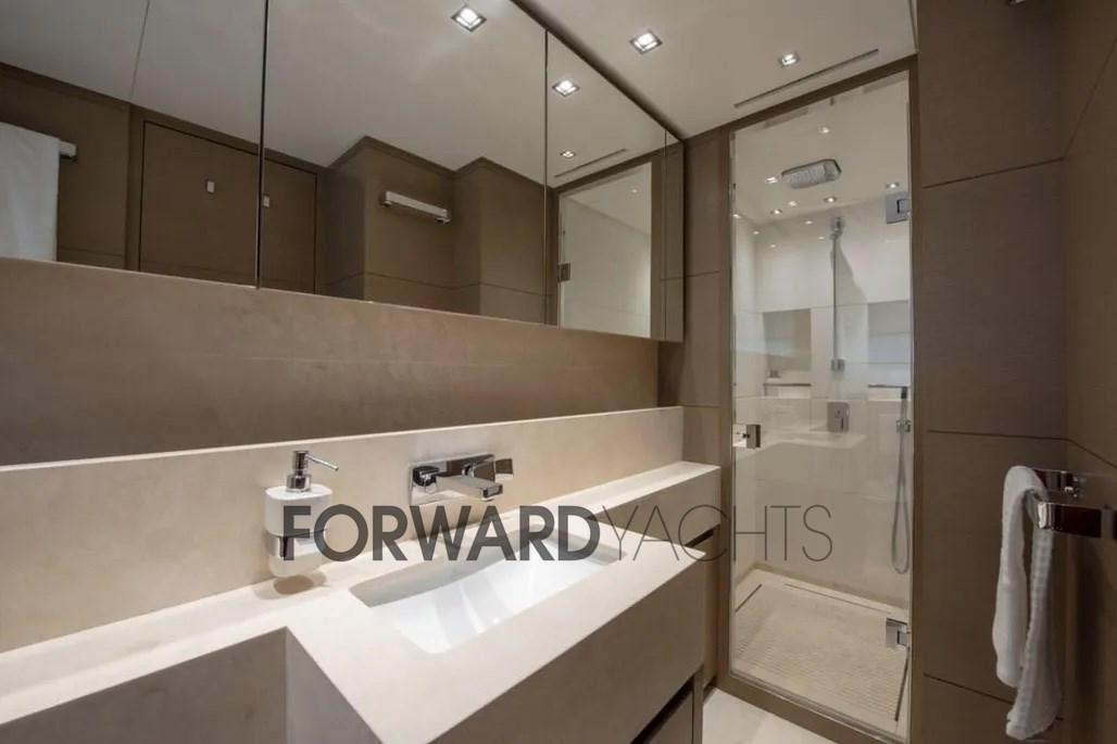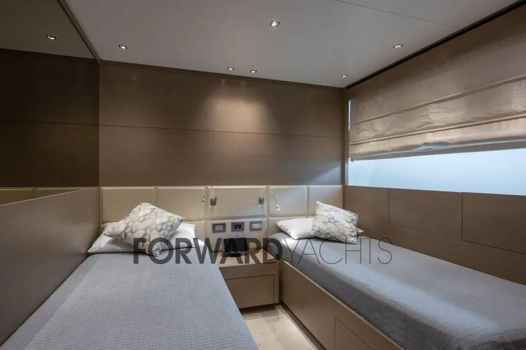Le pont inférieur abrite une cabine VIP et deux cabines doubles pour les invités, toutes avec salle de bains privative.