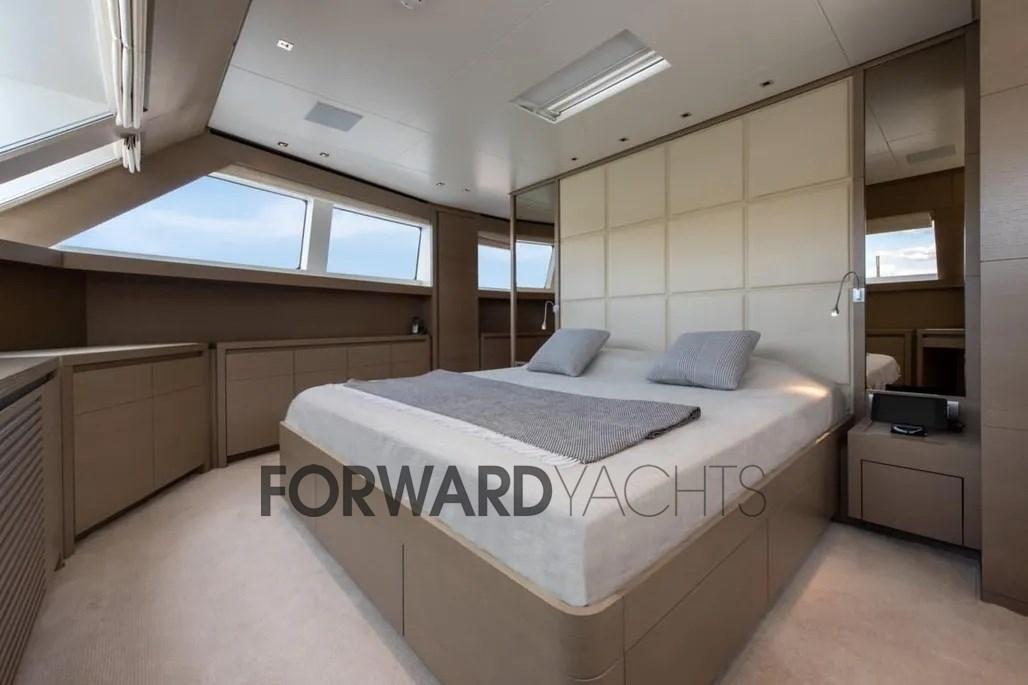 Sur le pont principal se trouve la suite du propriétaire, élégante et réservée, avec une grande salle de bain privée.