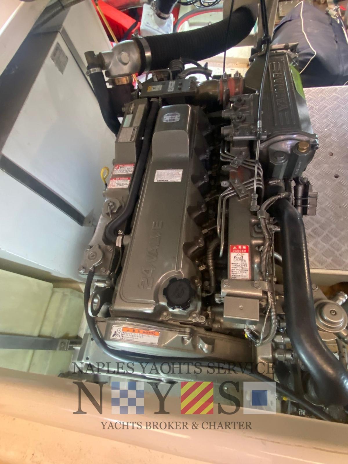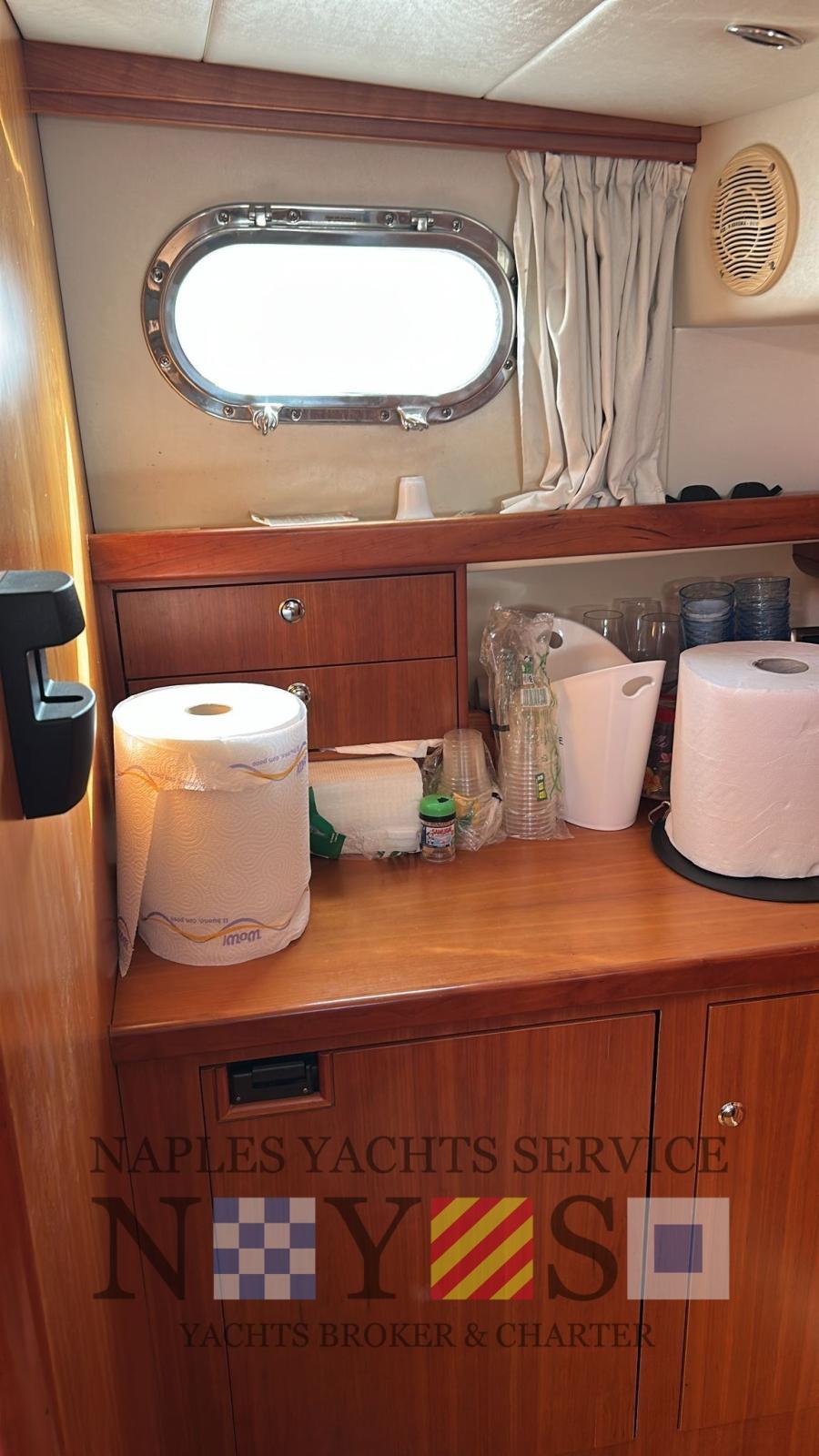 Alarme moteur, Eau sous pression, Douche de cockpit, Lavabo dans le cockpit, Passerelle (idraulica besenzoni), Plateforme arrière, Pompe de cale manuelle, Rollbar, Guindeau électrique, Echelle de coupée.