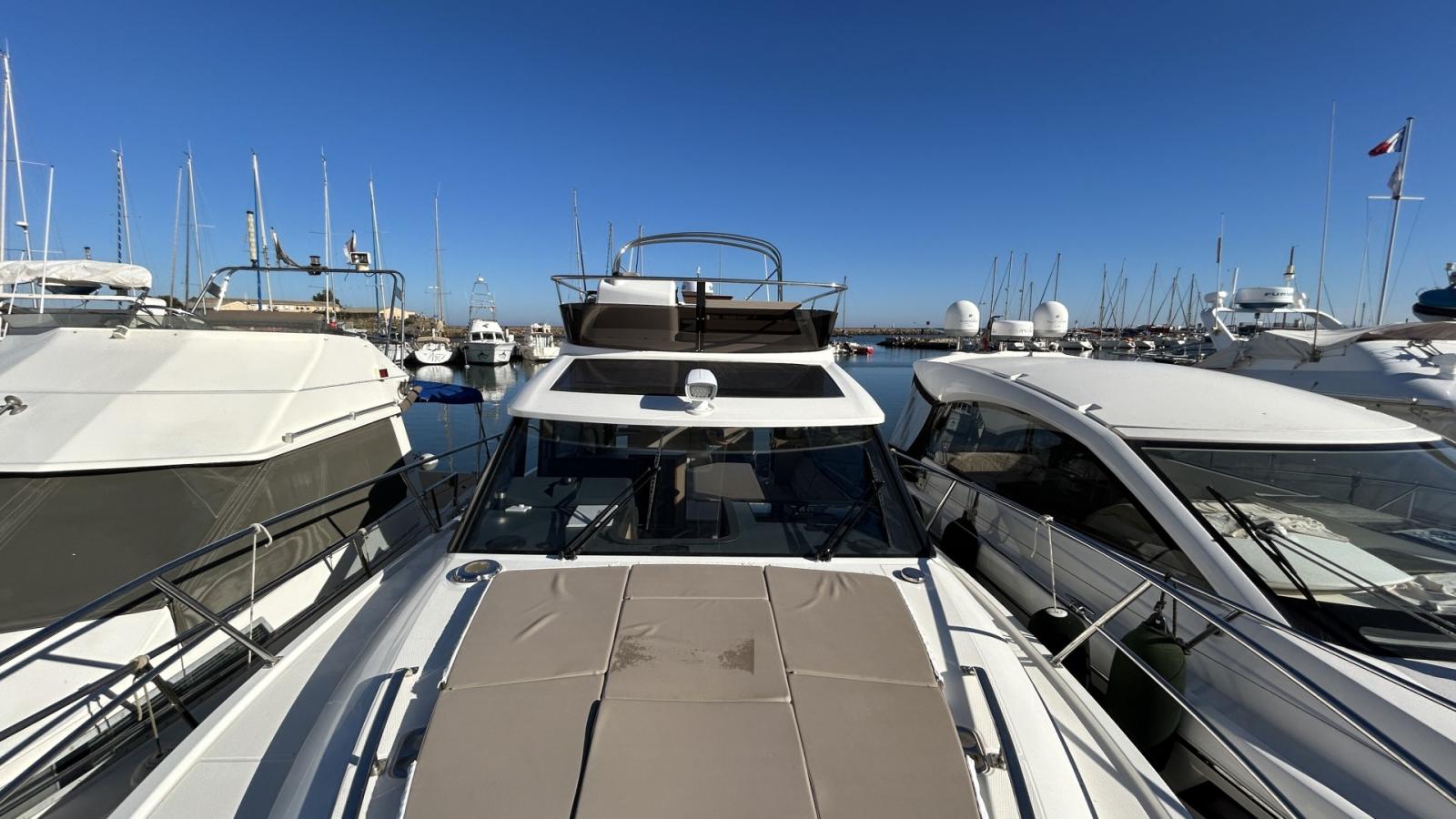 Climatisation , chauffage, système audio FUSION , pack électronique premium + premium Fly. Propulseur d'étrave, guindeau , option extension réservoirs de carburant.
