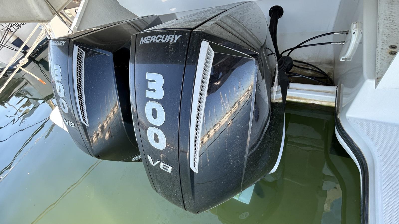 Vedette PARKER 110 MONACO FLY de 2024, en état neuf, seulement 31 heures de navigation pour ses 2 moteurs MERCURY VERADO V8 de 330CV.