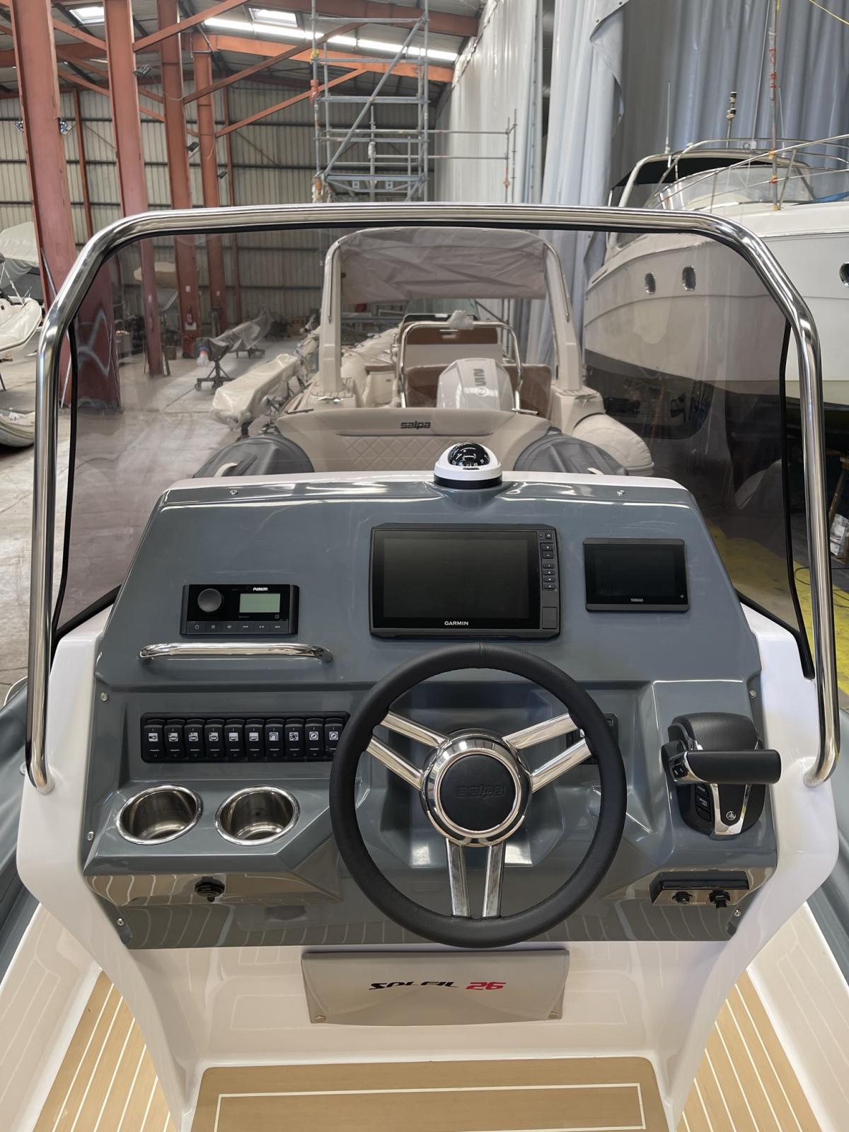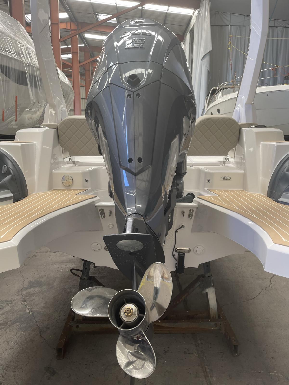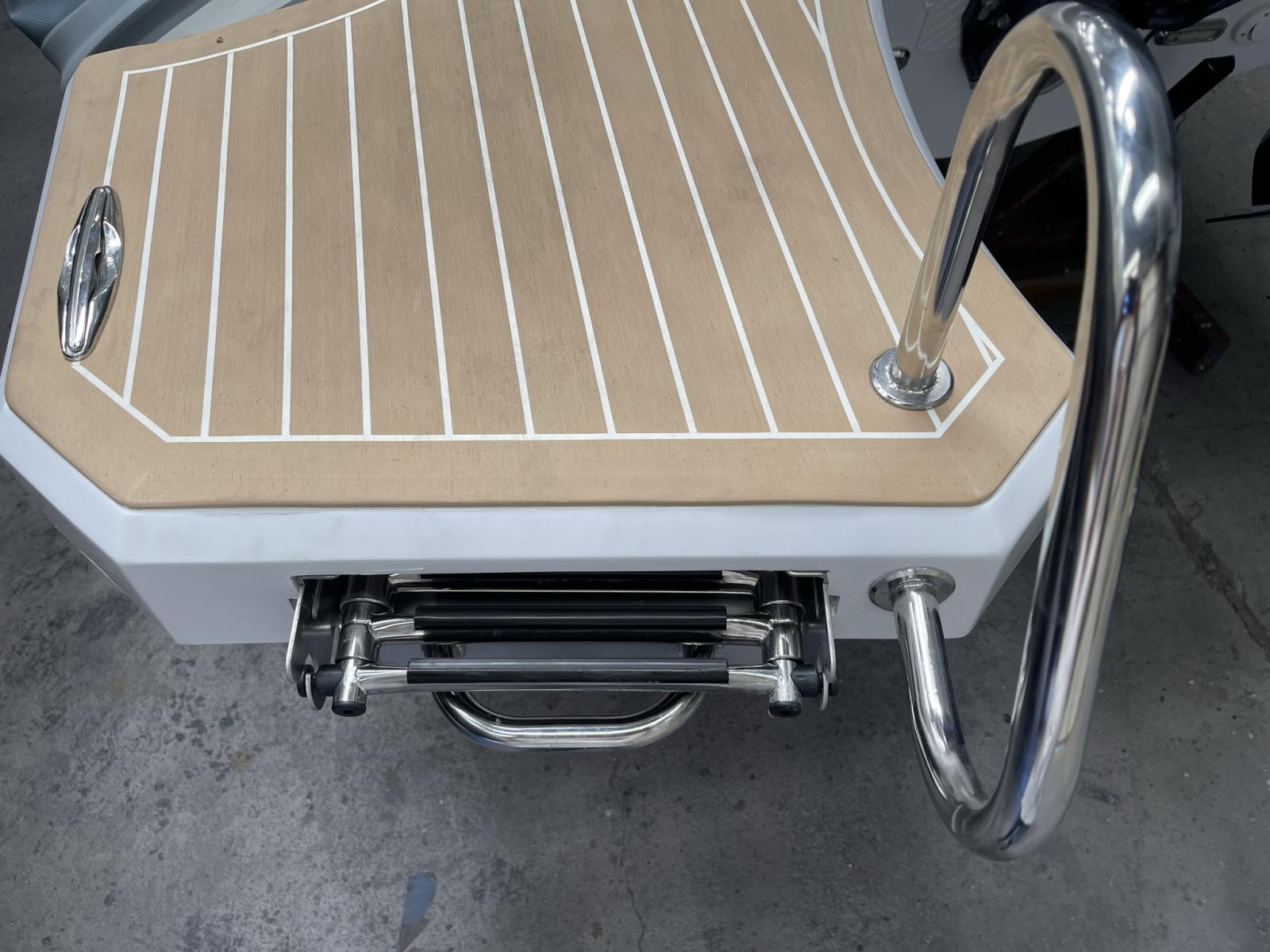 Plages arrières avec échelle de bain télescopique - Extension bain de soleil avant - Douchette sur plage de bain - 2 pompes de cale automatiques - Meuble de cuisine (plaque de cuisson et frigo en option) - Réservoir a carburant 300 litres et réservoir d'eau 70 litres - Console de pilotage avec rangement - Pare brise - Main courante inox -Coupe batterie - Feux de navigation - Tableau de bord - Corne de brume - 4 taquets d'amarrage Inox - Installation électrique à disjoncteurs magnétothermiques - Nombreux coffres de rangement - Support extincteur - Capot ouvrant(mouillage) a la proue - Sellerie complète cockpit - Gonfleur au pied - Manomètre de pression - Ventilation Blower compartiment réservoir a carburant - Direction hydraulique et volant de direction - Taquets d'amarrage X2 rétractables sur la plage arrière.