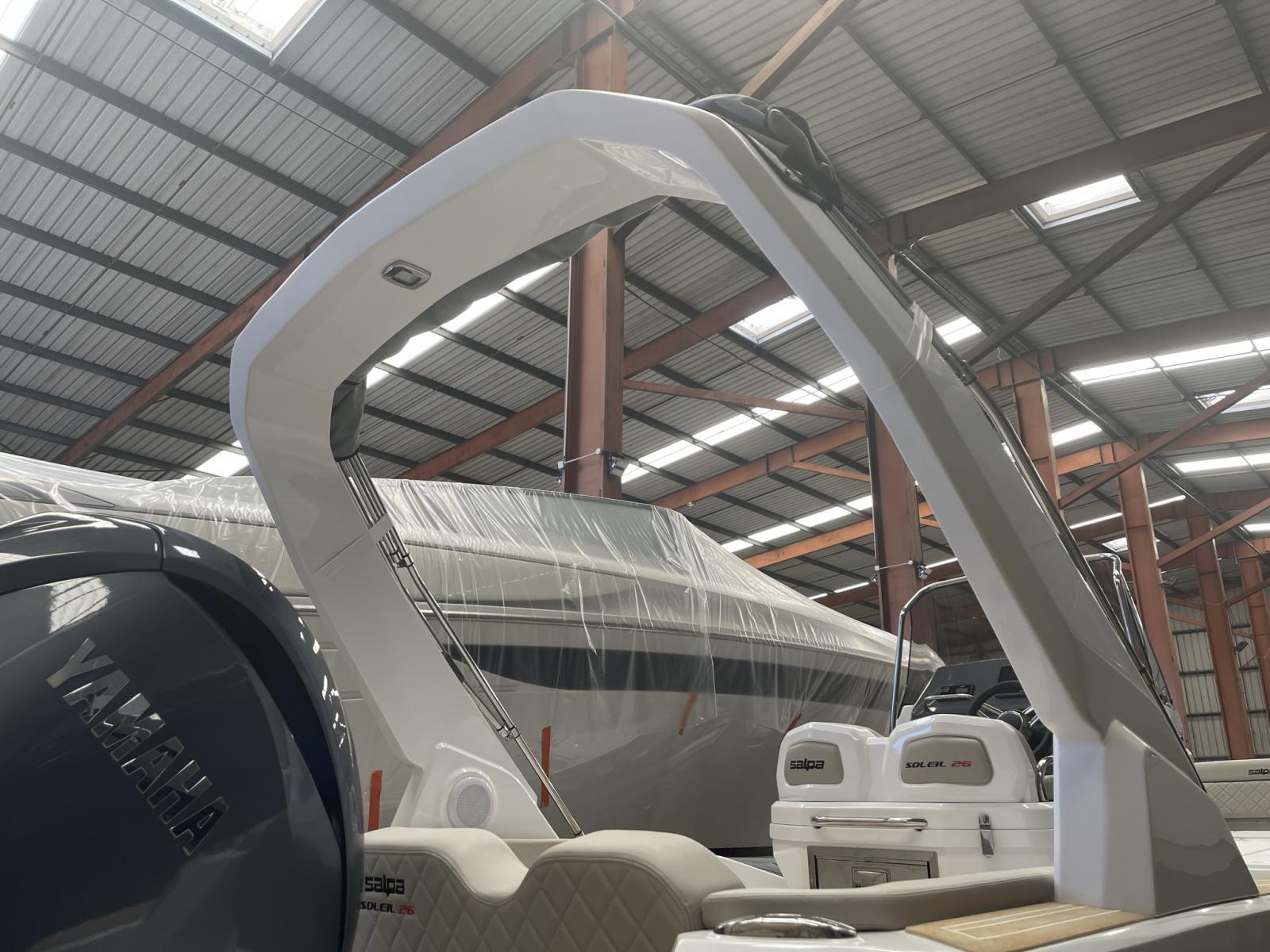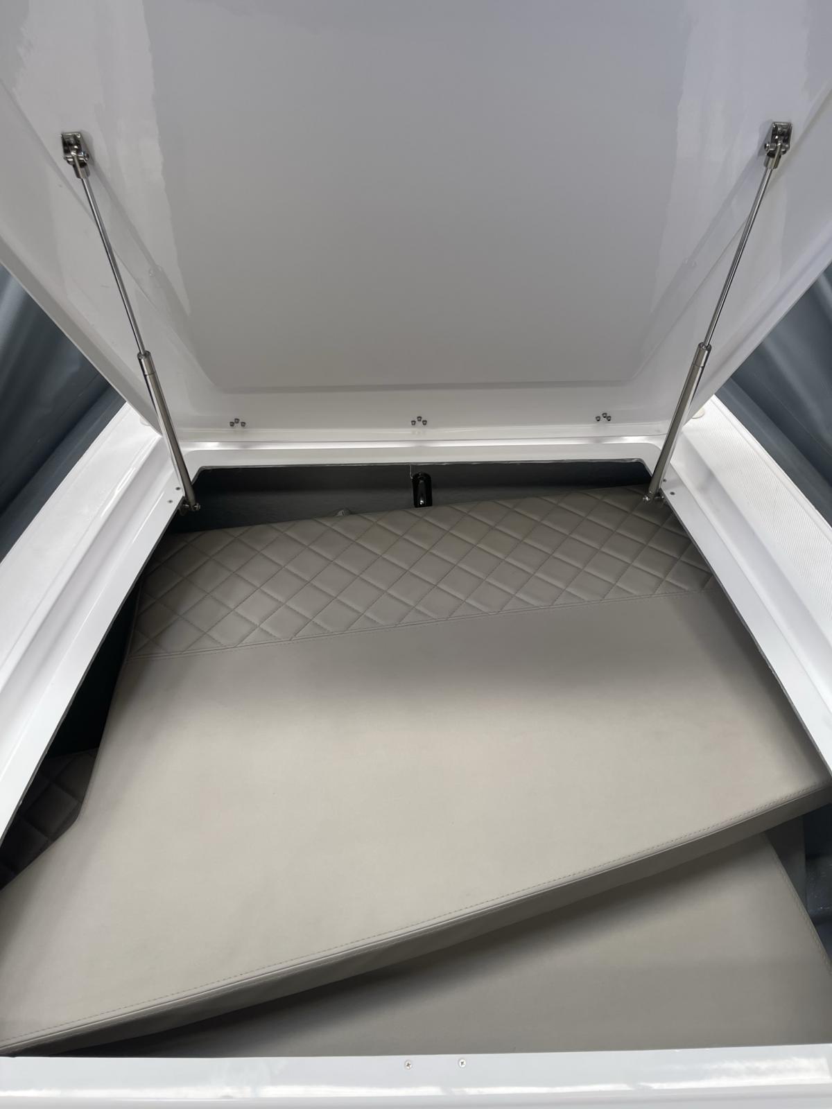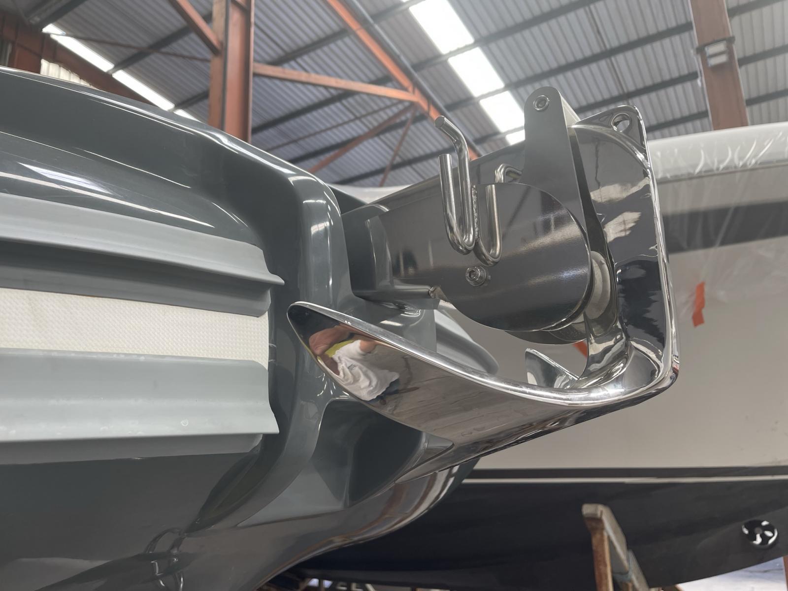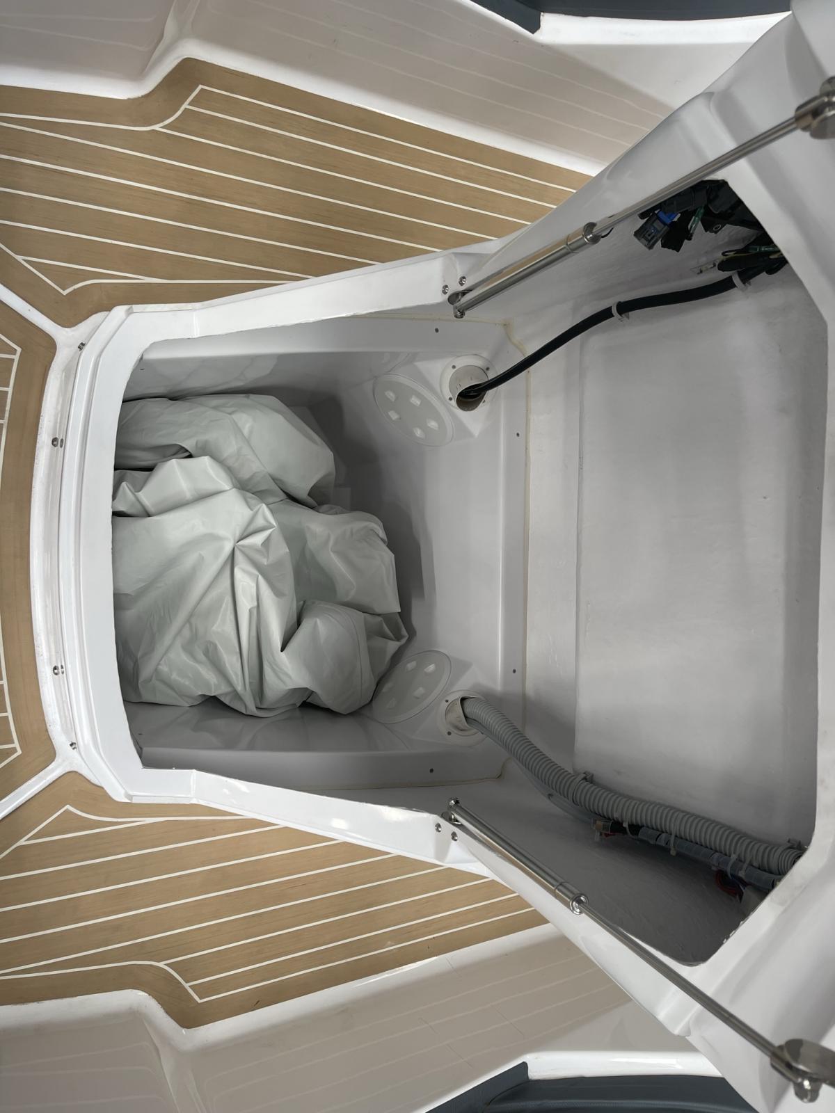 Plages arrières avec échelle de bain télescopique - Extension bain de soleil avant - Douchette sur plage de bain - 2 pompes de cale automatiques - Meuble de cuisine (plaque de cuisson et frigo en option) - Réservoir a carburant 300 litres et réservoir d'eau 70 litres - Console de pilotage avec rangement - Pare brise - Main courante inox -Coupe batterie - Feux de navigation - Tableau de bord - Corne de brume - 4 taquets d'amarrage Inox - Installation électrique à disjoncteurs magnétothermiques - Nombreux coffres de rangement - Support extincteur - Capot ouvrant(mouillage) a la proue - Sellerie complète cockpit - Gonfleur au pied - Manomètre de pression - Ventilation Blower compartiment réservoir a carburant - Direction hydraulique et volant de direction - Taquets d'amarrage X2 rétractables sur la plage arrière.