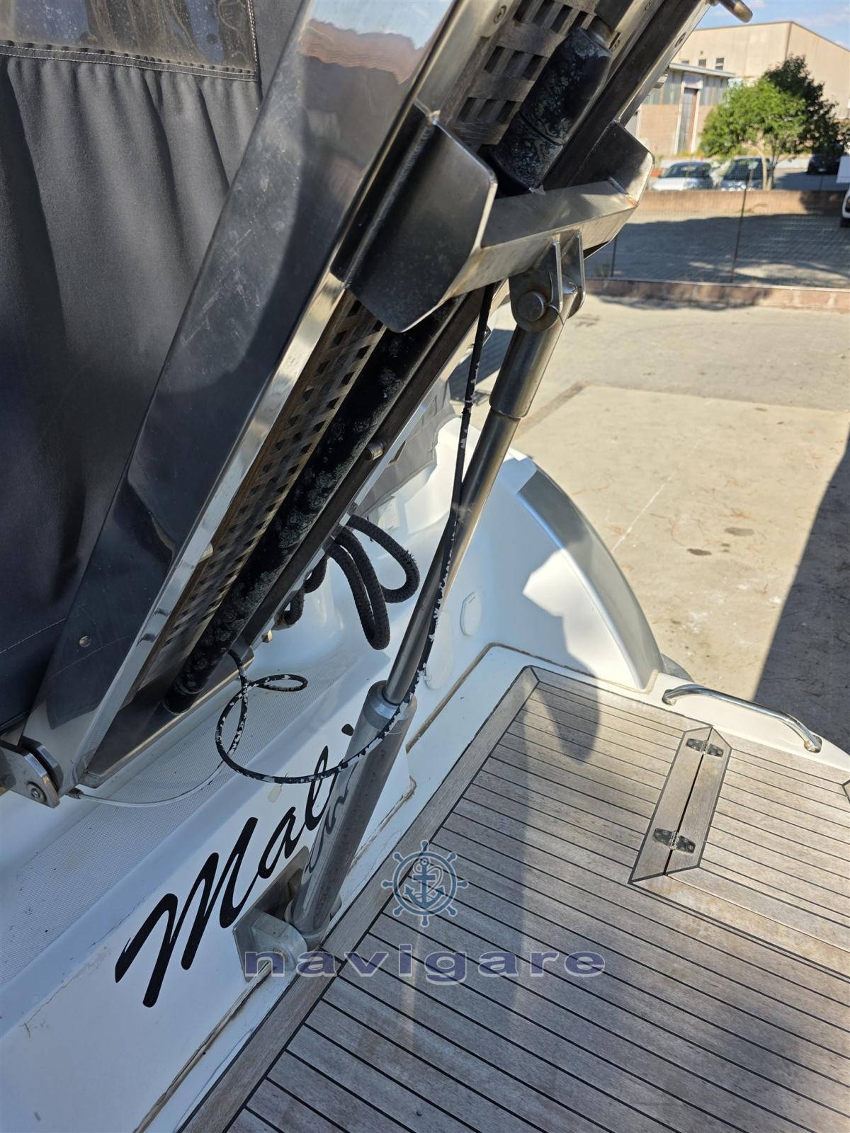 Alarme moteur, Alarme de pompe de cale, Ouverture du compartiment moteur électrique, Eau sous pression, Filères, Douche de cockpit, Flaps fixes, Éclairage de courtoisie, Passerelle, Pompe de cale automatique, Pont en teck (2023), Cockpit en teck (2023), Prise de quai, Guindeau électrique, Echelle de bain.