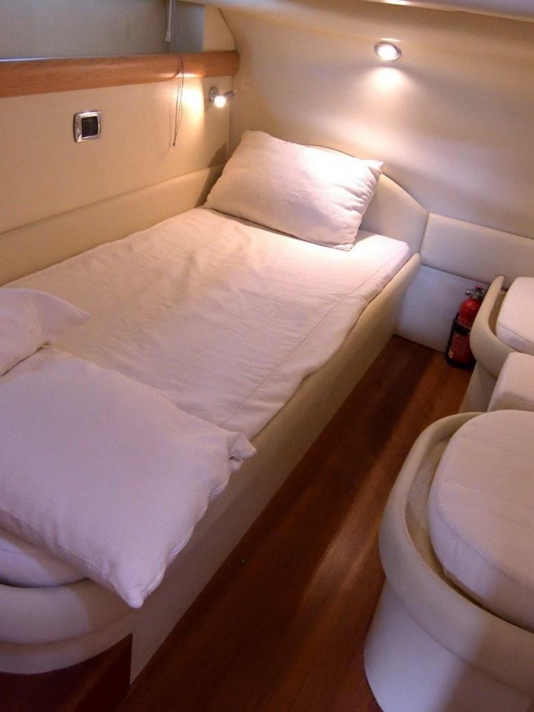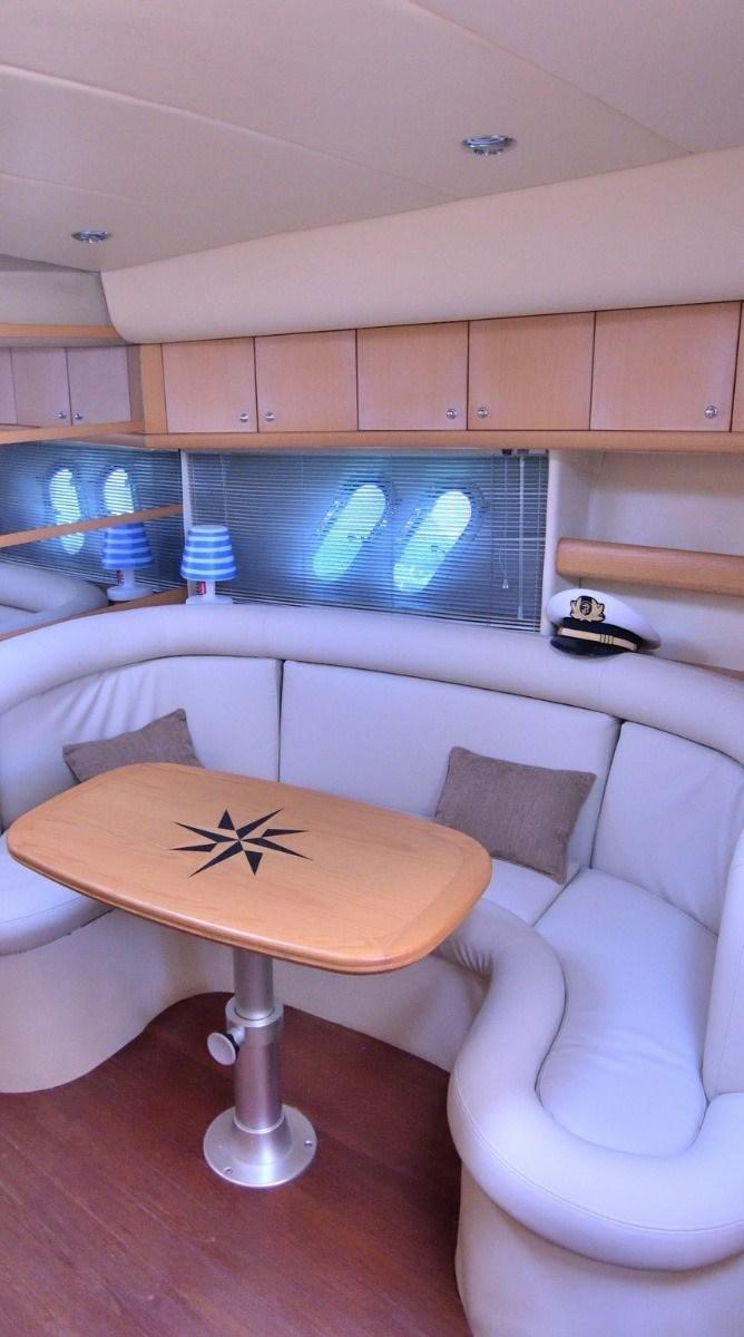 Alarme gaz, Alarme moteur, Alarme de pompe de cale, Eau sous pression, 5 Batteries, Filière, Douche de cockpit, Phare de poursuite, Flaps électriques, Extincteur(s) fixe(s), Éclairage de courtoisie, Moniteur de batterie, Défenses, Passerelle, Plateforme arrière, Pompe de Vidange du Réservoir d’Eaux Usées, Pompe de cale automatique, Pompe de cale manuelle, Porte latérale, Cockpit en teck, Prise de quai, Rollbar, Guindeau électrique, Echelle de bain, table de cockpit, Table pliante de salon, Corne.