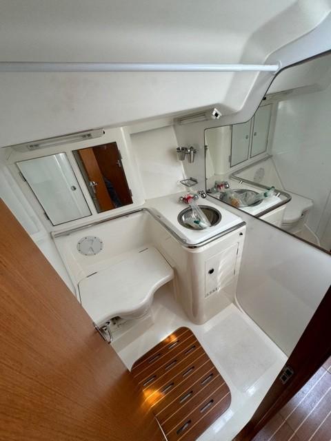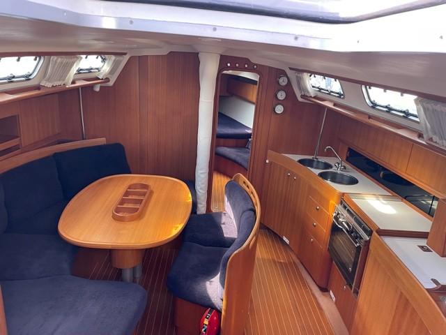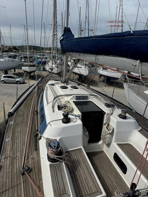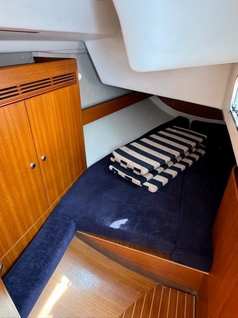 X 412 est un excellent croiseur-régatier aux performances légendaires, parfaitement adapté à la navigation rapide et à la vie détendue à bord. Finitions de hautes qualités avec des matériaux haut de gamme et un savoir faire artisanal. Version classique de 3 cabines doubles et 2 Salle d'eau, bateau très bien suivi par son 2ème propriétaire depuis son achat en 2014. Ce dernier a utilisé son bateau pour son usage privé pour les vacances. Visible à PORT MARITIMA – MARTIGUES. MOTEUR YANMAR 3JH3E(2002) – 40 cv diesel (3260h) entretenu régulièrement par son propriétaire. Dernière révision (vidange, remplacements des filtres, nettoyage échangeur, thermostat..) en 2024. Vitesse moyenne 6.5nds – conso moyenne 1.7l/h. Capacité gasoil : 125l en inox. Transmission par Sail drive(+ 7 ans)- Hélice 3 pales repliable. Aménagements : Version 3 Cabines doubles(2 arr/1 av) + carré transformable : 8 couchages. 2 Sdb avec WC marin, lavabo, réservoir eaux noires, douches. Coin cuisine comprenant évier double, réchaud/four, Frigo, eau chaude sous pression . Capacité eau total 340L. Voiles & accastillage : Grand voile DCX3 “INCIDENCES”(2017) 41m2. Génois sur enrouleur DCX “INCIDENCES”(2017) 53m2. SPI Asymétrique (100m2) TBE avec chaussette. SPI Symétrique(115m2). MAT + BÔME SPARCRAFT. Gréement ROD, Hale-bas rigide,Pataras hydraulique,enrouleur de génois Profurl. Gréement courant en Dynema double gaine Gleistein Mega twin. Winches Harken x 2 sur le roof pour les drisses, 2 Harken 56.2 pour le Génois (récent), 2 Harken GV, Tangon Spi+ écoutes, Barber. LAZY BAG changé double épaisseur blanc , Capote de roof(cristaux changés). Divers : Traceur Raymarine E80 avec affichage AIS – Sondeur DSM300 – VHF ICOM ASN avec GPS intégré – AIS émetteur récepteur Raymarine. Multi graphic ST60+ 1 Autopilot dysplay(sur le roof) – 1ST60 Tridata +1 Autopilot dysplay (à la barre). Pilote auto ST 6001 AVEC GYROCOMPAS. Autoradio CD Kenwood avec HP INT/EXT. Équipements spécifiques extérieur: Portique profilé(démontable) avec bossoirs pour soulever l’annexe, Panneaux solaires 200w, Taud soleil, Capote de roof, Barre à roue avec habillage cuir + housse bleu marine, Table de cockpit. Équipements intérieur : Coussins supplémentaires pour transformer le carré en lit, chauffe eau 25l, prises 12v dans les 3 cabines, stores pour hublots des cabines , moustiquaires. 3 batteries x 105A(service ) + 1x70A(moteur) , 220v, chargeur automatique, Feux int/ext LED. Jupe avec échelle bain, pompe de cale (électrique + manuelle). Dessalinisateur SELMA 120. Guindeau électrique Lofrans Cayman 88 – Mouillage principal Ancre 20 kgs + 55m de chaine avec repères + câblot + 2ème mouillage léger. Travaux effectués : Changement des 2 winchs/génois HARKEN 56ST 2 vitesses plus puissants. Pose 1 portique sur mesure démontable avec bossoirs annexe et panneaux solaires. Installation commande du pilote sur roof, installation de la télécommande du pilote,installation d’un gyro compas, installation d’un multidysplay sur roof. Révision navtec pataras, installation de feux de navigation et de mouillage en tête de mât. Porte filtre à charbon eau douce, occultant 3 cabines avec moustiquaires. Nombre unités: 252 – N ° 233. Longueur : 12.50m. Largeur: 3.90m. Tirant d’eau : 2.10m. Poids : 7400kgs – Lest : 3500kgs. Hauteur sous barrot : 1.90m. Pavillon : FR. Droit annuel de navigation : 316€/an. 2ème main depuis 2014 à usage privé.