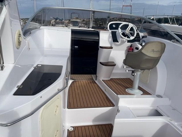 Superbe SPORT CRUISER 24, un bateau alliant performance, confort et élégance. Il est conçu pour vous offrir des sorties en mer inoubliable. Propulsé par un moteur SUZUKI DF250APX, il peut accueillir jusqu’à 8 Personnes à bord. Millésime 2021 avec 163h de navigation. Idéal pour les passionnés de navigation à la recherche d’un bateau fiable et bien équipé. Tarif en pack prêt à naviguer clef en main – Garantie 2 ans. MOTEUR SUZUKI DF 250APX(163h) essence. Système de direction hydraulique. Réservoir carburant 200l Equipements Inclus dans le Pack Coque en V polyester Cabine double avec sellerie + hublot Compartiments Douche/WC électrique avec réservoir eaux noires Coffres de rangement Bain de soleil AV/AR Carré arrière transformable Méridienne Siège pilote Type Bolster réglable Table de cockpit AR en teck Cuisinière & Evier Table Cabine Douchette de cockpit – réservoir eau douce 90l Plateforme de bain avec échelle Feux navigation, interrupteurs étanches avec fusibles, Lumières de courtoisie Bleu Roll bar Polyester avec Spot. Taud camping, Revêtement de sol SEA DECK Chargeur de quai 220v, Chargeur batteries, double prises USB et 12v. Combiné Sondeur GPS HUMMIMBIRD HELIX 7 Réfrigérateur Dometic 50L Guindeau électrique, mouillage Pack audio 4 HP Pack armement de sécurité pour 8 Personnes + Pack amarre, pare battage.