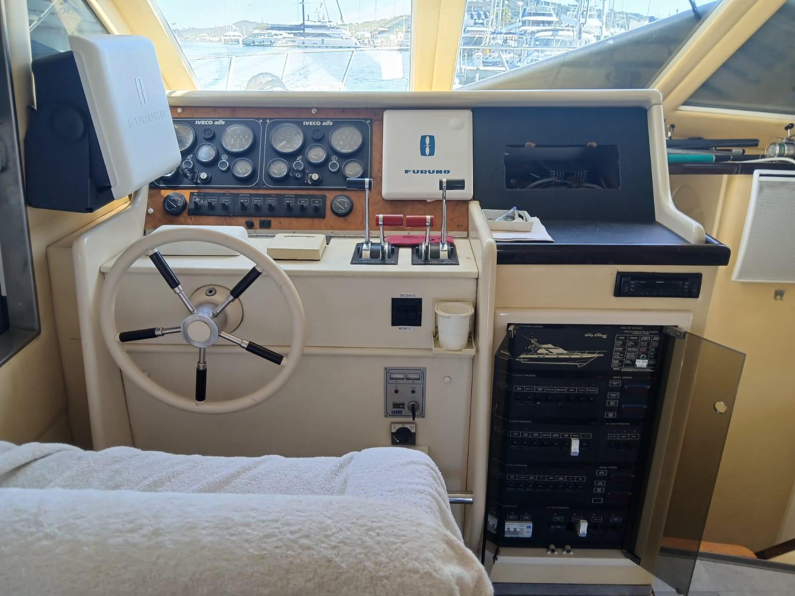 GUY COUACH 1200 est un modèle robuste et très marin, idéal pour naviguer en Méditerranée, combinant le confort intérieur, une bonne motorisation récente, un Fly bridge spacieux, de nombreux rangements pour les croisières et les sorties en mer. Entièrement équipé et entretenu, ce yacht dispose d'un aménagement spacieux et convivial et est homologué pour 12 personnes. Signature du chantier COUACH, une référence dans le NAUTISME. Visite sur rendez-vous au Port de Cogolin.