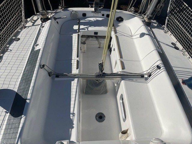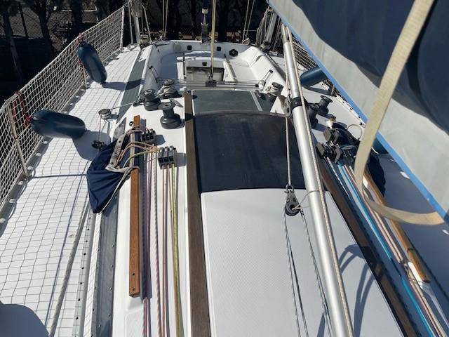 SELECTION 37 est une construction des chantiers JEANNEAU sur plans Joubert/Nivelt, inspiré de carène ONE TONNER, très rapide sur l’eau et très exigeant. Sur le pont on peut remarquer la double descente qui permet de profiter d’une plus grande surface de travail en course. L’accastillage est très complet, le cockpit est bien dessiné avec ses larges hiloires inclinées. A l’intérieur VERSION « ROYALE TFV » avec ses 2 cabines (7 couchages), salle d’eau, cuisine, table à cartes.. Voilier bien entretenu, pont et cockpit repeint en 2024. A visiter à PORT MARITIMA – MARTIGUES.