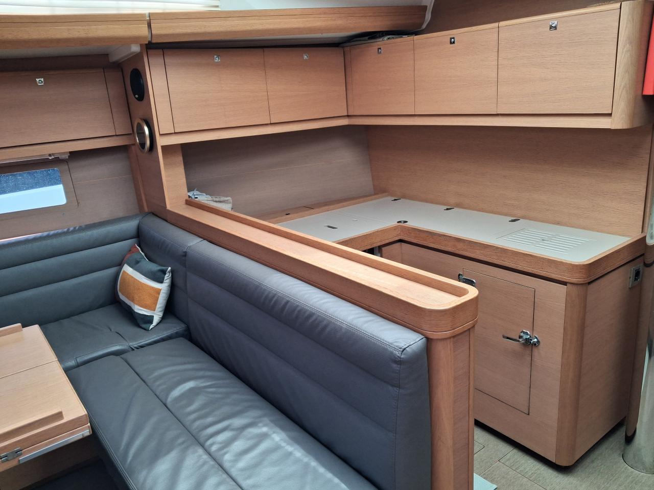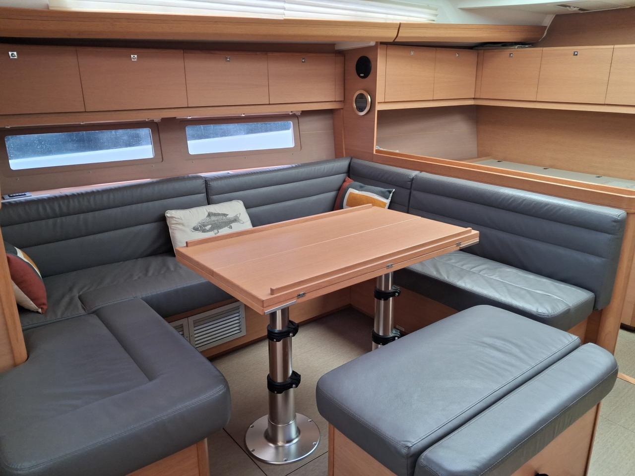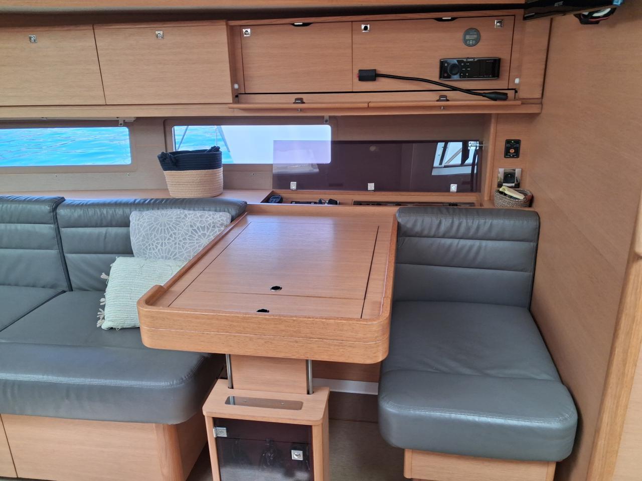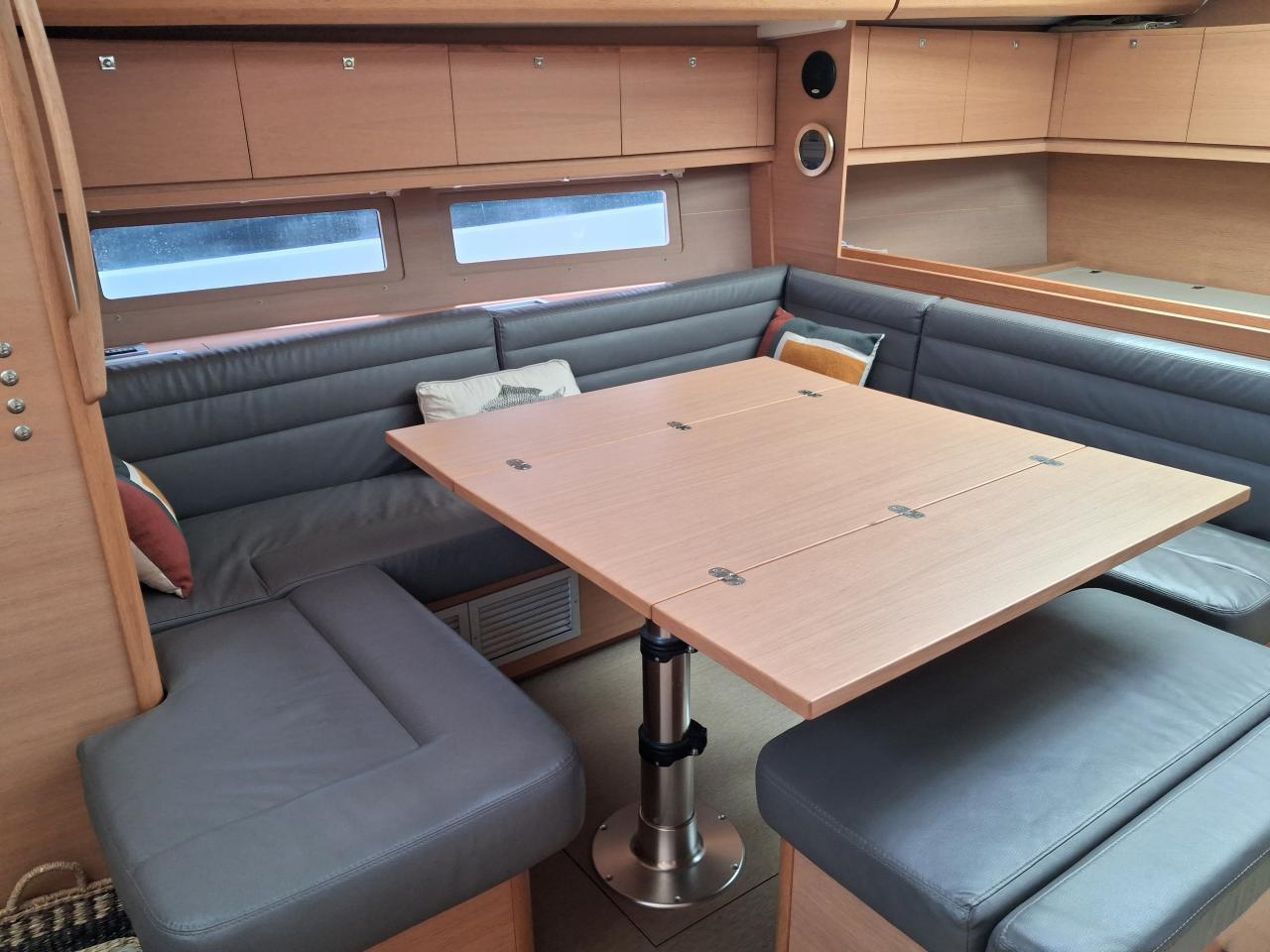 Table du carré trois position et banquette à bâbord