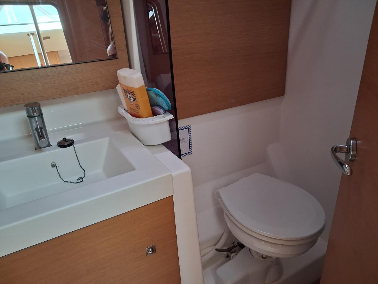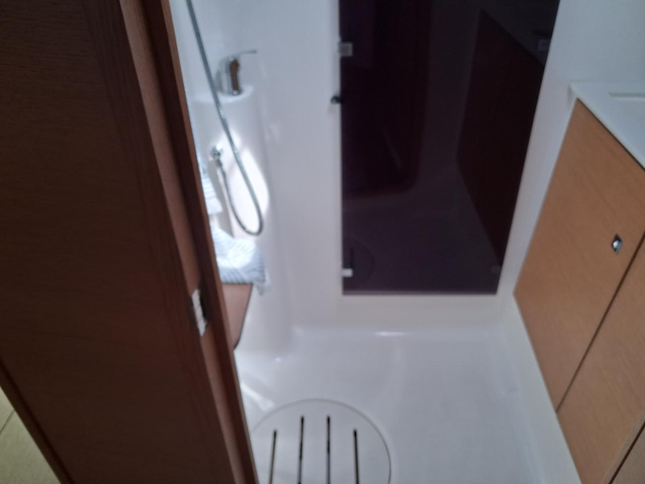 Deux salles d’eau à l’arrière avec douche, lavabo et WC, dont une toilette grand modèle électrique à bâbord