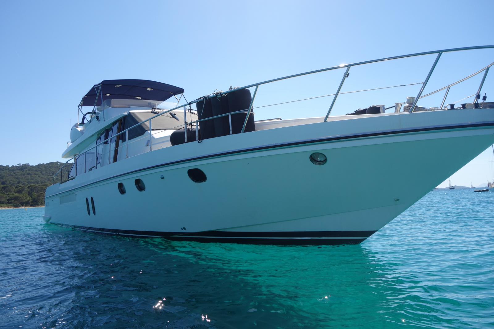 L'équipage CAP MED YACHT Consulting à le plaisir de vous présenter ce superbe Guy Couach 195 FLY de 2005 en très bon état équipé de MAN 2 x 1050 CV avec 1300 heures.