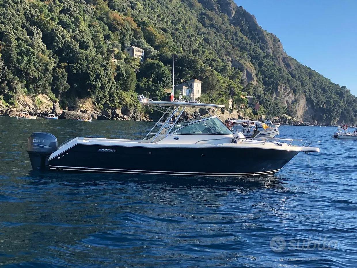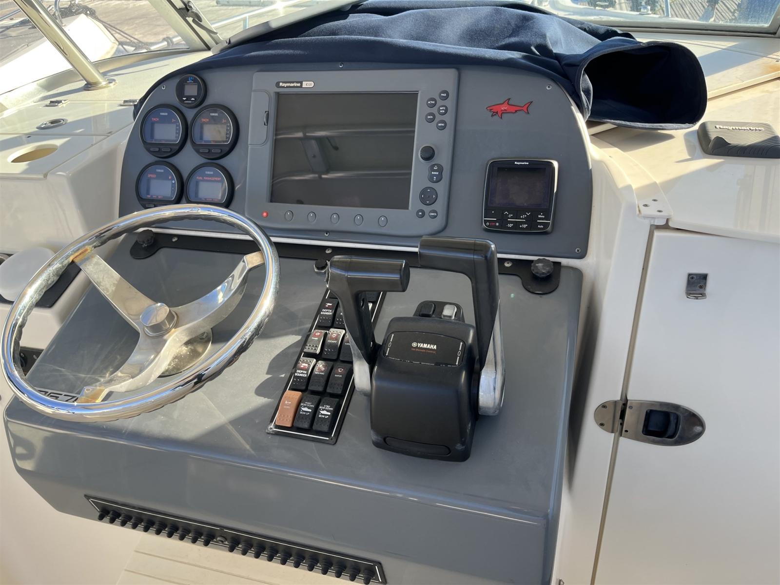 Pursuit 2670 de 2005 avec deux Yamaha de 225 ch avec cabine avec lit double et toilettes escamotables. Porte-canne . Vivier et poissons. 4 attaches de bobine. GPS Raymarine c120, pilote raymarine, Vhf . TTop . Nouveaux coussins extérieurs encore à assembler. Usine de pêche électrique Minn Kota Nouveau
