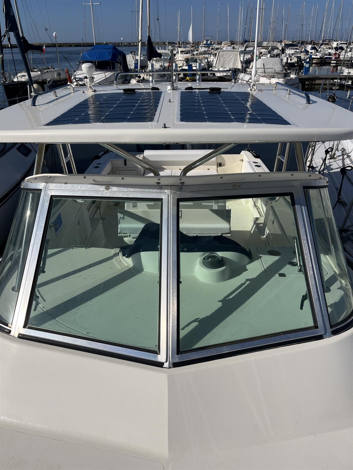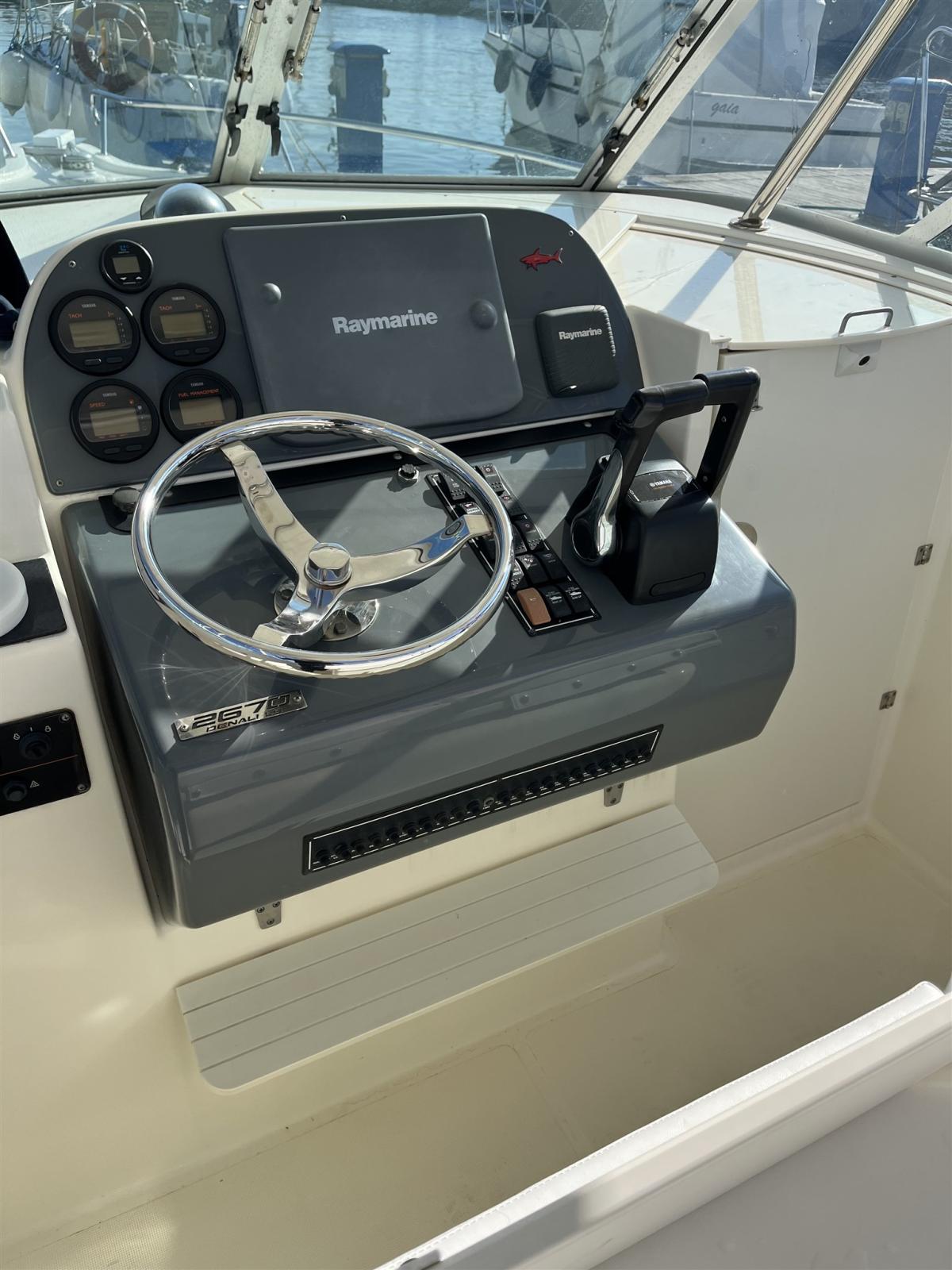 Alarme moteur, Eau sous pression, Câble d’alimentation à quai, Douche de cockpit, Panneau solaire, Pompe de cale manuelle, Prise de quai, Guindeau électrique, Echelle de bain, T-Top.