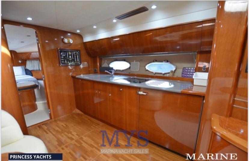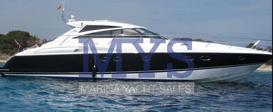 Princess V58 (2004) – Yacht de sport de référence, puissant et fiable, avec des moteurs MAN de 1100 ch, quelques heures d’utilisation et un tracé idéal pour une croisière rapide dans un confort total.
