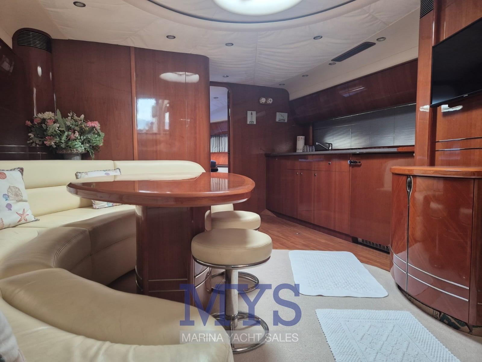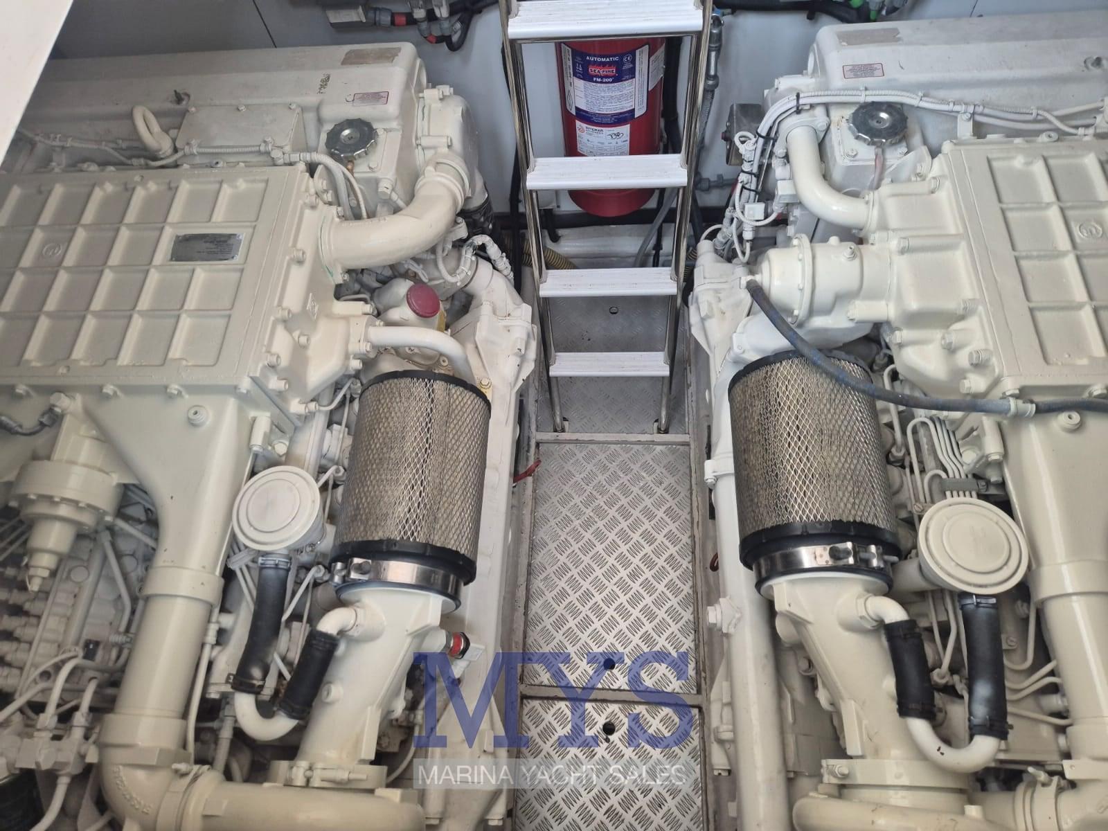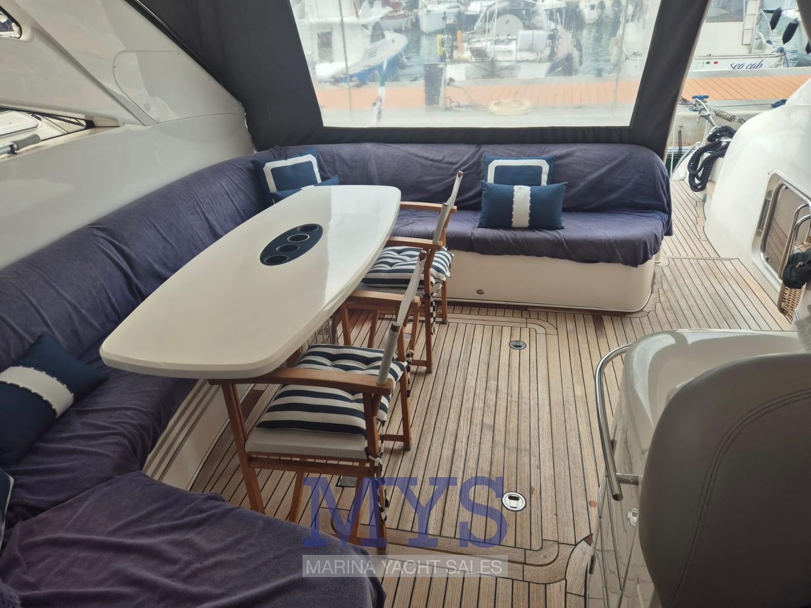 Alarme gaz, Alarme moteur, Alarme de pompe de cale, Ancre (con catena), Aspiration des Eaux Usées depuis le Pont, Eau sous pression, Câble d’alimentation à quai, Douche de cockpit, Phare de poursuite, Flaps hydrauliques, Garage à annexe, Hard top, Indicateurs de flaps, Lavabo dans le cockpit, Éclairage de courtoisie, Spots sous-marins, Défenses, Passerelle, Plateforme arrière, Pompe de Vidange du Réservoir d’Eaux Usées, Pompe de cale automatique, Pompe de cale manuelle, Cockpit en teck, Prise de quai, Connexion eau sous pression à quai, Guindeau électrique, Echelle de bain, table de cockpit, Corne, 2 Winch électrique arrière, Winch électrique avant.