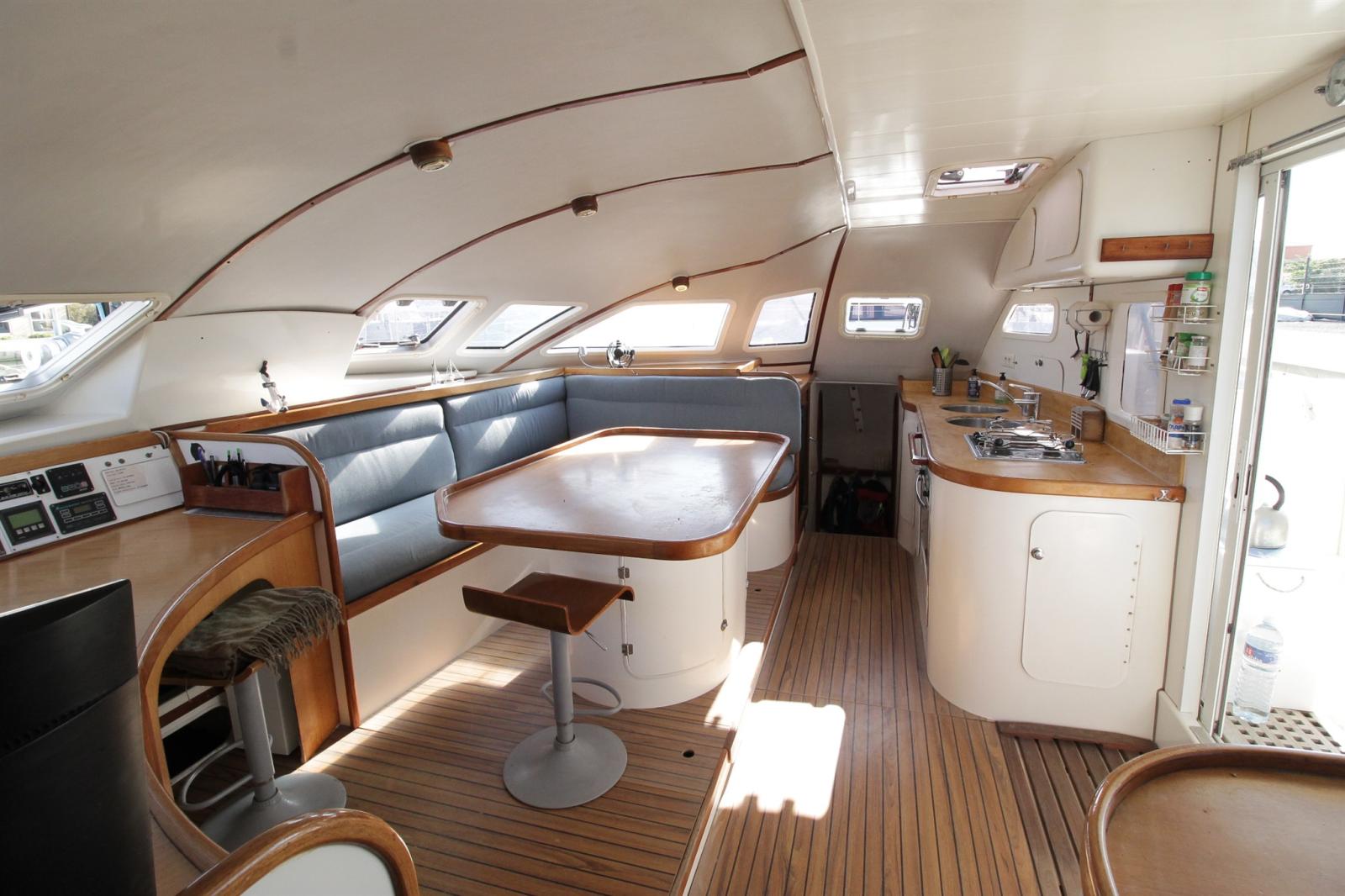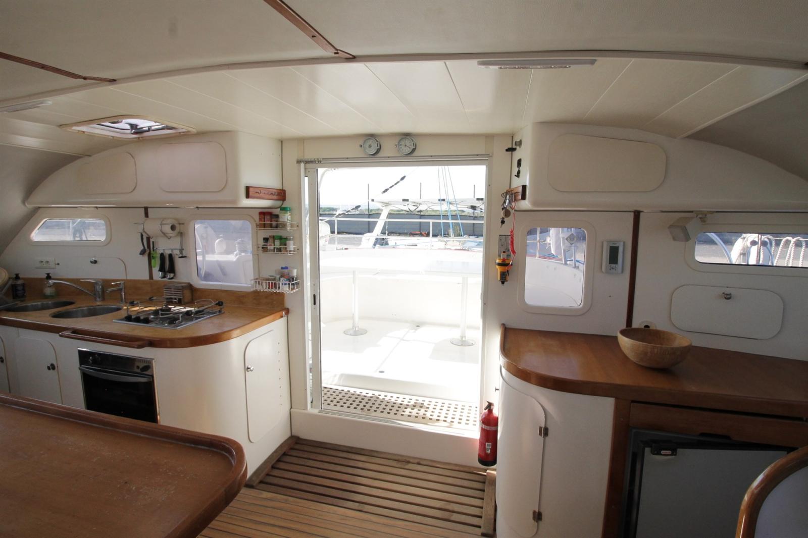 La société PHILIPPE PLAISANCE 100% voiliers d’occasions vous propose ce magnifique OUTREMER 50. Un catamaran hauturier réputé pour ses performances, sa solidité et son confort en navigation. cette unité est parfaitement préparée pour naviguer loin, en toute autonomie, et se présente en excellent état général. Plus de 80 000 € d’investissements ont été réalisés depuis 2018 : moteurs in-bord remplacés, haubanage neuf (2022), jeu de voiles en Hydranet avec Code D et spi, winch électrique, 1 000 W de panneaux solaires, 400 Ah de batteries lithium, deux pilotes automatiques hydrauliques, radar, deux convertisseurs (4 000 W en 220 V), dessalinisateur, deux balises (EPIRB et personnelle), trois VHF et trois mouillages, etc…