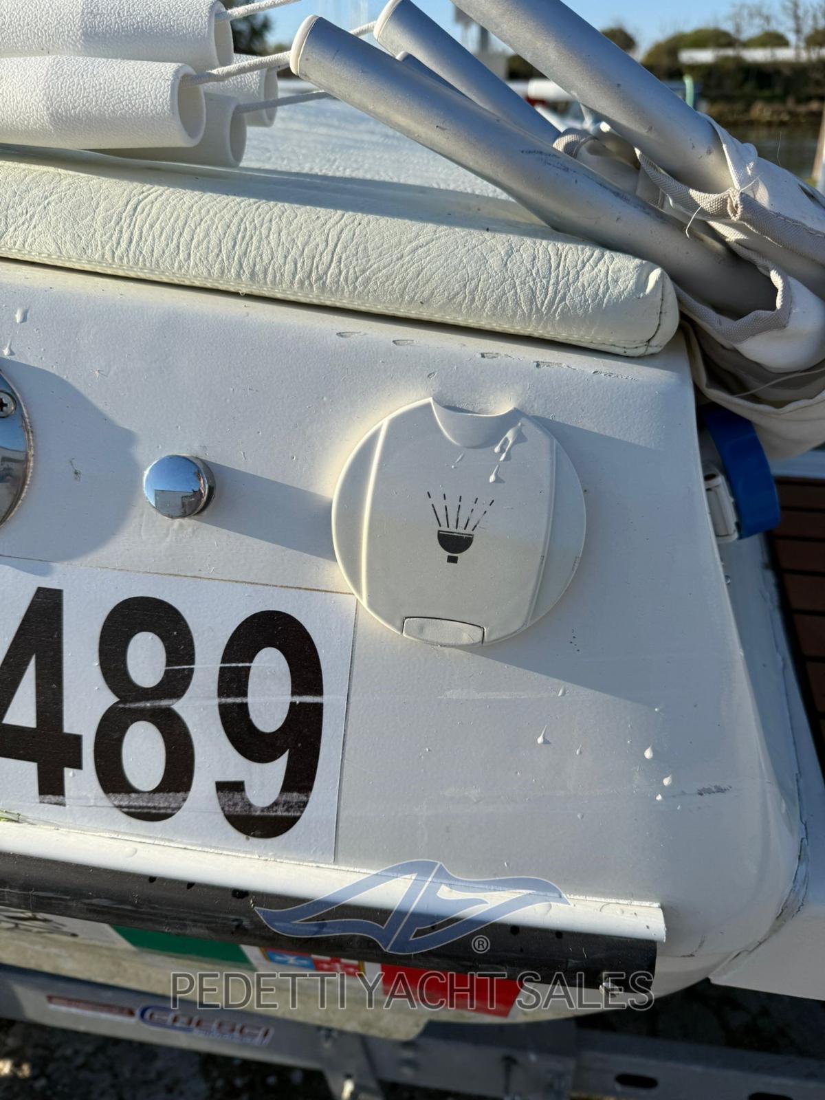 Eau sous pression, Chargeur de batterie (nuovo 2023), Câble d’alimentation à quai, Douche de cockpit, Éclairage de courtoisie, Pompe de cale automatique, Prise de quai, Echelle de bain, Corne.
