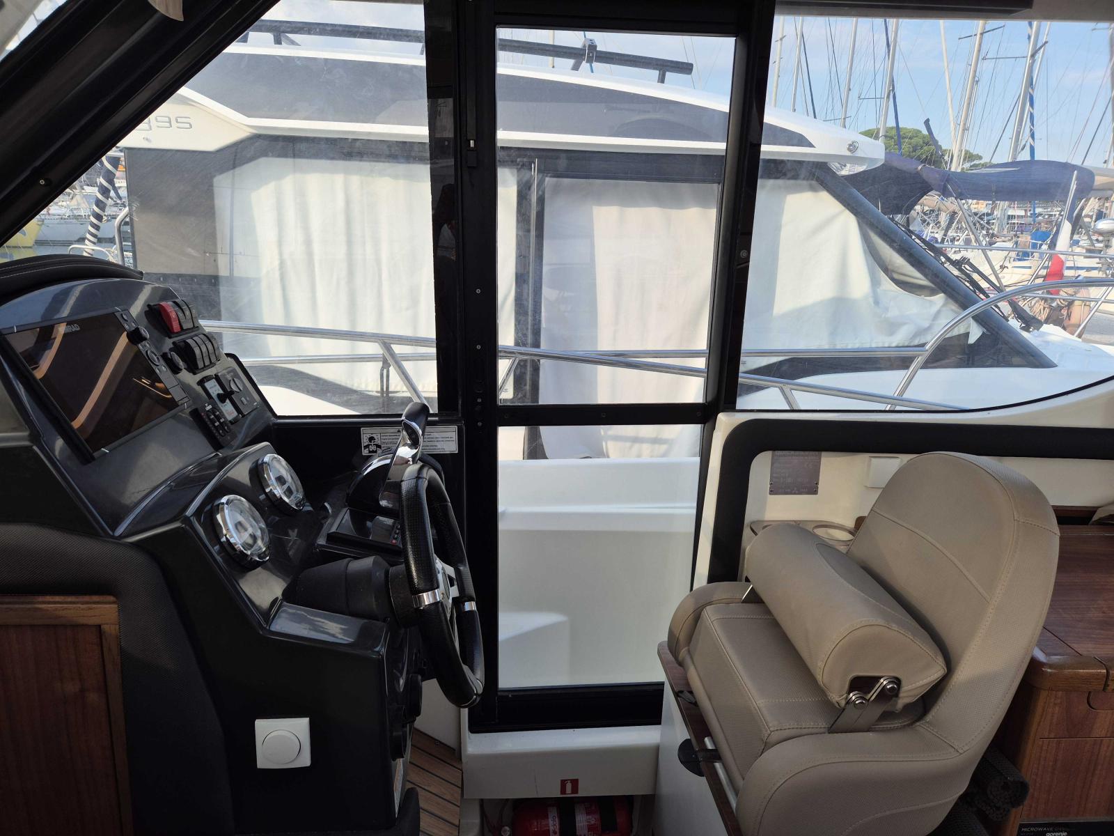 Des équipements haut de gamme,Propulseur d’étrave pour un contrôle optimal au port,Flaps électriques pour une navigation stable,GPS Simrad NSS evo3 9" pour une navigation précise,Système audio Fusion avec haut-parleurs pour une ambiance musicale à bord,