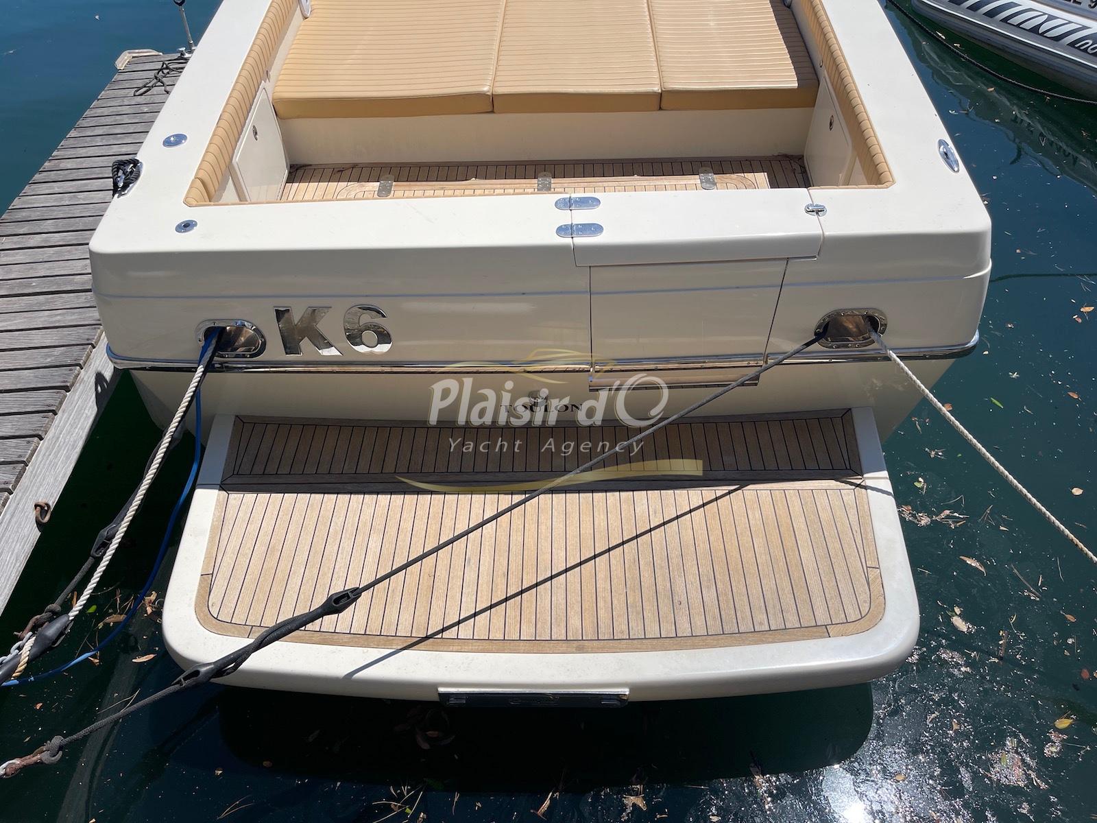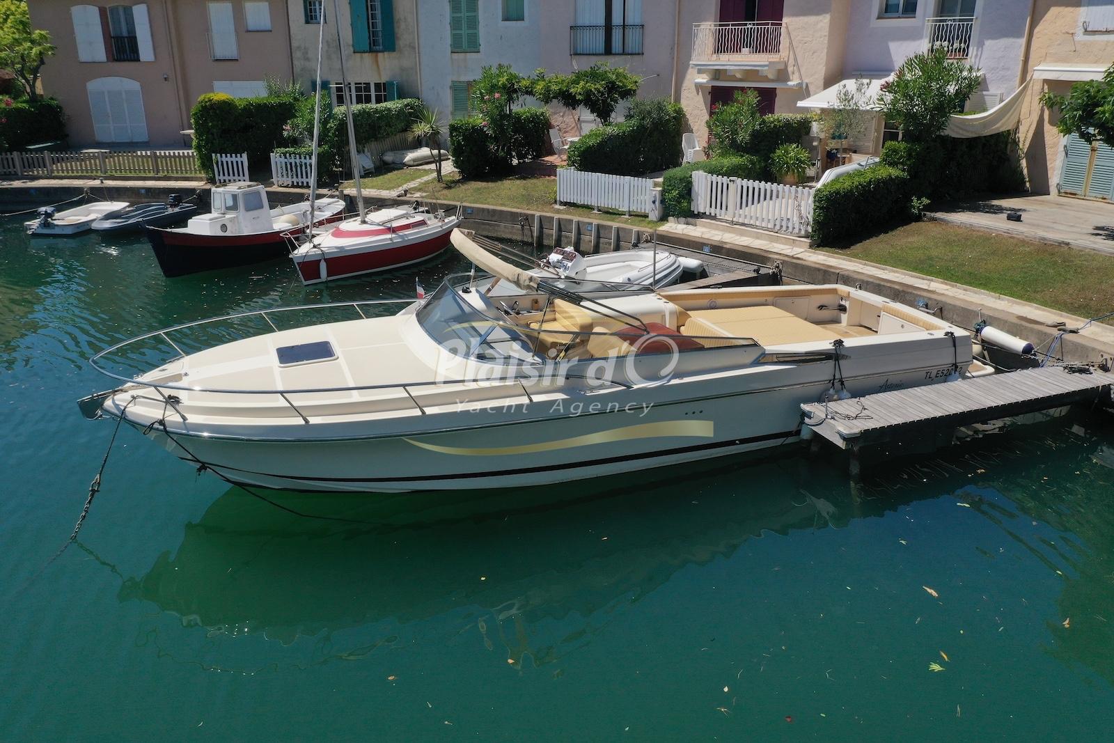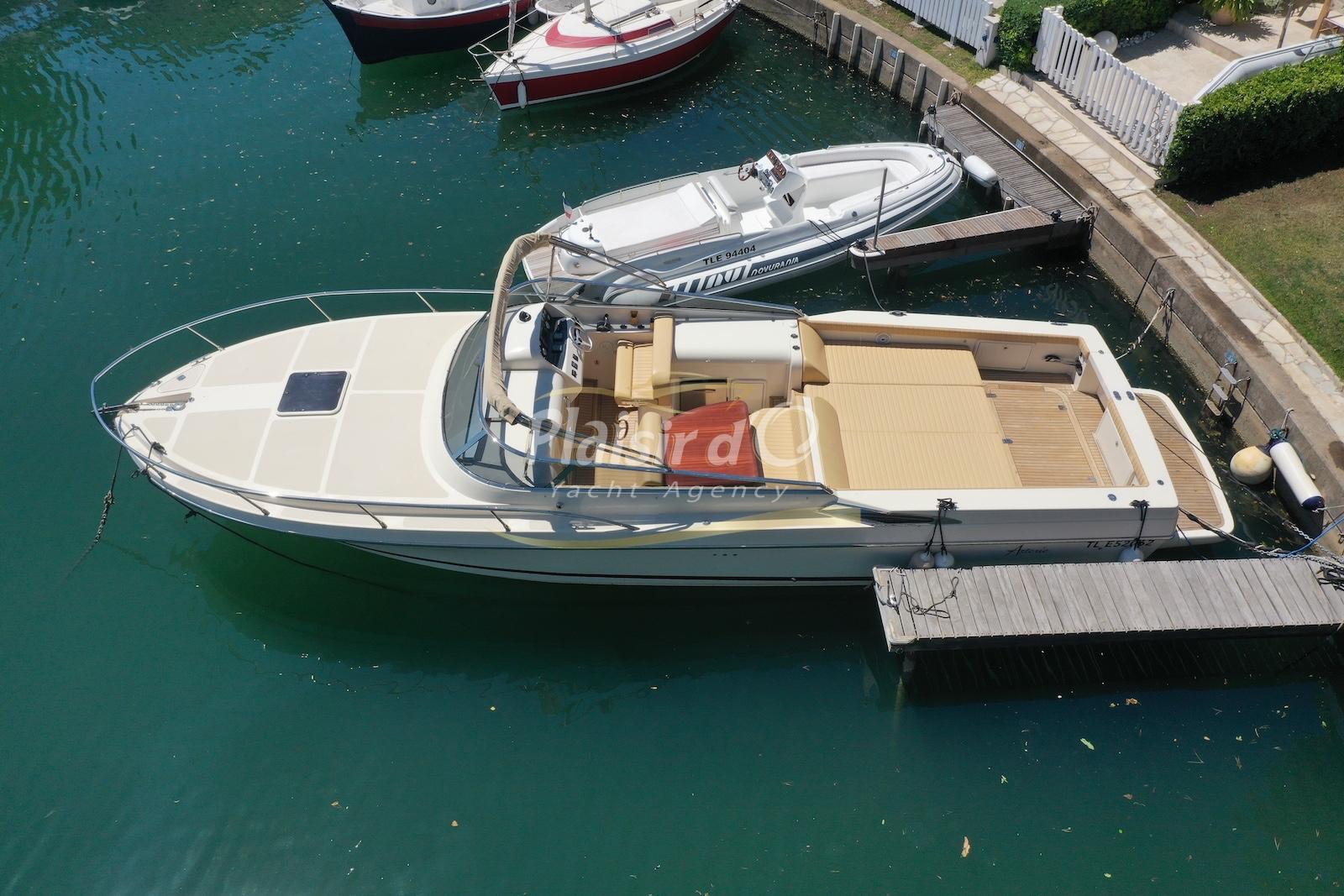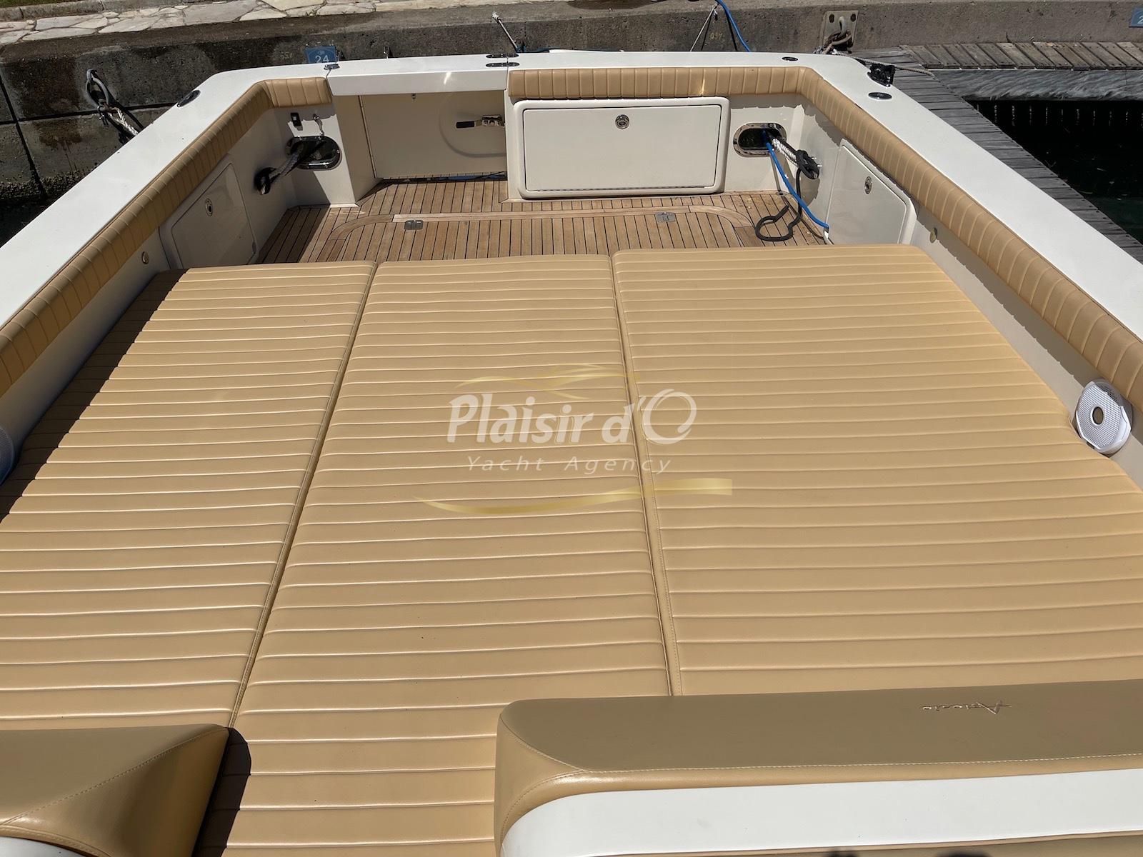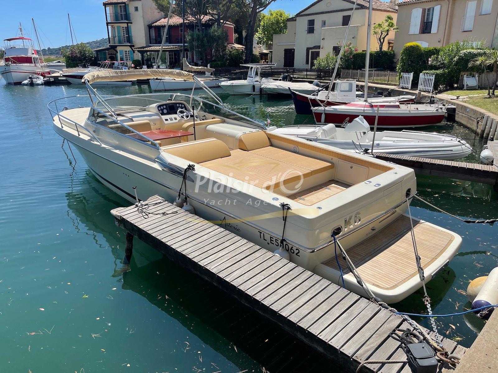 La sellerie intérieur et extérieur sont dans un état proche du neuf, la table, le poste de pilotage et le cockpit sont protégés par un taud. Le bateau est stocké à terre 9 mois dans l’année.