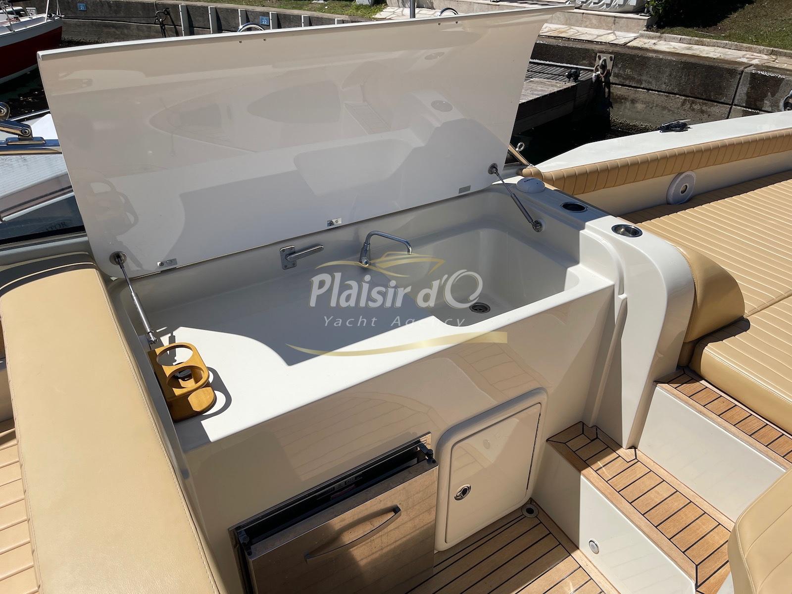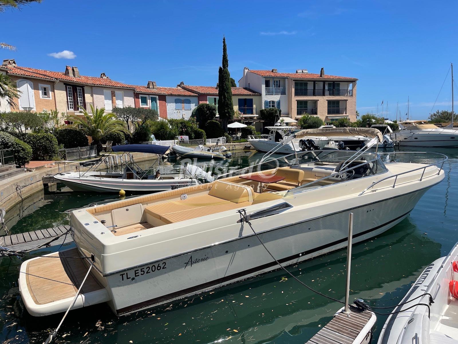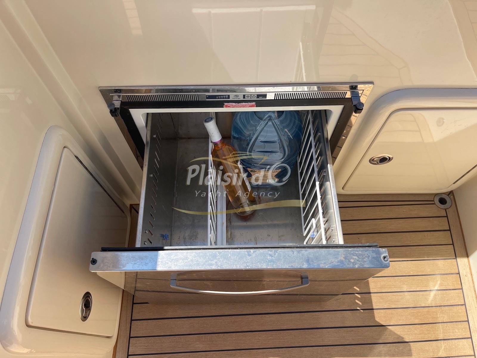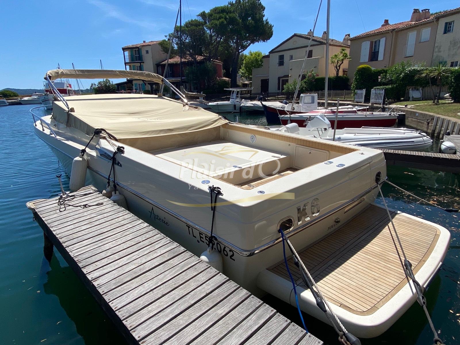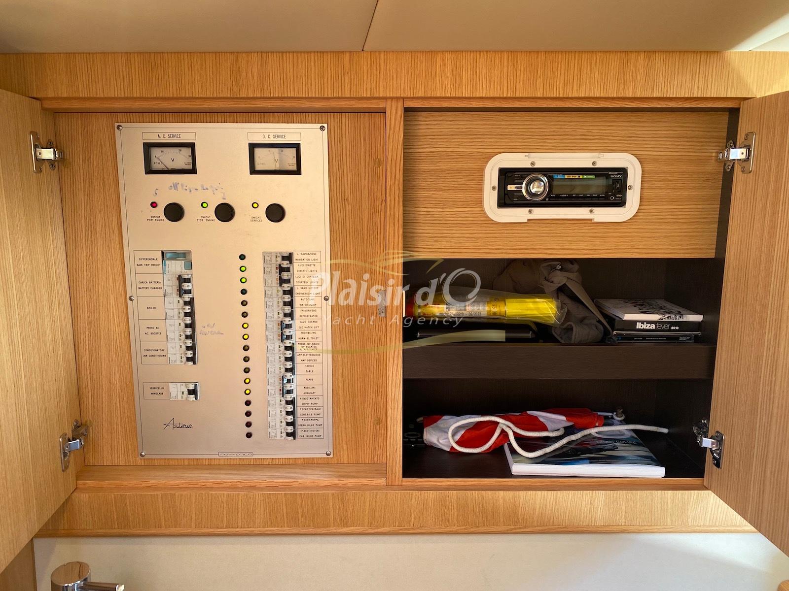 La sellerie intérieur et extérieur sont dans un état proche du neuf, la table, le poste de pilotage et le cockpit sont protégés par un taud. Le bateau est stocké à terre 9 mois dans l’année.