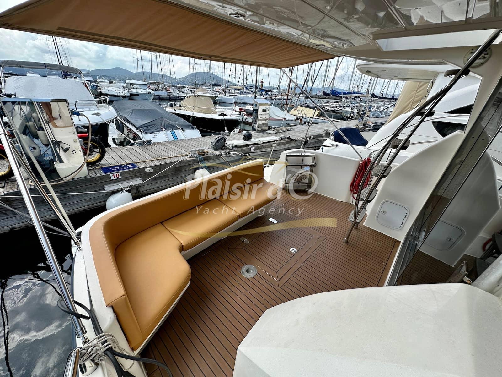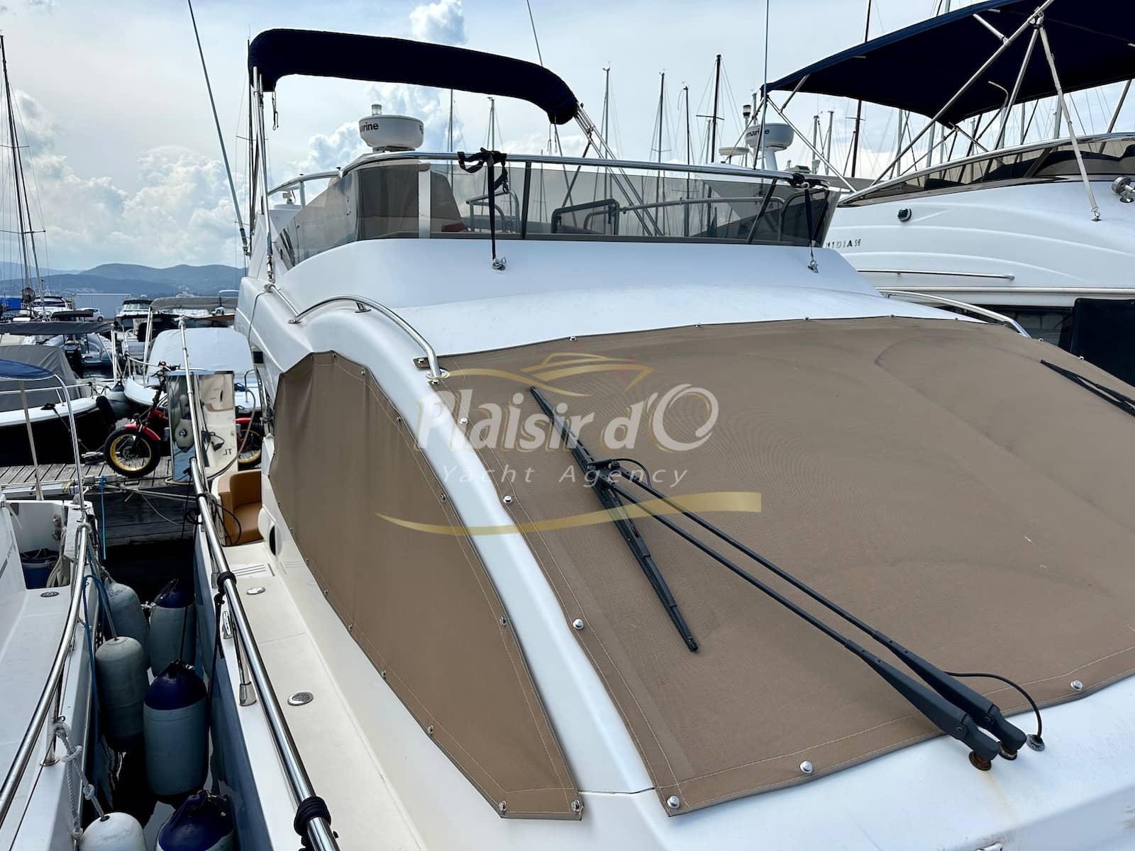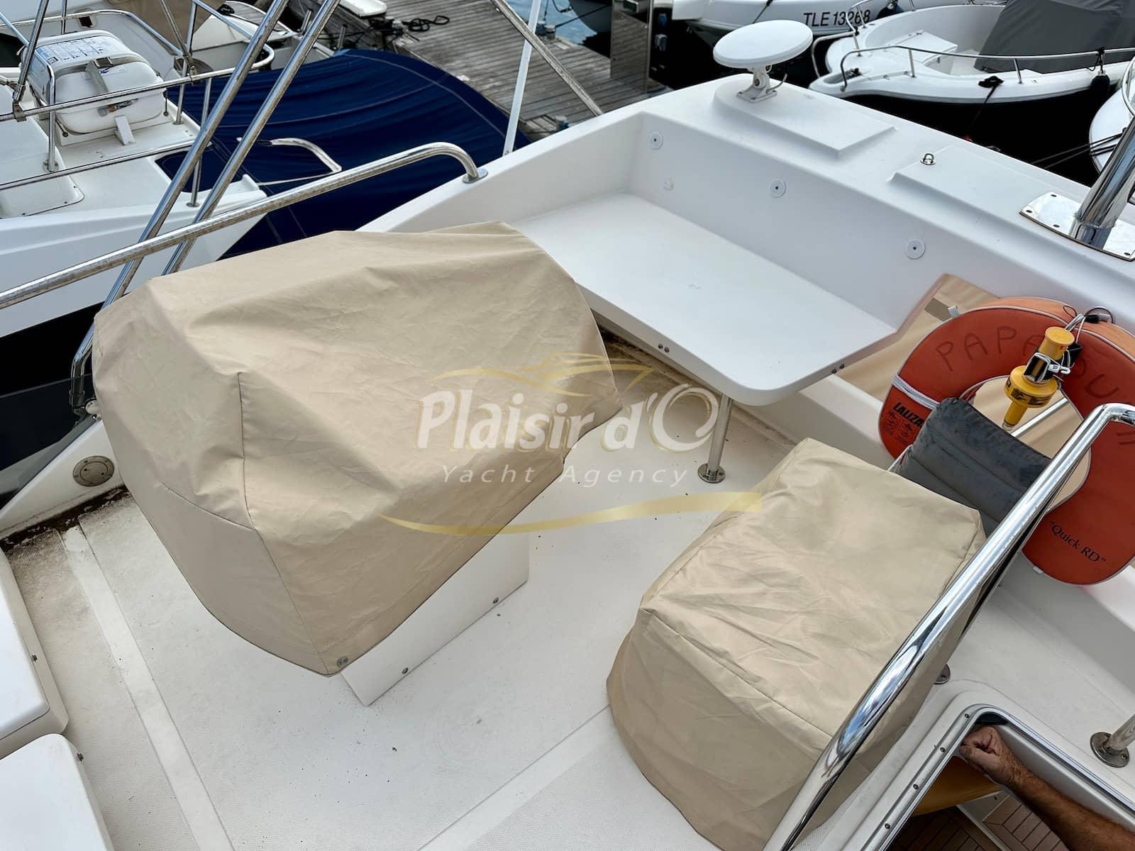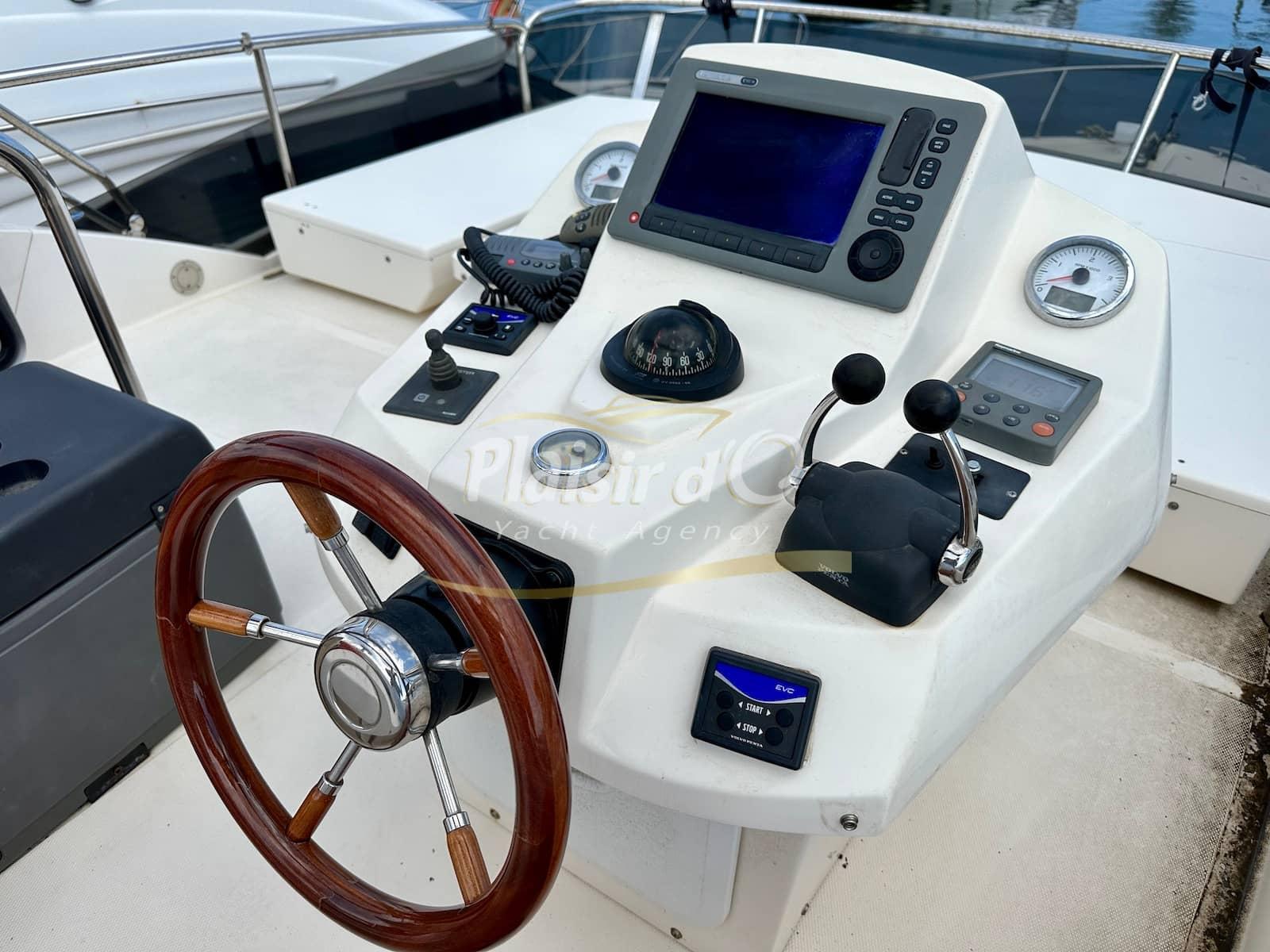 Nombreuses options : sellerie intérieur et extérieur neuves, générateur, propulseur d’étrave, pilote automatique, GPS/traceur, radar, VHF, hifi, 2 TV, revêtement de sol flexiteak, climatisation réversible, taud de soleil, bimini, taud d’hiver …