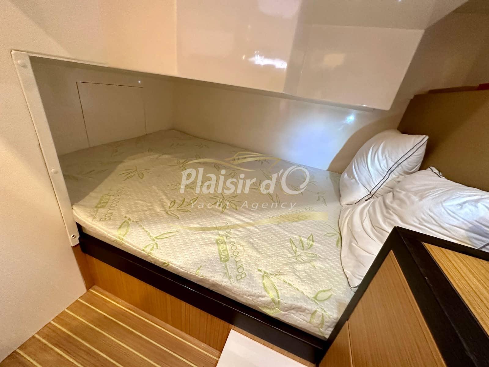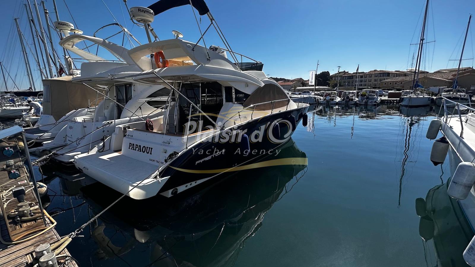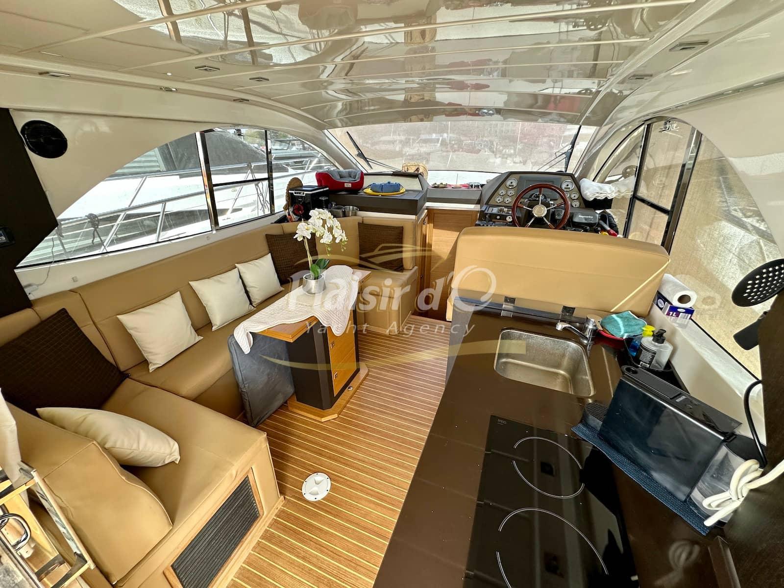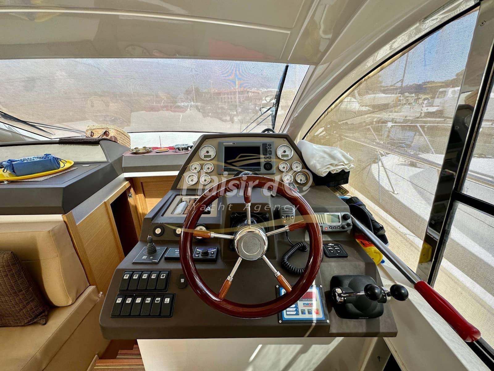Nombreuses options : sellerie intérieur et extérieur neuves, générateur, propulseur d’étrave, pilote automatique, GPS/traceur, radar, VHF, hifi, 2 TV, revêtement de sol flexiteak, climatisation réversible, taud de soleil, bimini, taud d’hiver …
