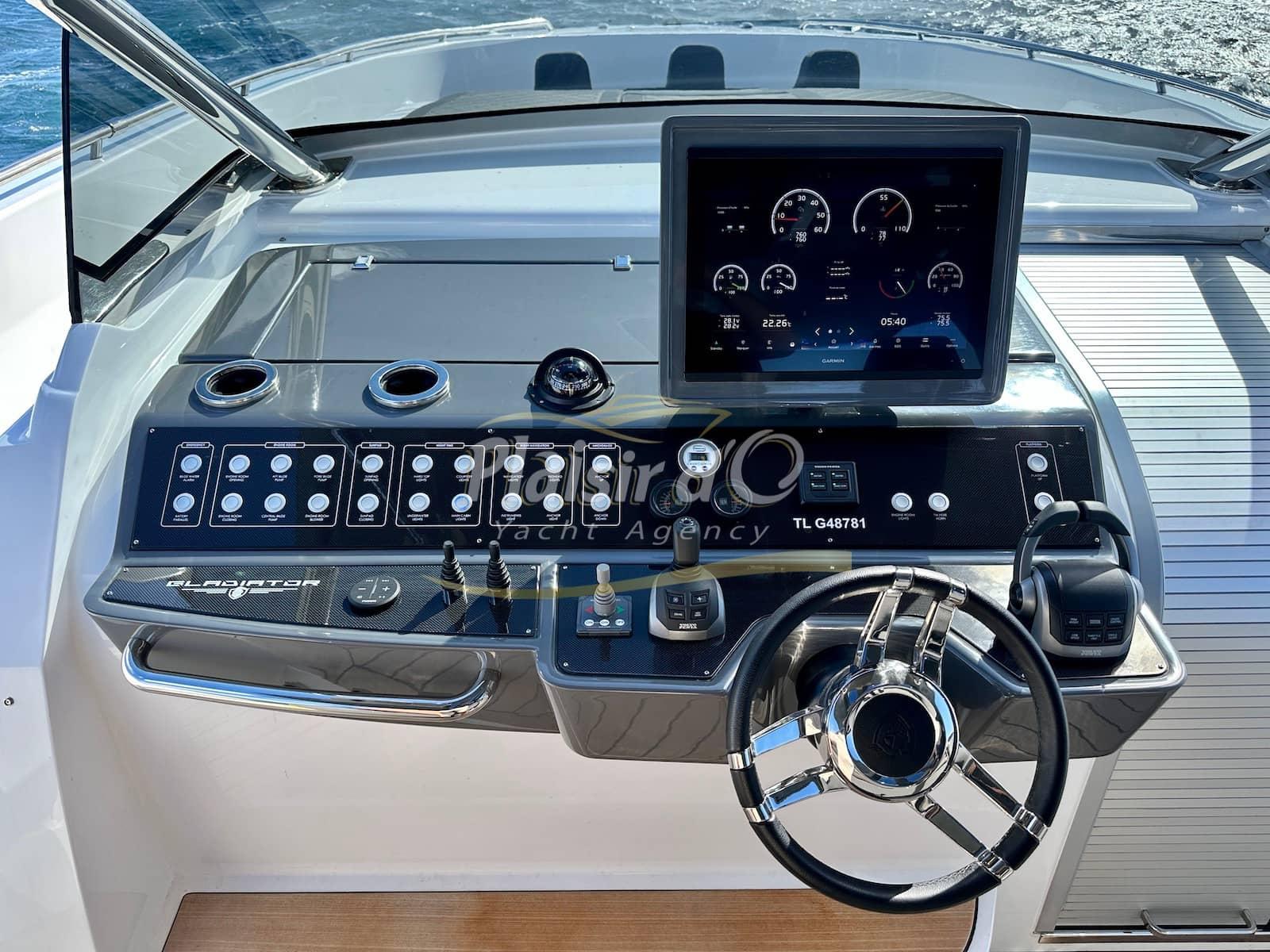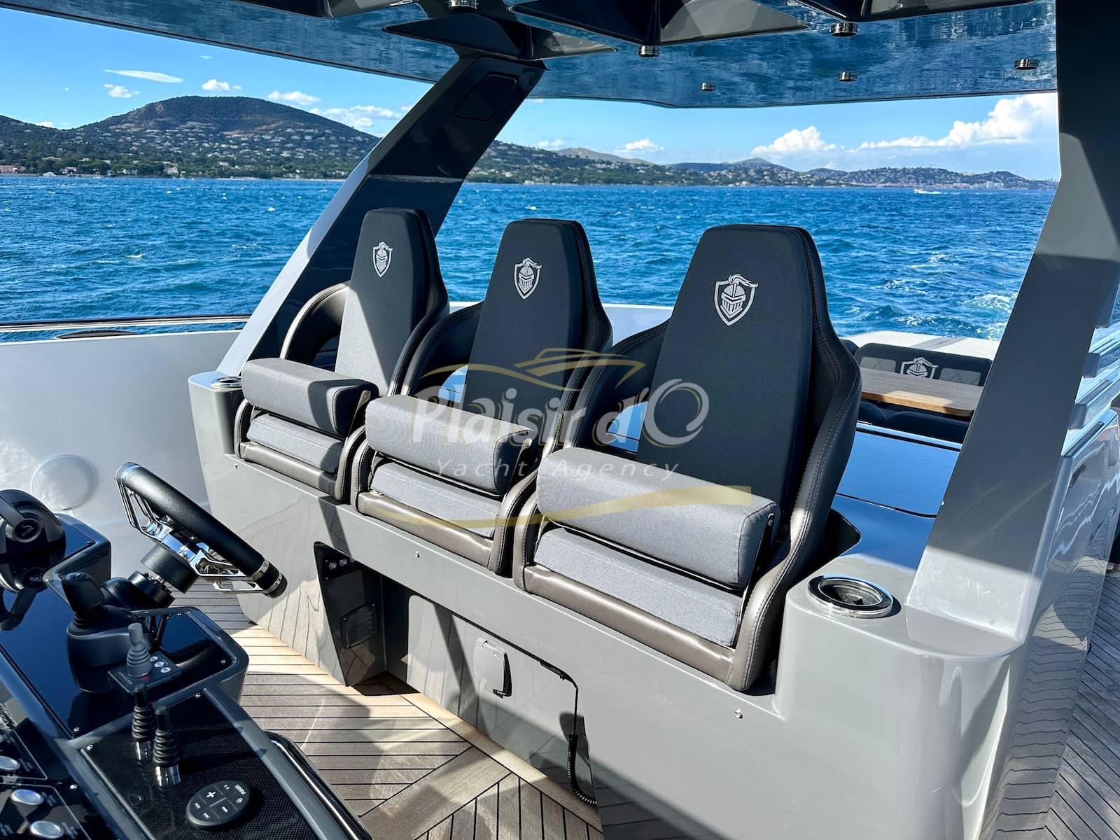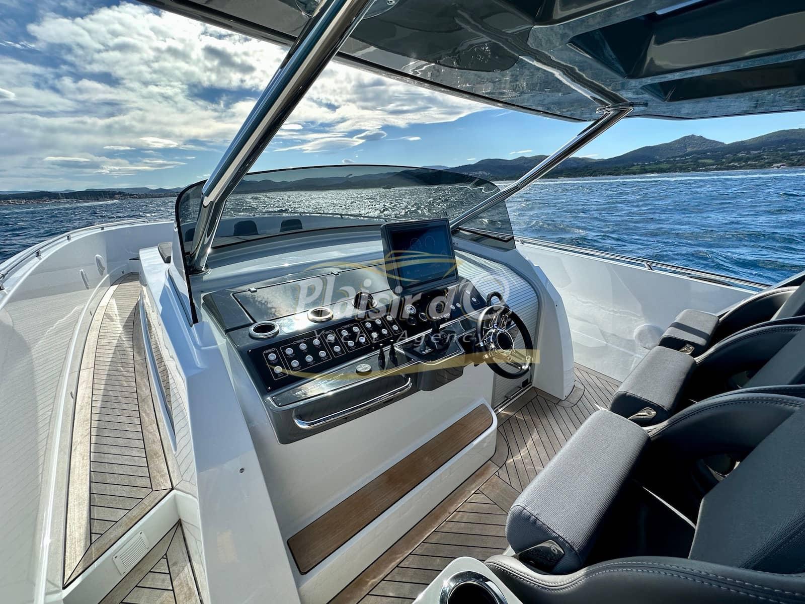 Full options : cockpit teck véritable, table de cockpit teck, plateforme hydraulique immangeable, climatisation, générateur, inverter, pilote automatique, GPS/sondeur Garmin, système hifi Fusion Upgrad avec 2 amplificateurs et 8 hps + sub, compteur de chaine, guindeau électrique, 3 réfrigérateurs, ice Maker, micro onde, grill, extensions de T-TOP avec mats en carbone …