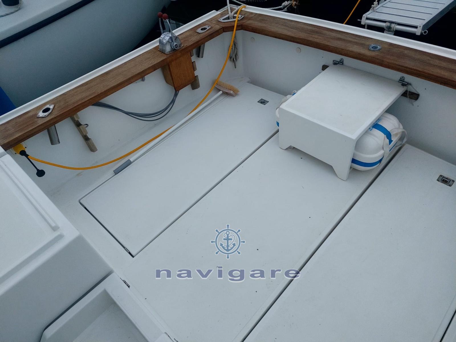 Un bateau dans la ligne d’arbre en parfait état prêt à naviguer, le bateau à faible consommation de carburant, une vitesse criciera de 21 nœuds consomme un total de 50 litres par heure. Il ne roule qu’à la volée protégé par un hard-top rigide, pour avoir obtenu plus d’espace à l’intérieur de la cabine, ajouté un accélérateur arrière pour faciliter les manœuvres de pêche, des auvents et un ombrage complet pour le cockpit avec des tendeurs en carbone