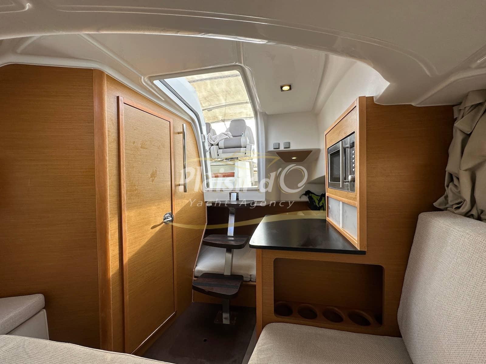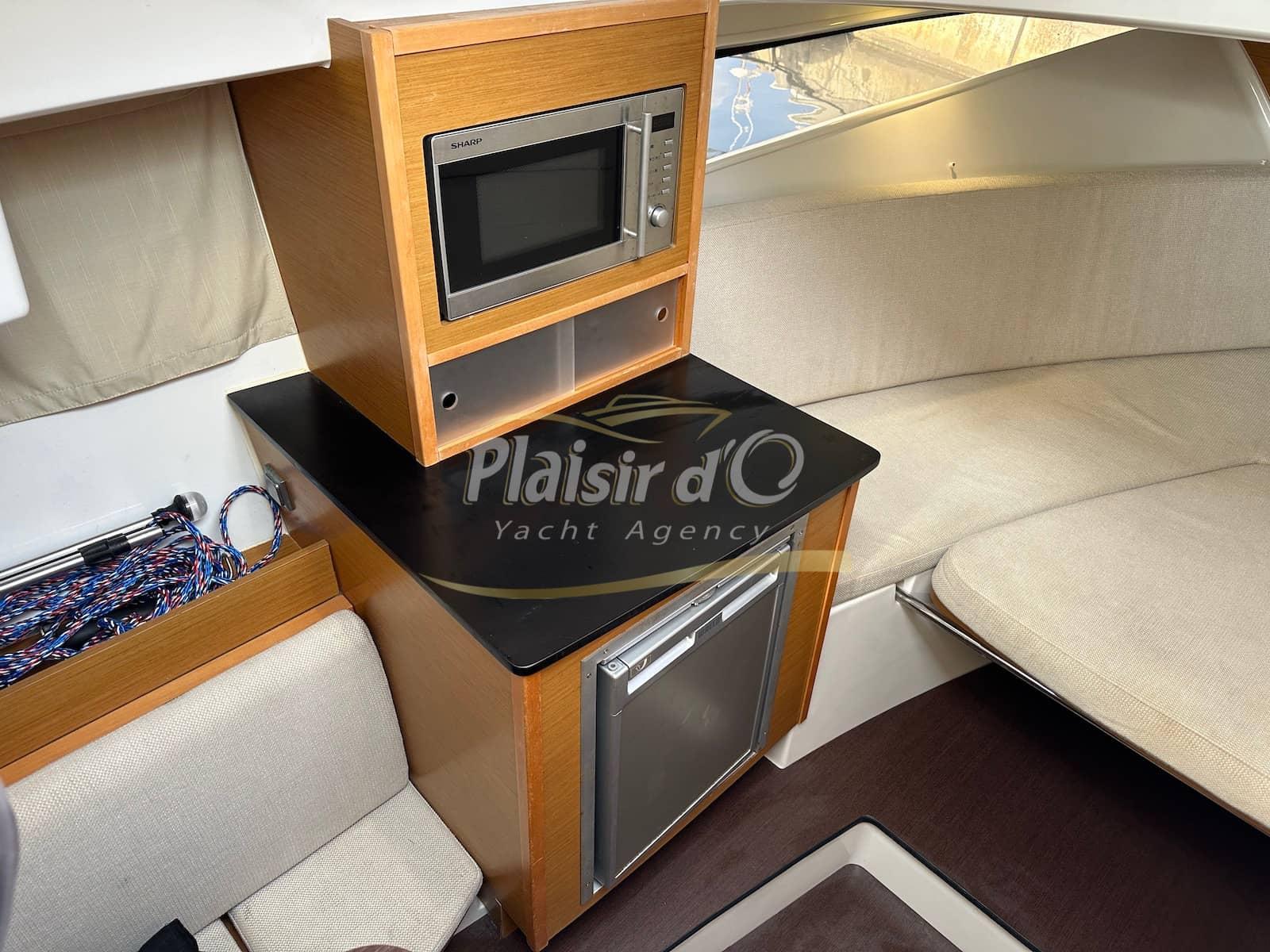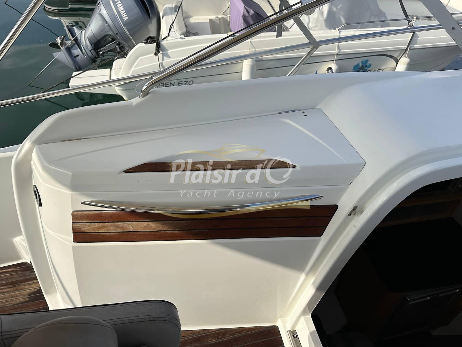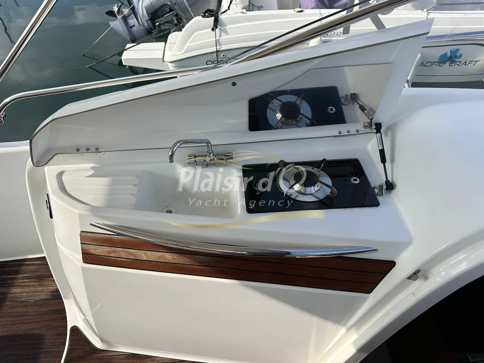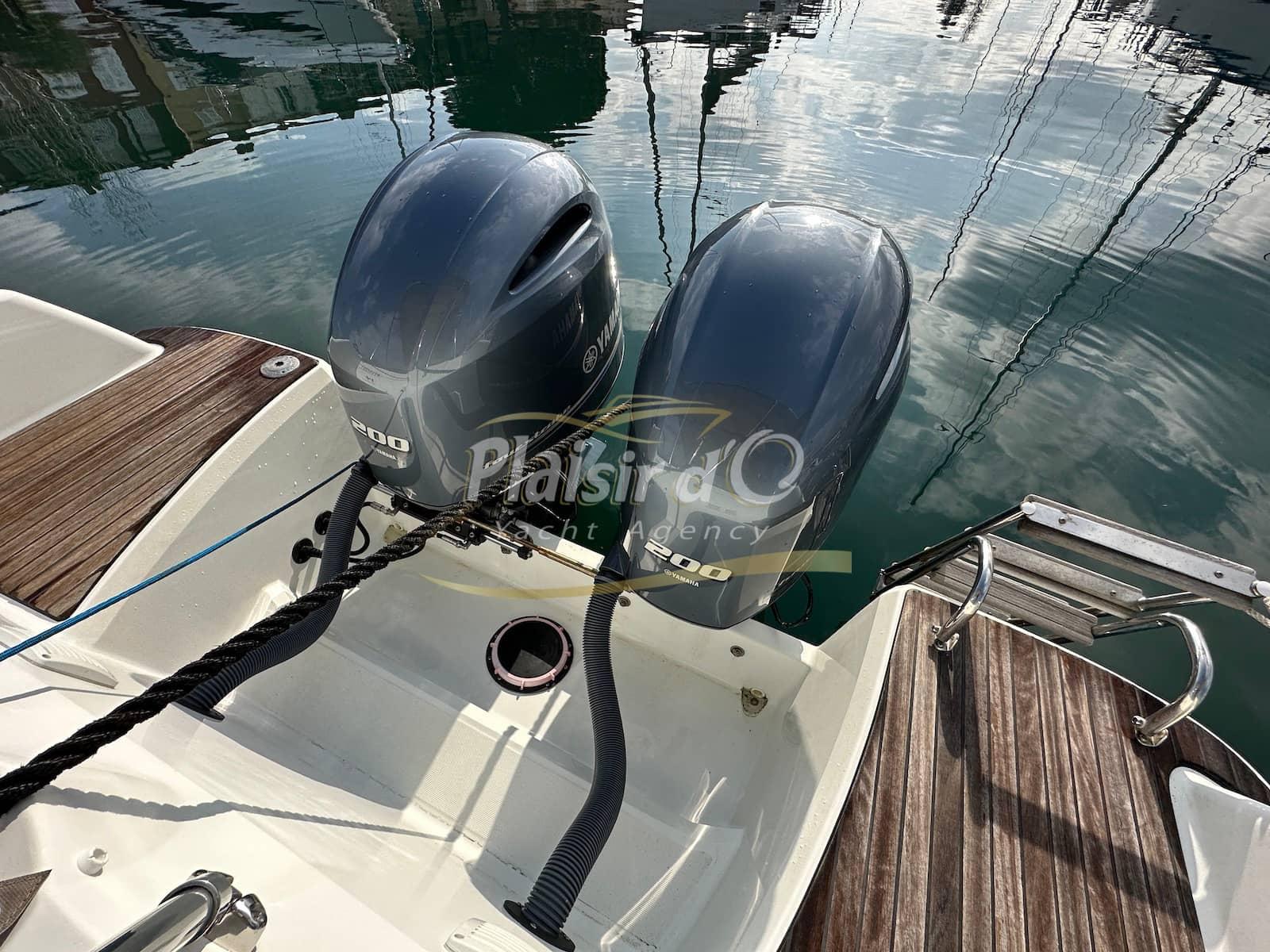 Nombreuses options : cockpit teck, GPS/sondeur, commandes Yamaha électriques, Tables de cockpit teck, Guindeau électrique, Bimini Inox, WC marin, chauffe eau, chargeur batterie, micro ondes, réchaud gaz, réfrigérateur …