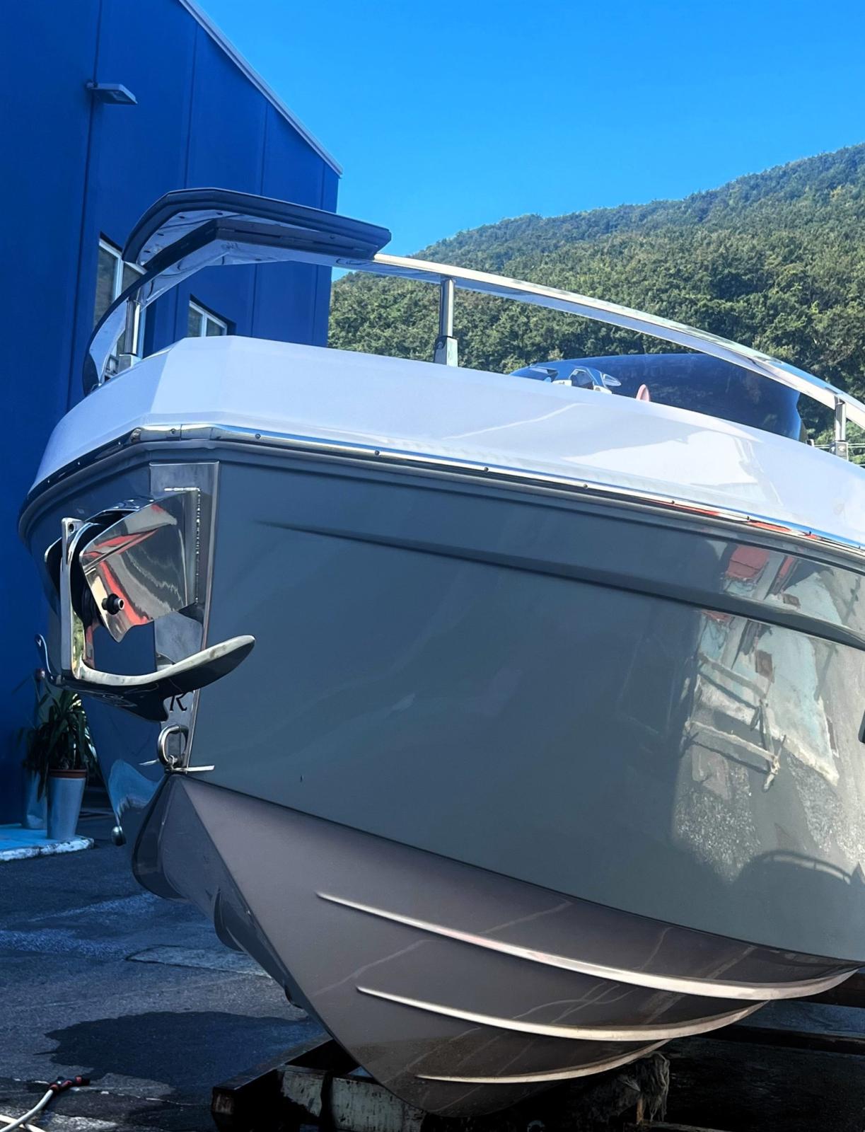 Eau sous pression, Passavant en teck, Couleur spéciale, Douche de cockpit, Plateforme arrière, Pompe de cale manuelle, Cockpit en teck (SINTETICO), Prise de quai, Guindeau électrique, Echelle de bain.