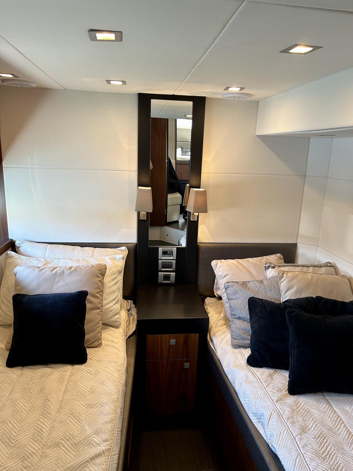 Le yacht dispose de trois cabines luxueuses, pouvant accueillir confortablement jusqu'à six invités.